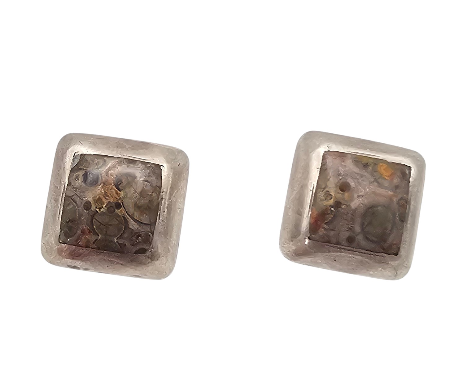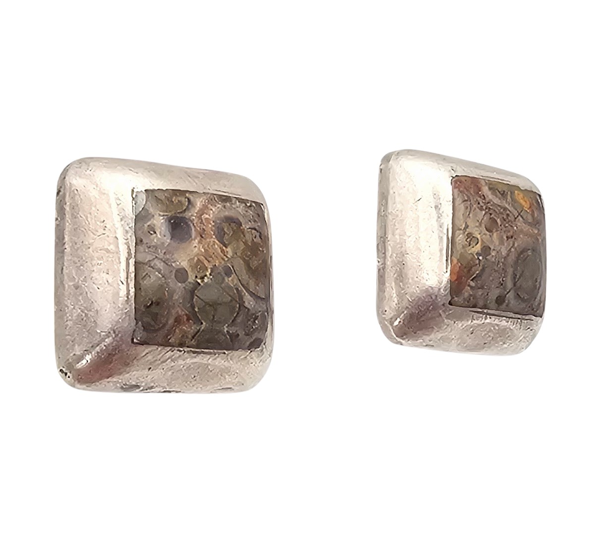 Mexico Taxco T8-152 Jasper Sterling Silver Earrings 11.3 G