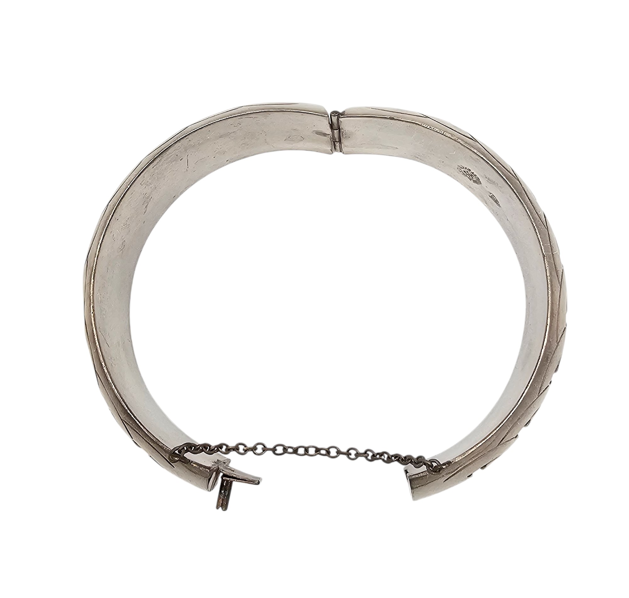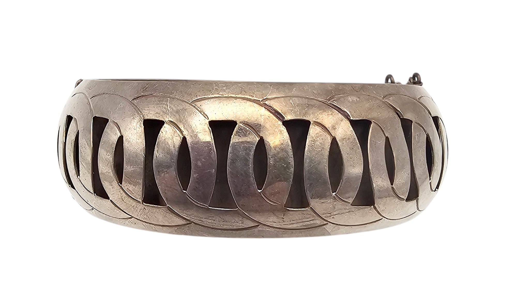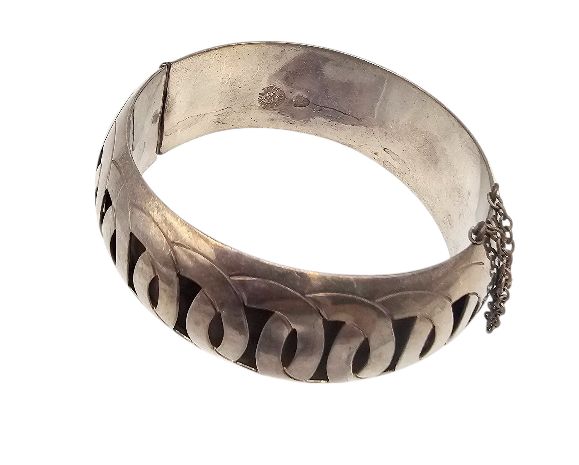 Mexico Sterling Silver Cut Out Hinge Bangle Bracelet 28.3 G