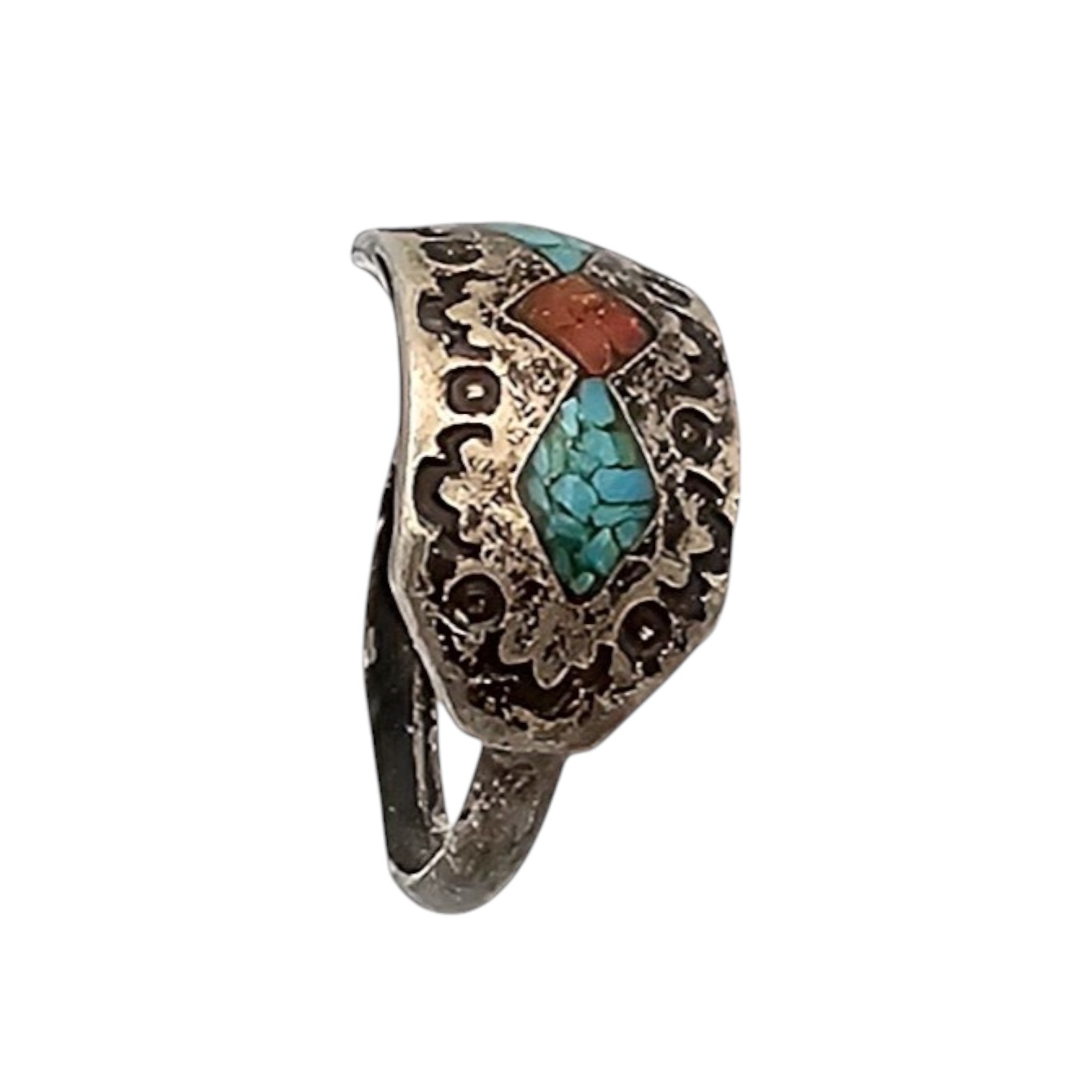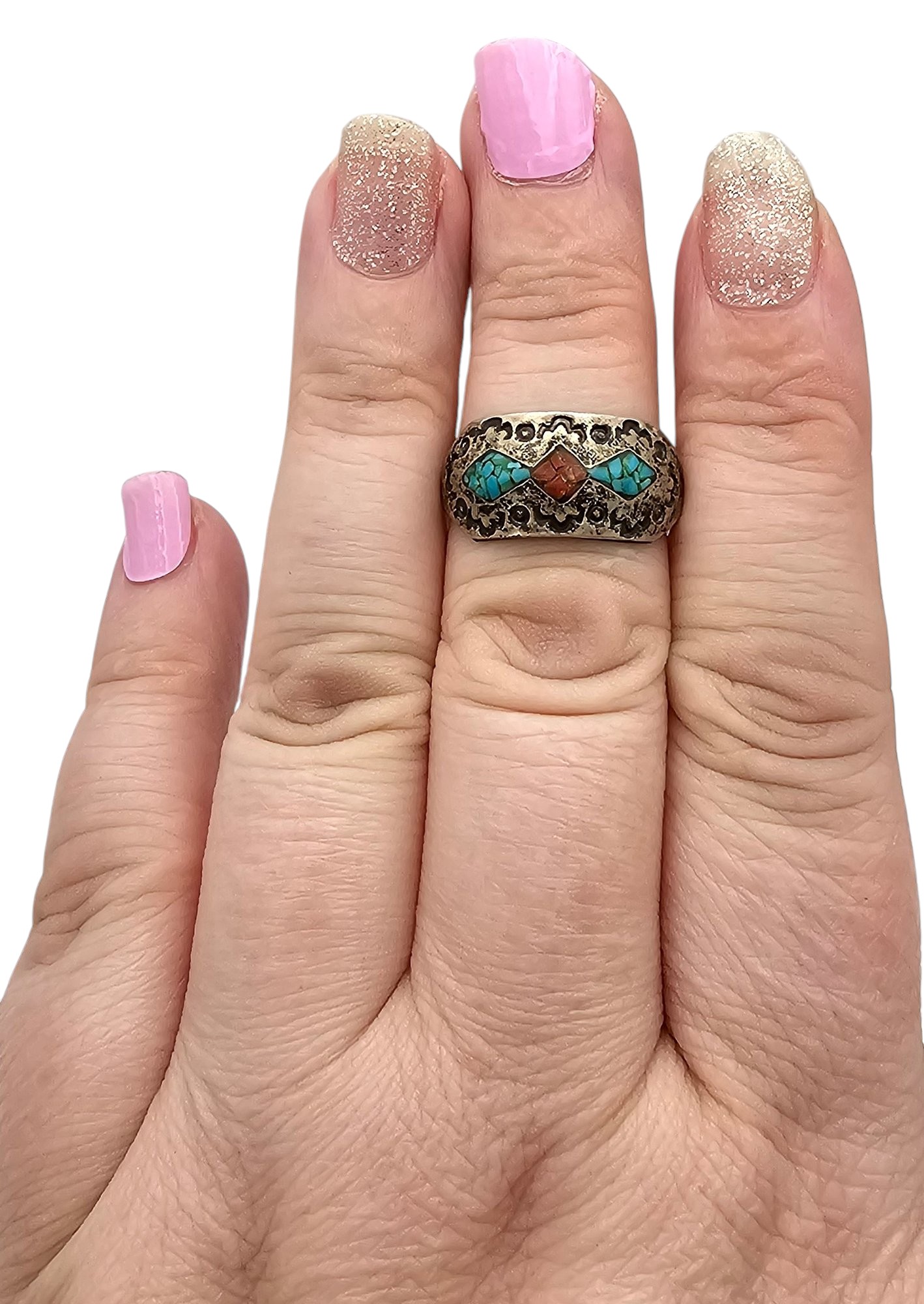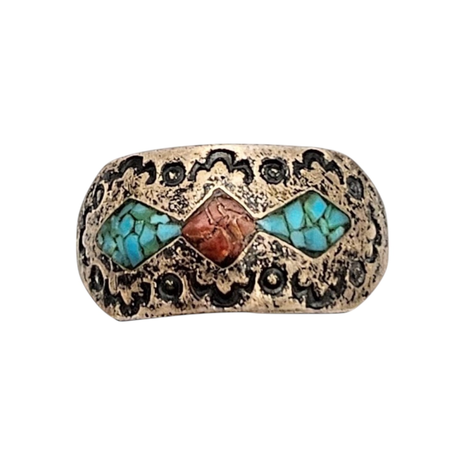 Navajo Crushed Coral Turquoise Sterling Silver Ring Size 7.5 3.6 G