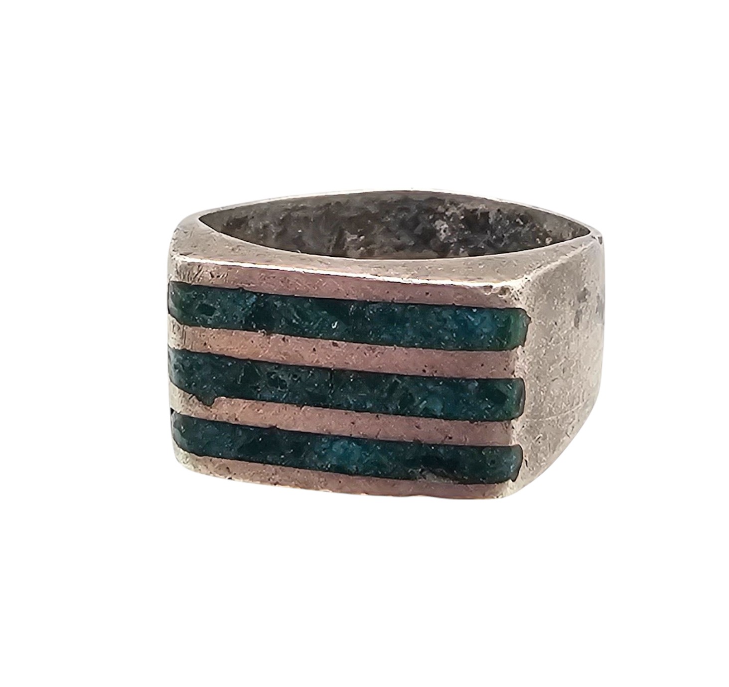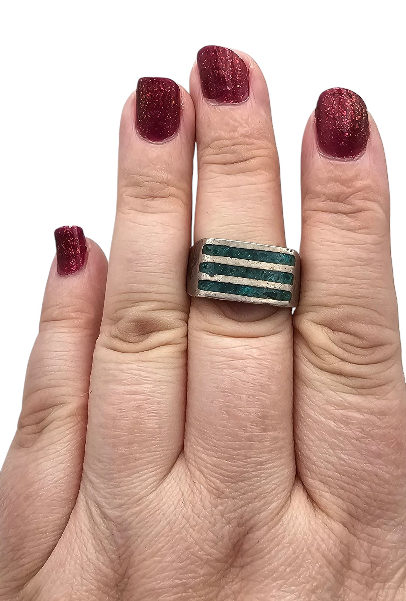Mexico Crushed Turquoise Sterling Silver Ring Size 9.5 8.4 G