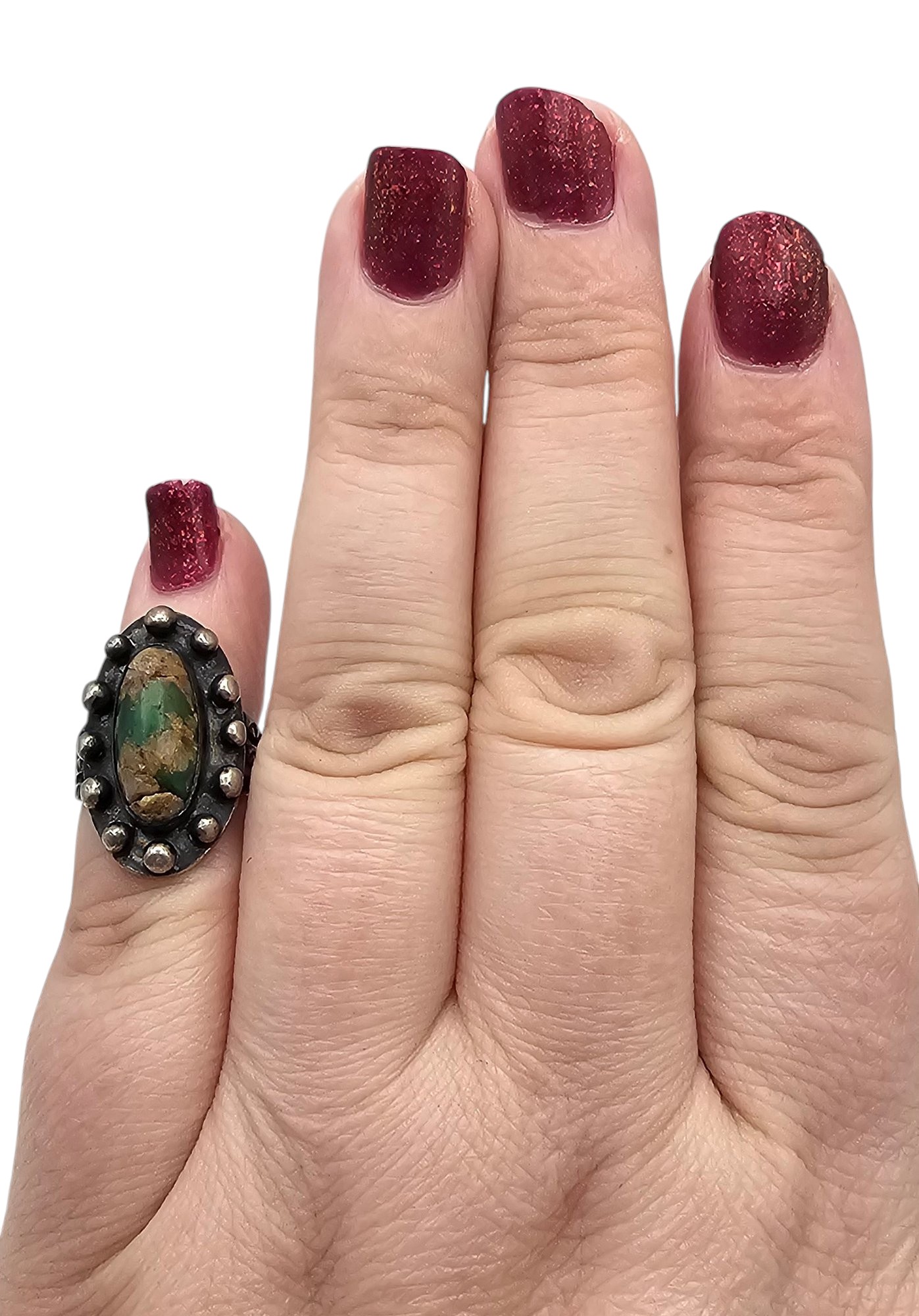 Turquoise Sterling Silver Open Band Ring Size 3.5 6.6 G
