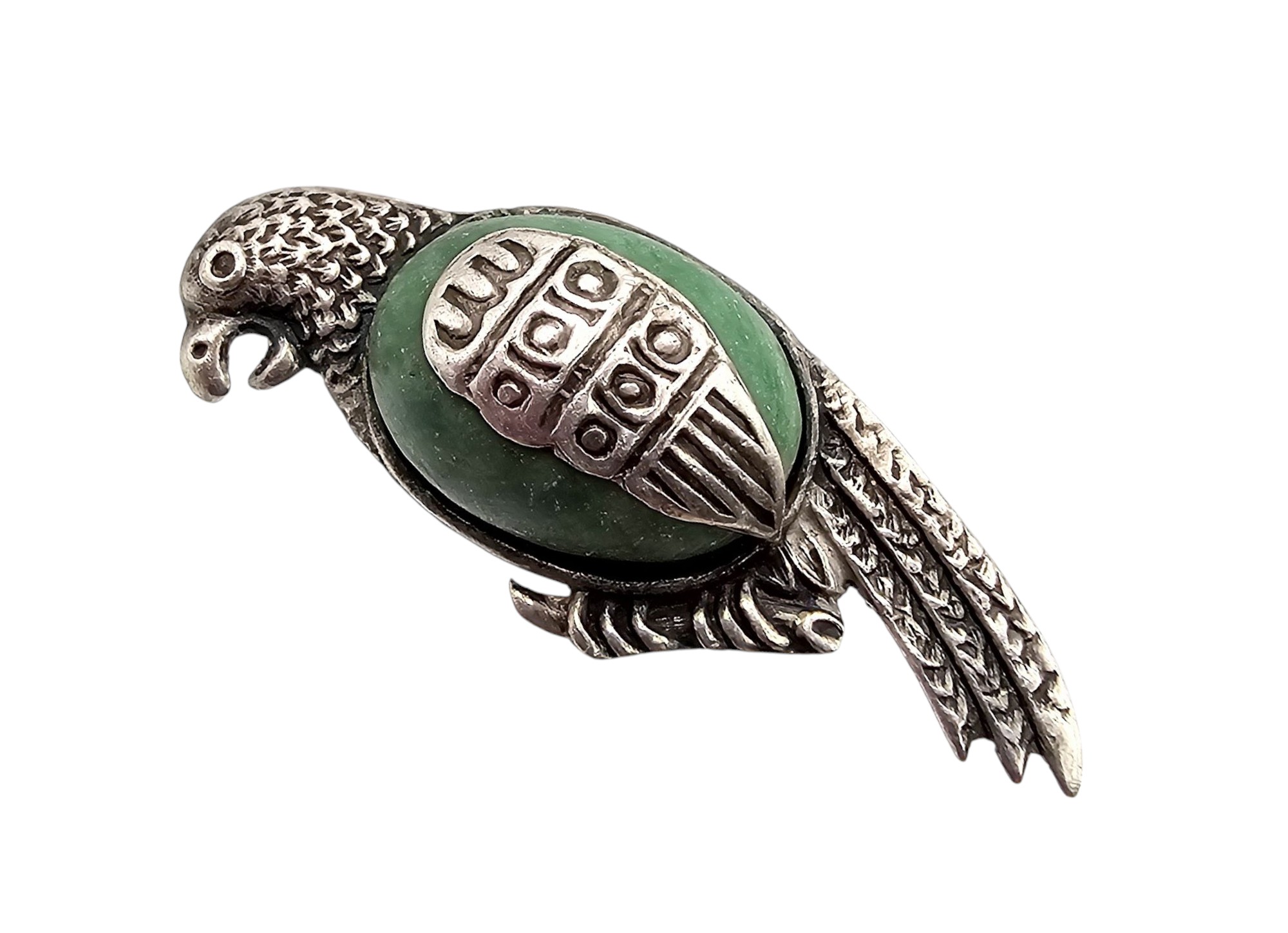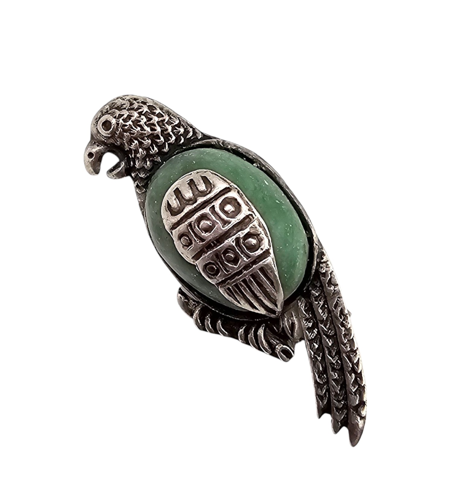 Mexico Turquoise Sterling Silver Parrot Bird Brooch 5.9 G