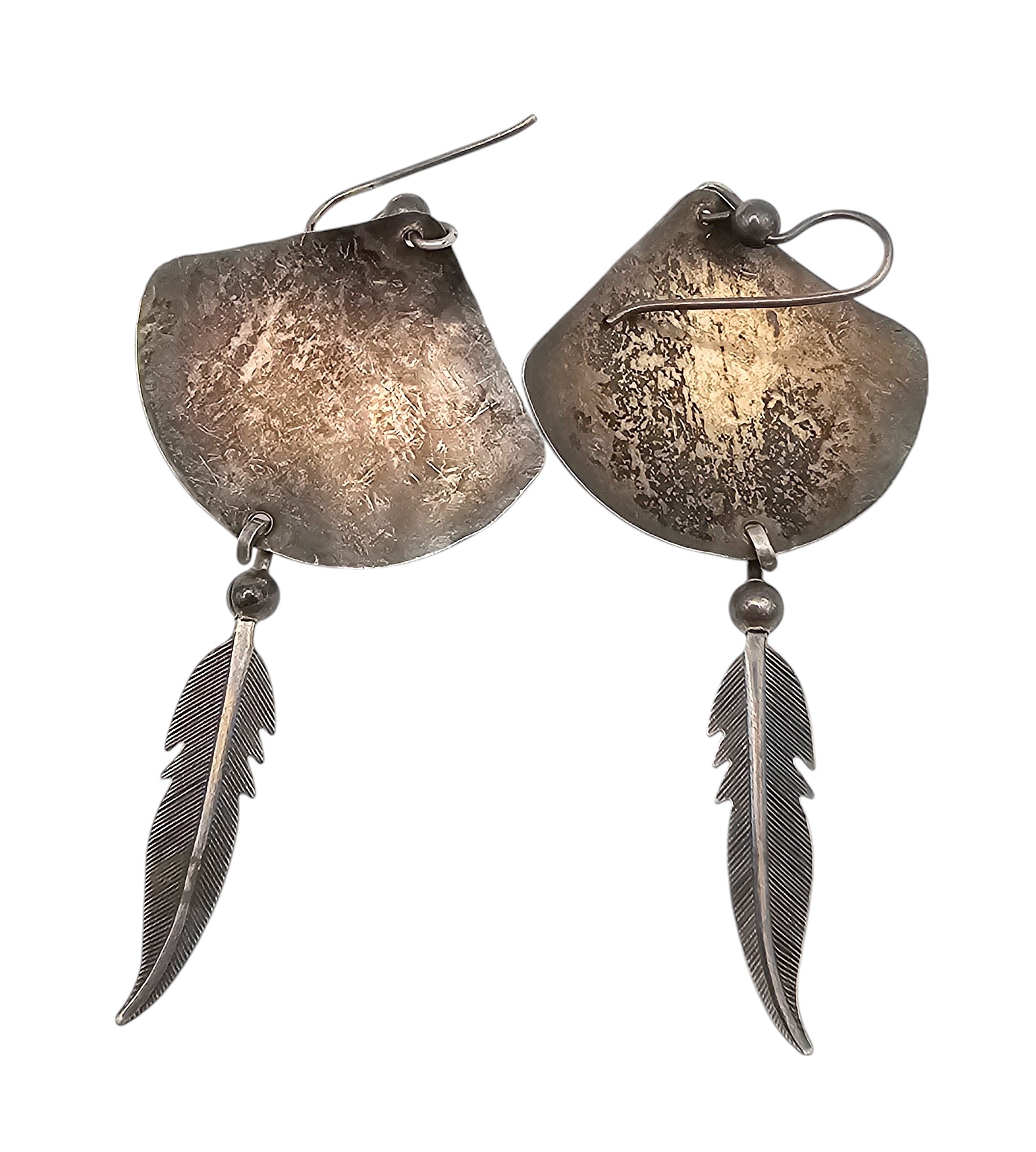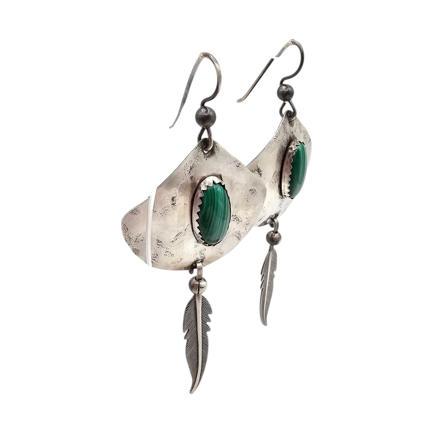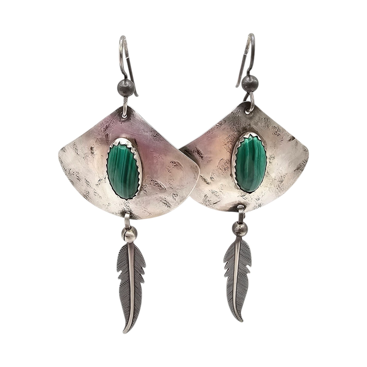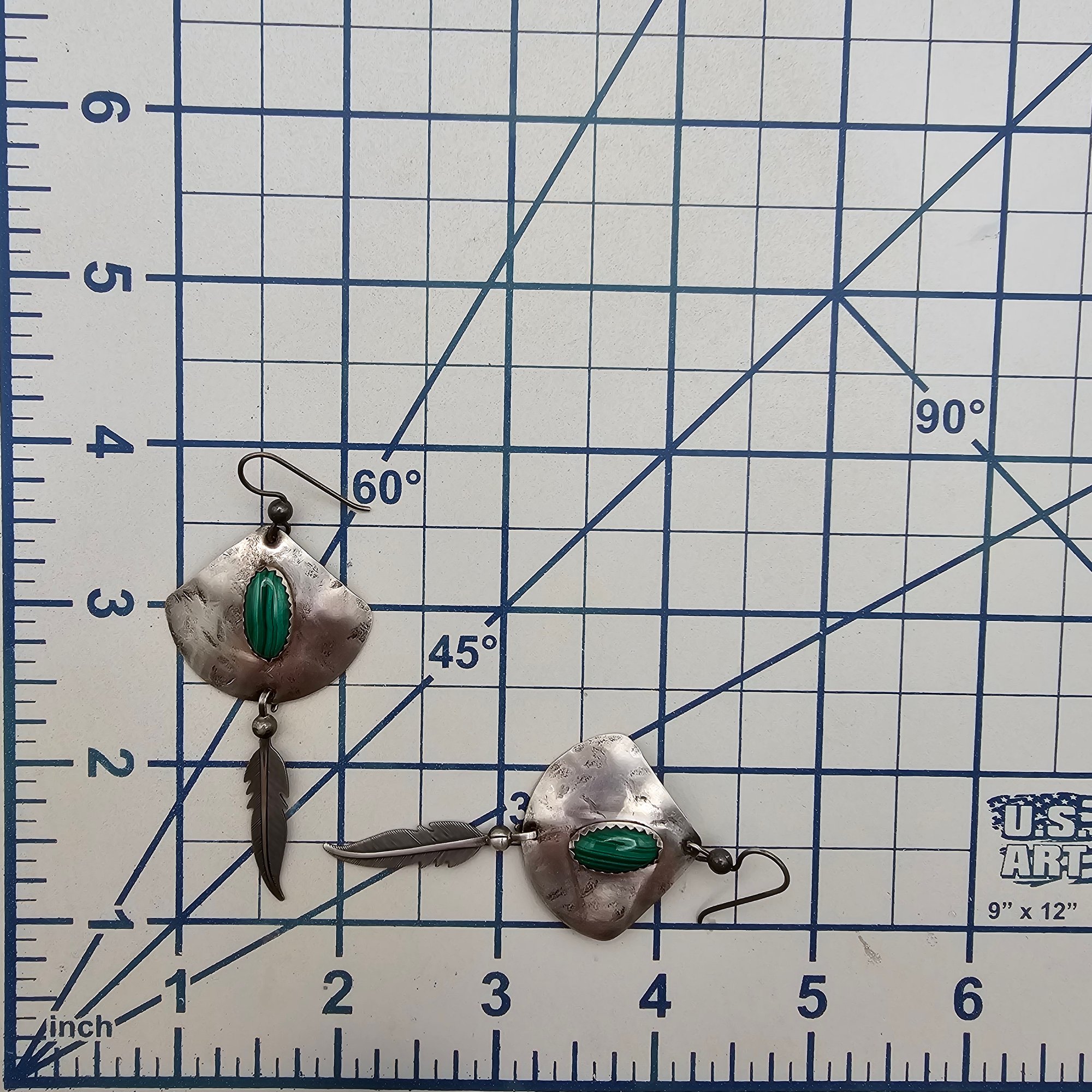 Native Malachite Sterling Silver Feather Drop Dangle Earrings 10 G