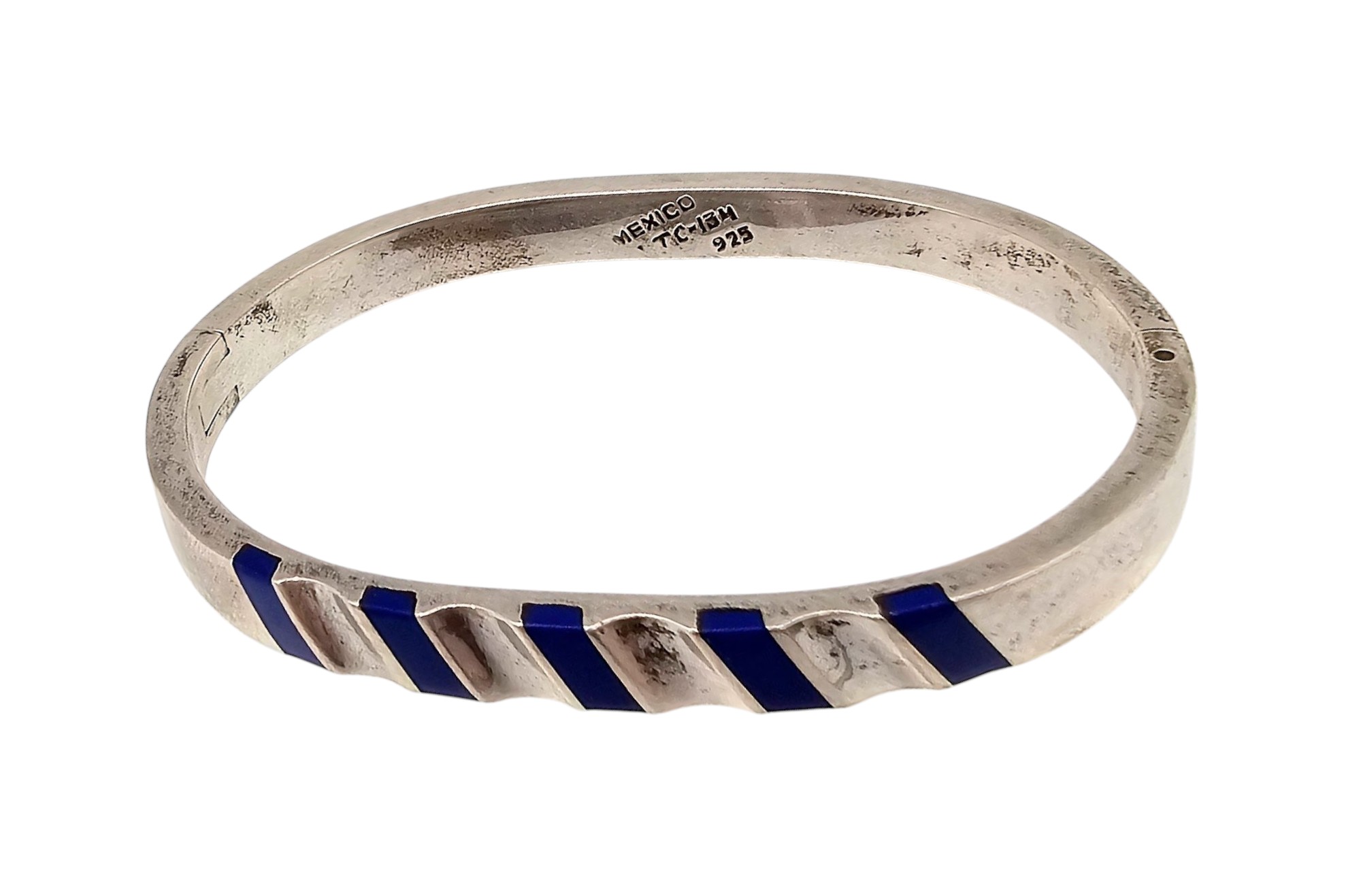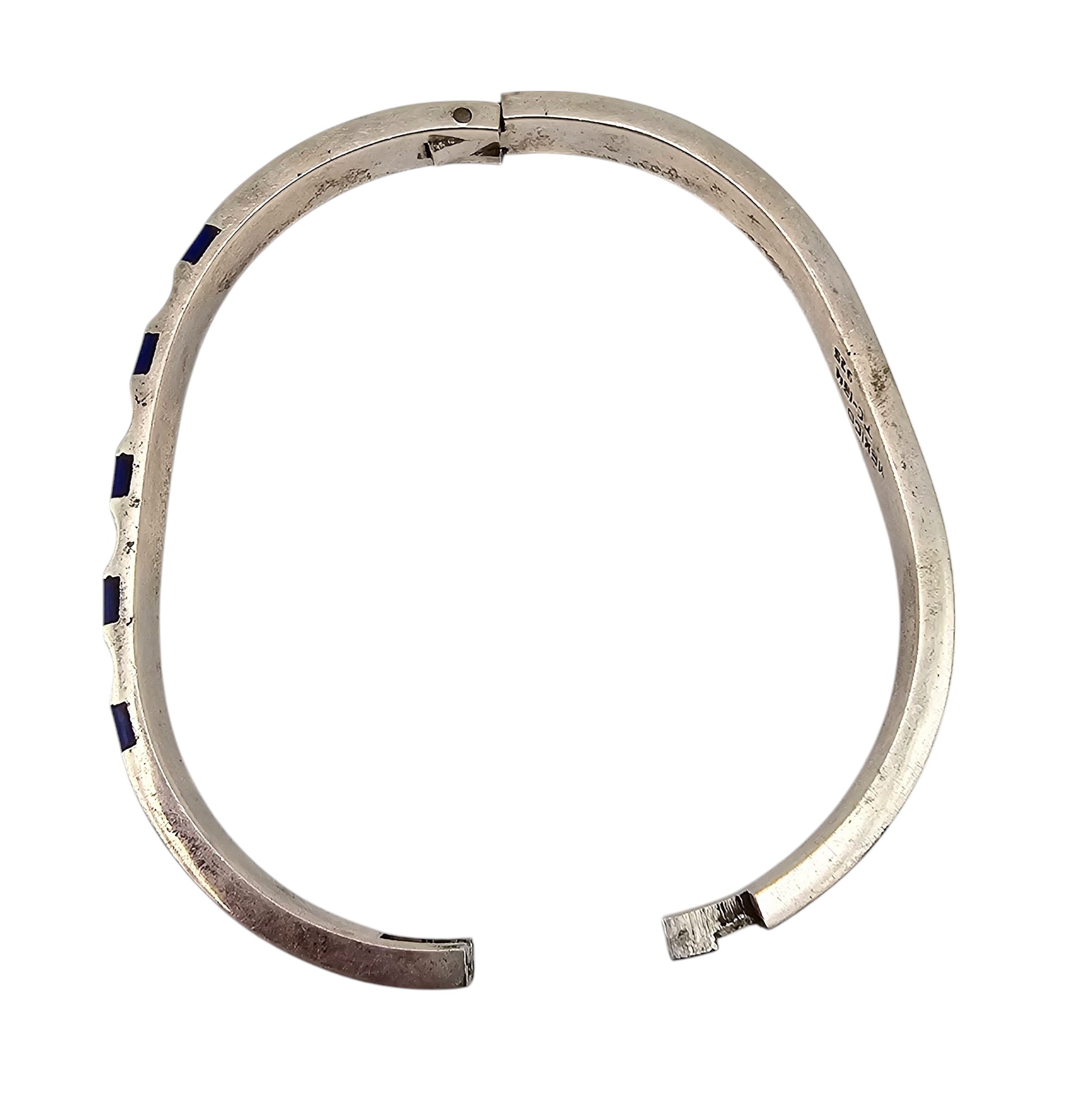 Mexico Taxco TC-134 Lapis Sterling Silver Hinge Bangle Bracelet 37.3 G
