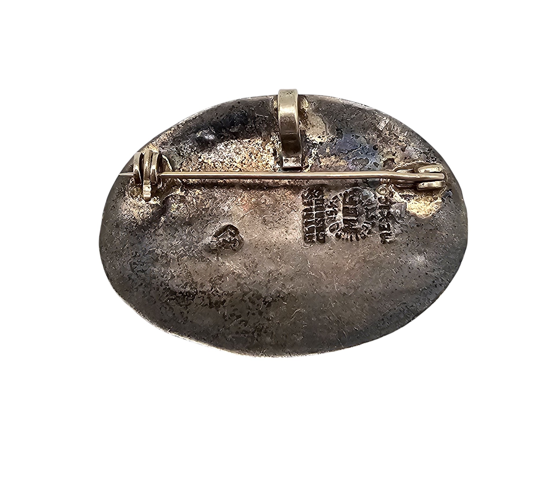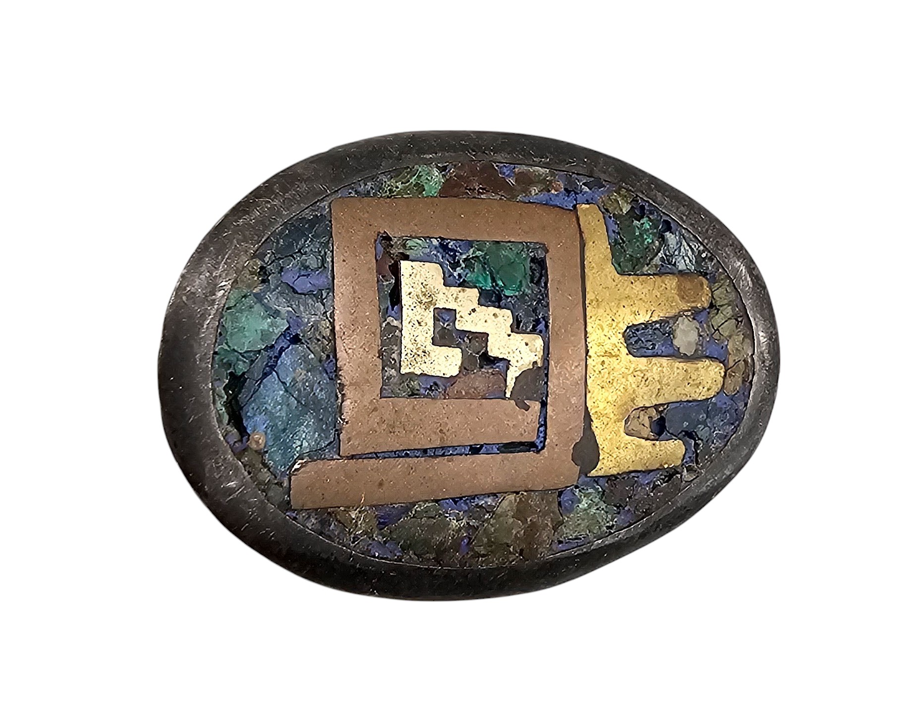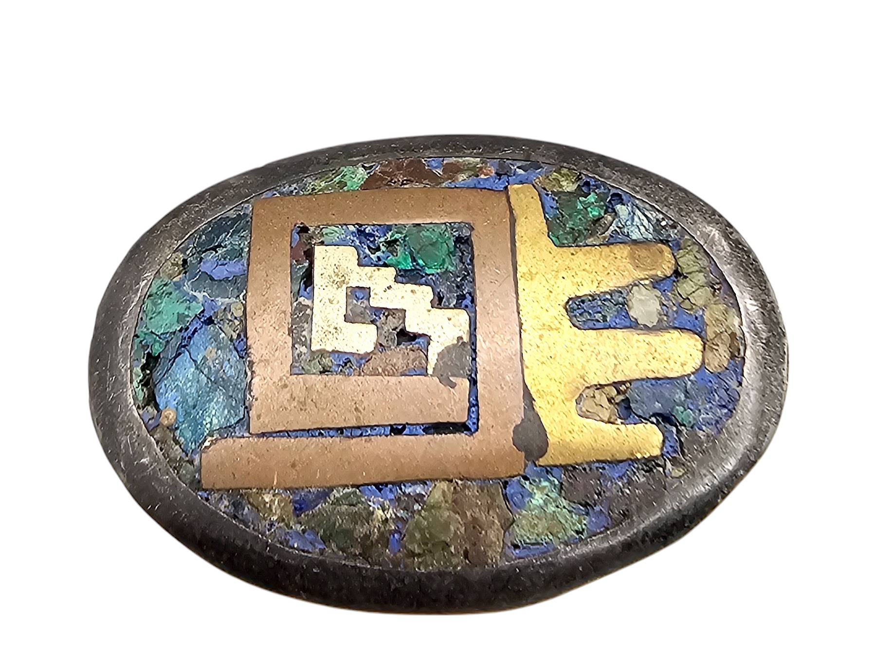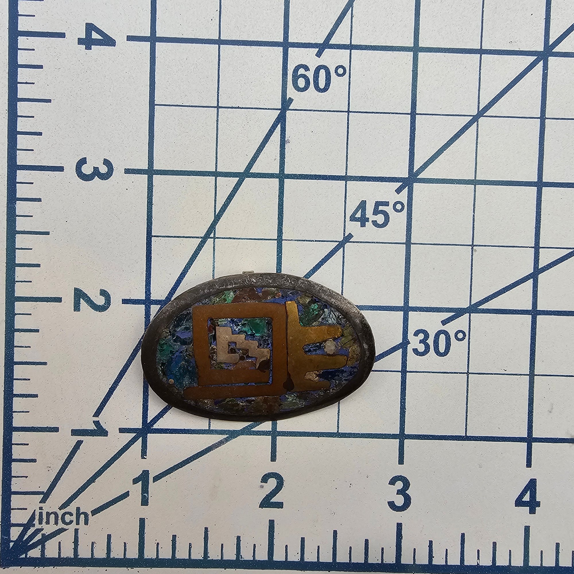 Mexico Crushed Turquoise Sterling Silver Brass Copper Brooch Pendant 7.5 G