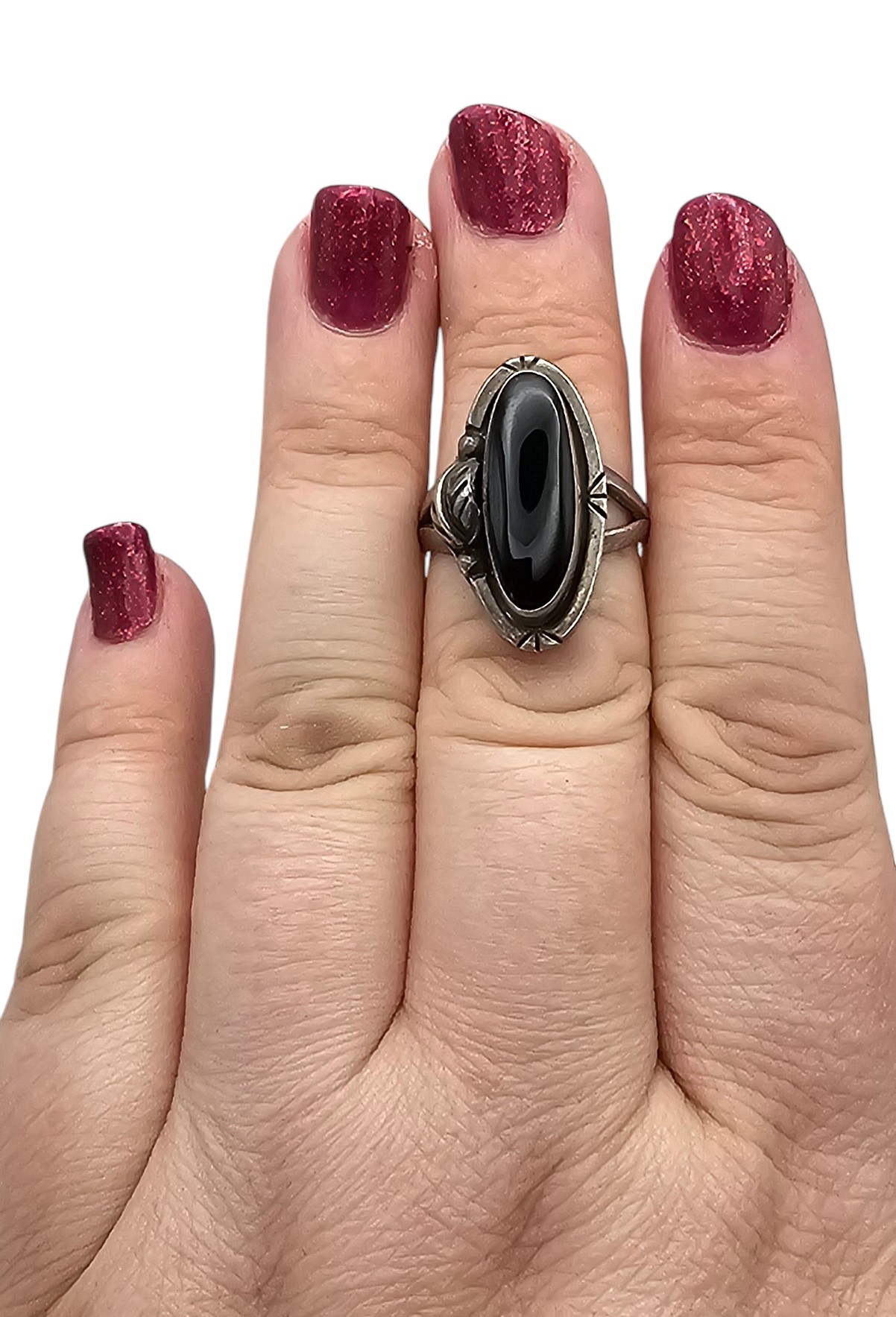 Signed Mexico Onyx Sterling Silver Ring Size 7 6.4 G