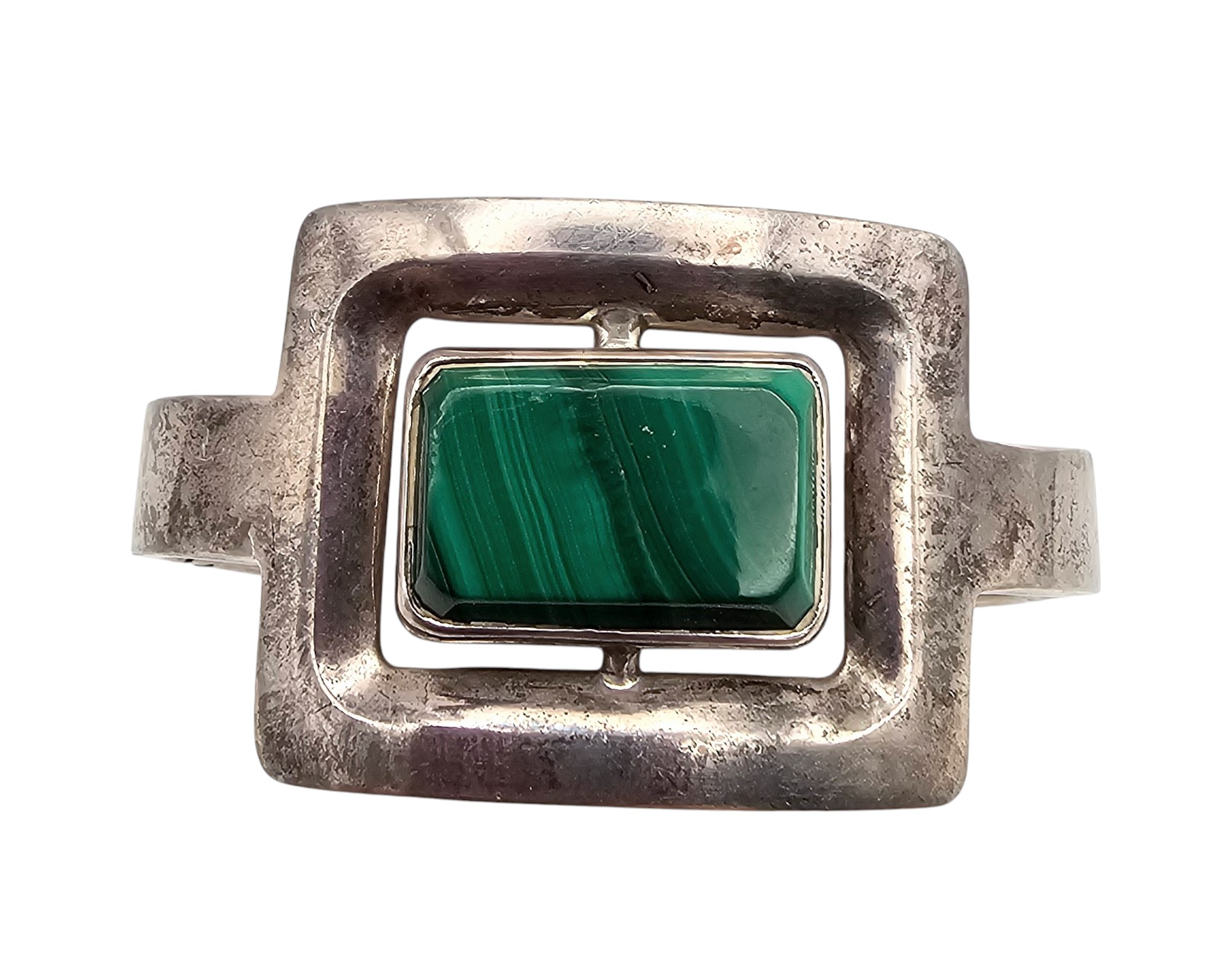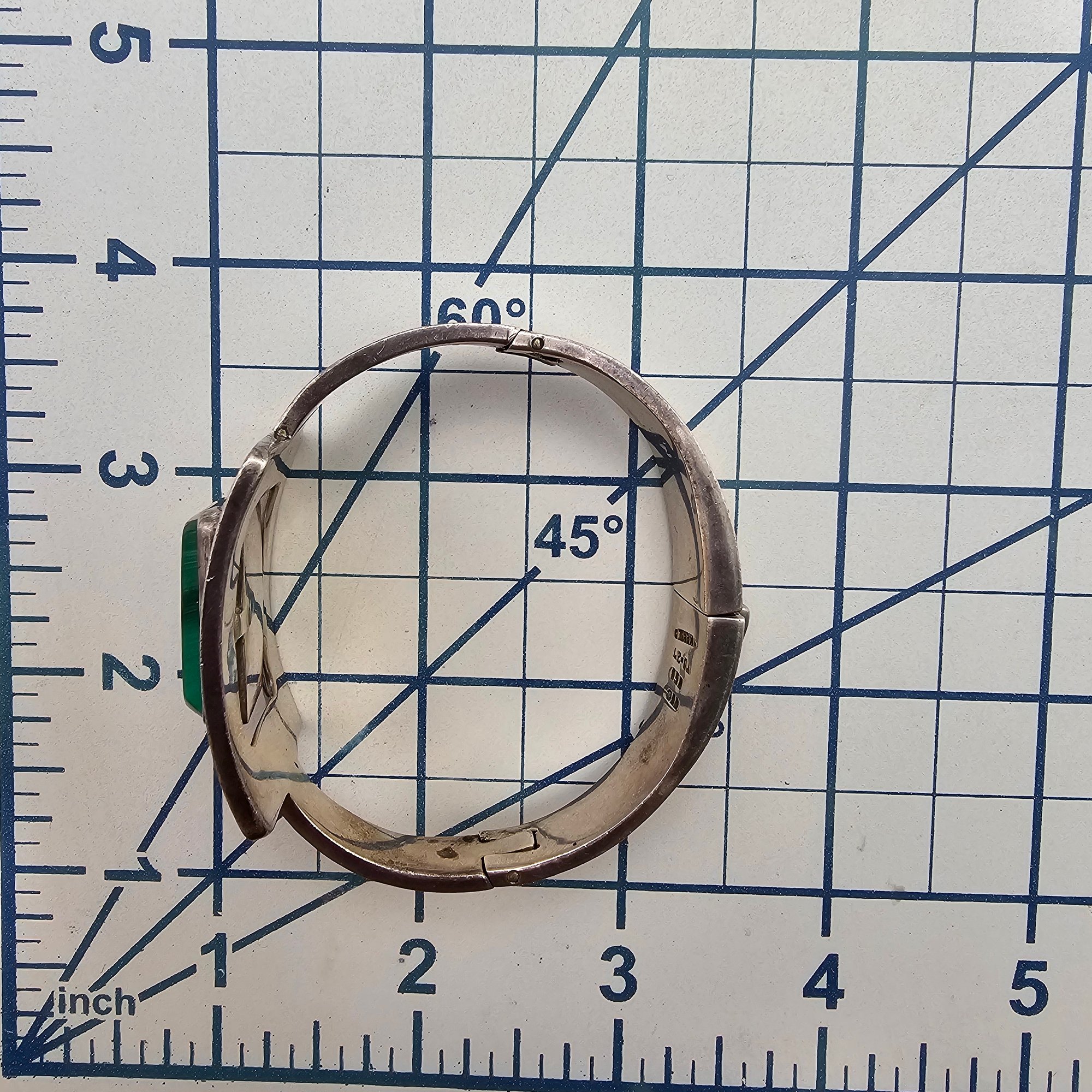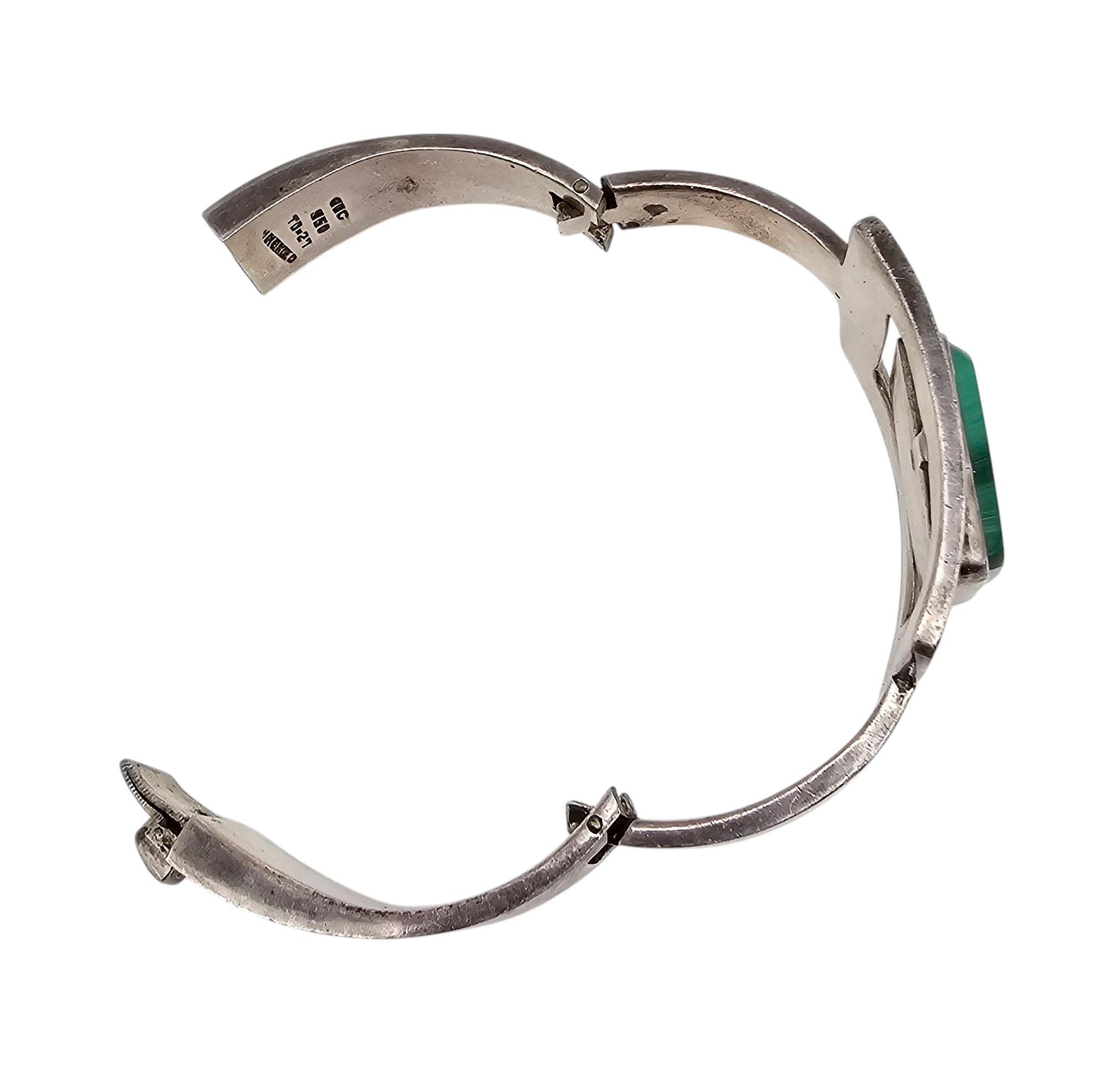 Mexico Taxco TD-27 Malachite Sterling Silver Hinge Bangle Bracelet 64.3 G