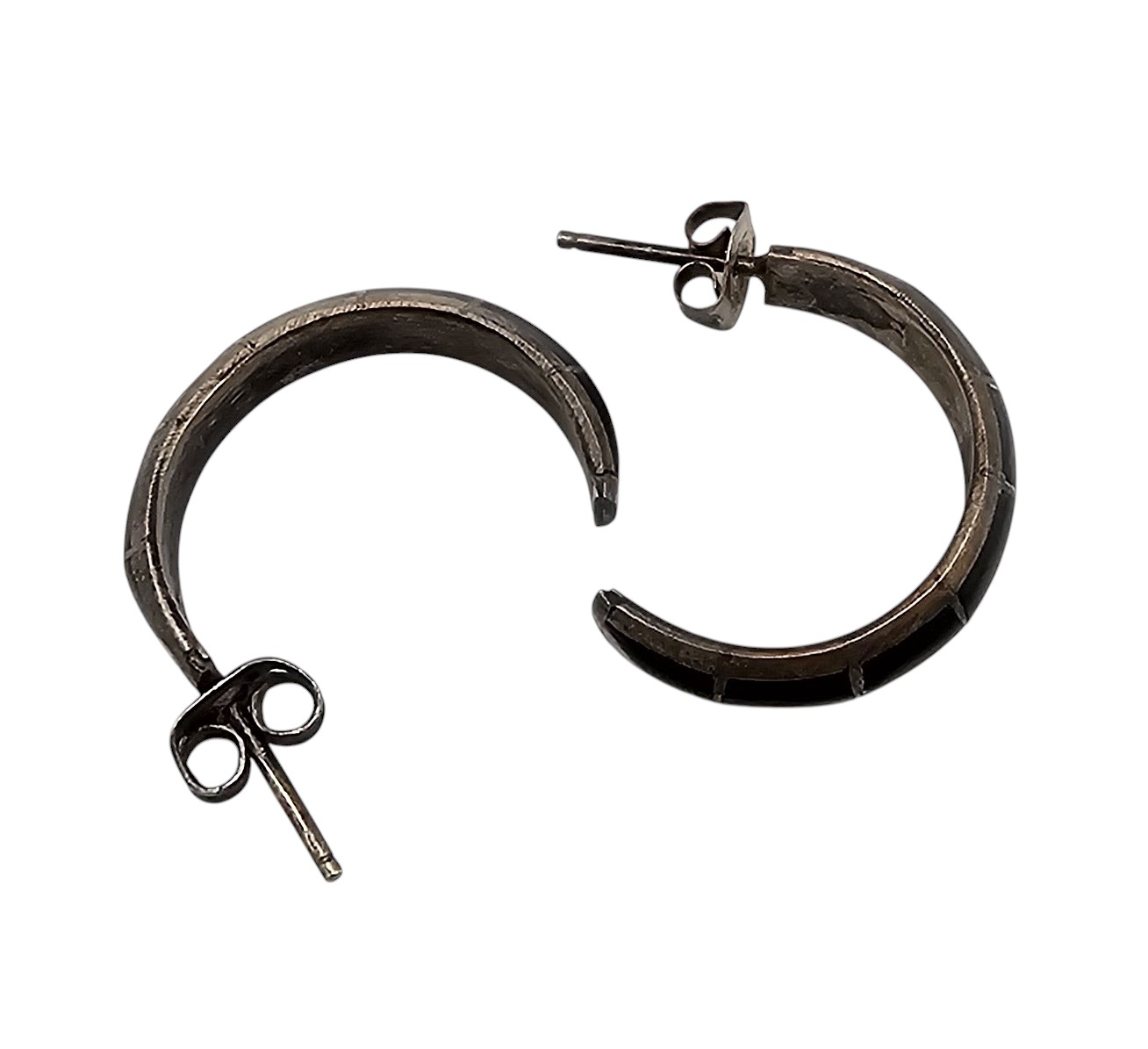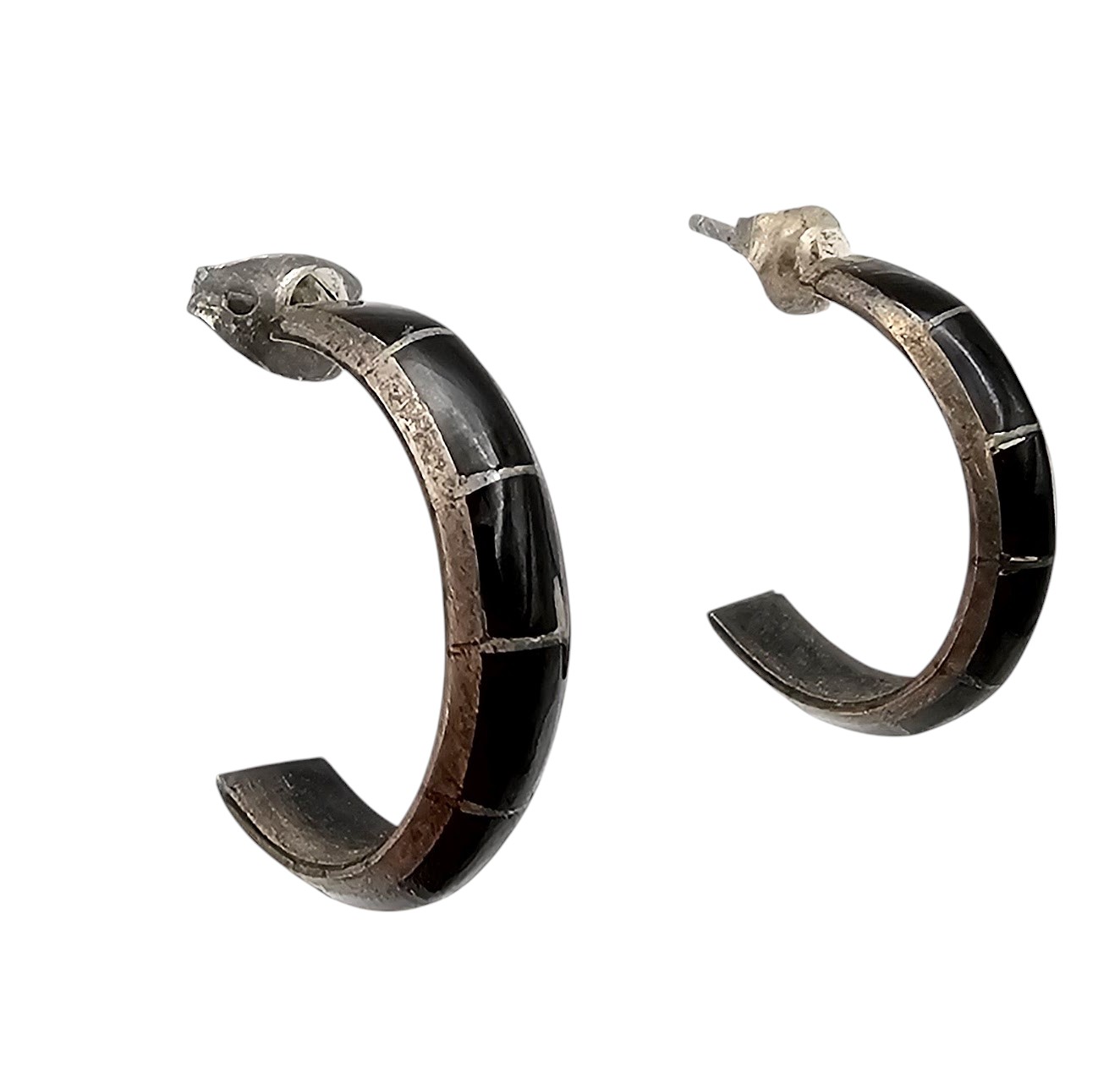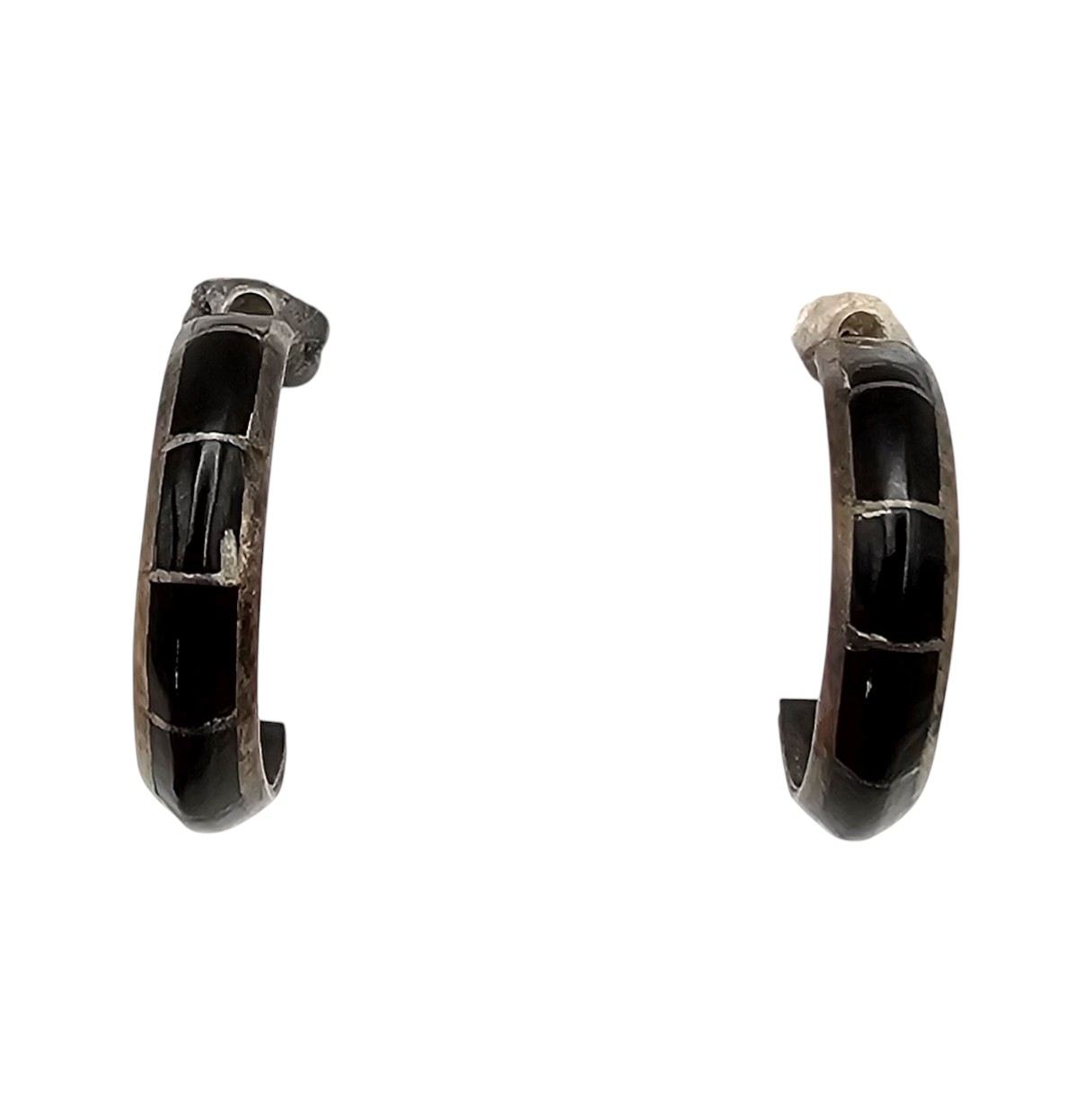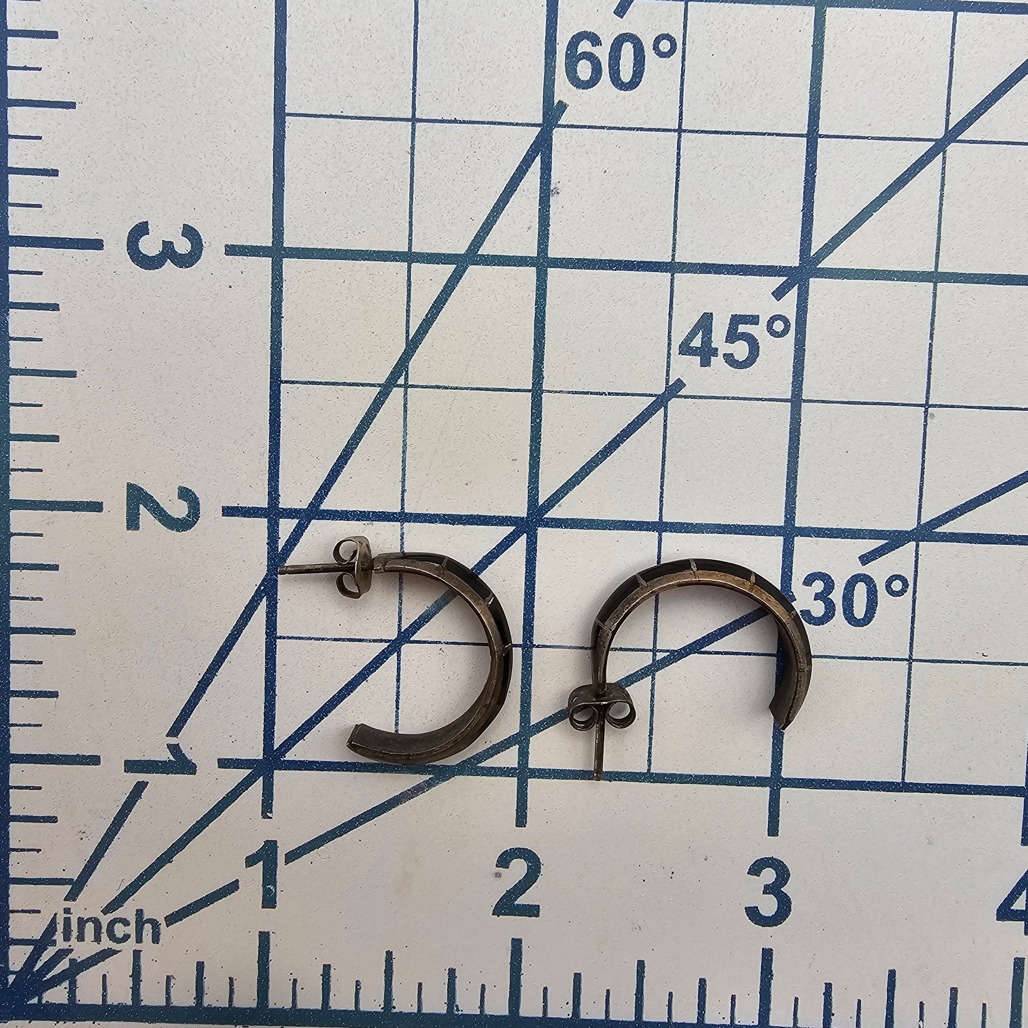 Mexico Onyx Sterling Silver Hoop Earrings 3.1 G