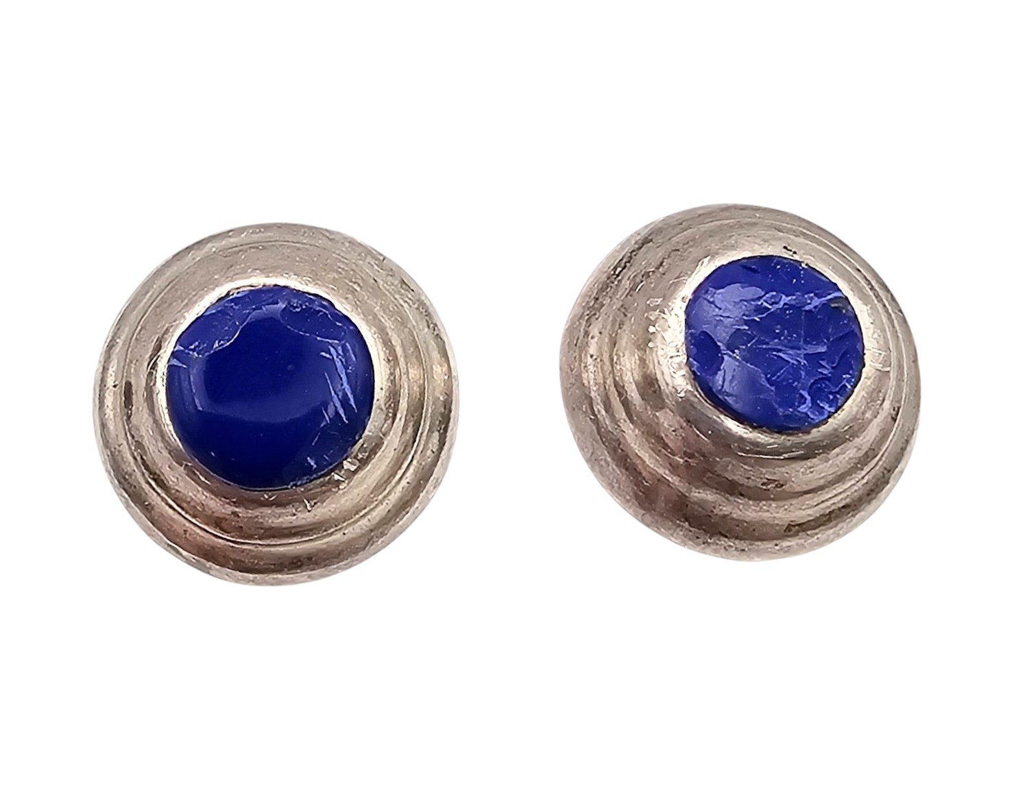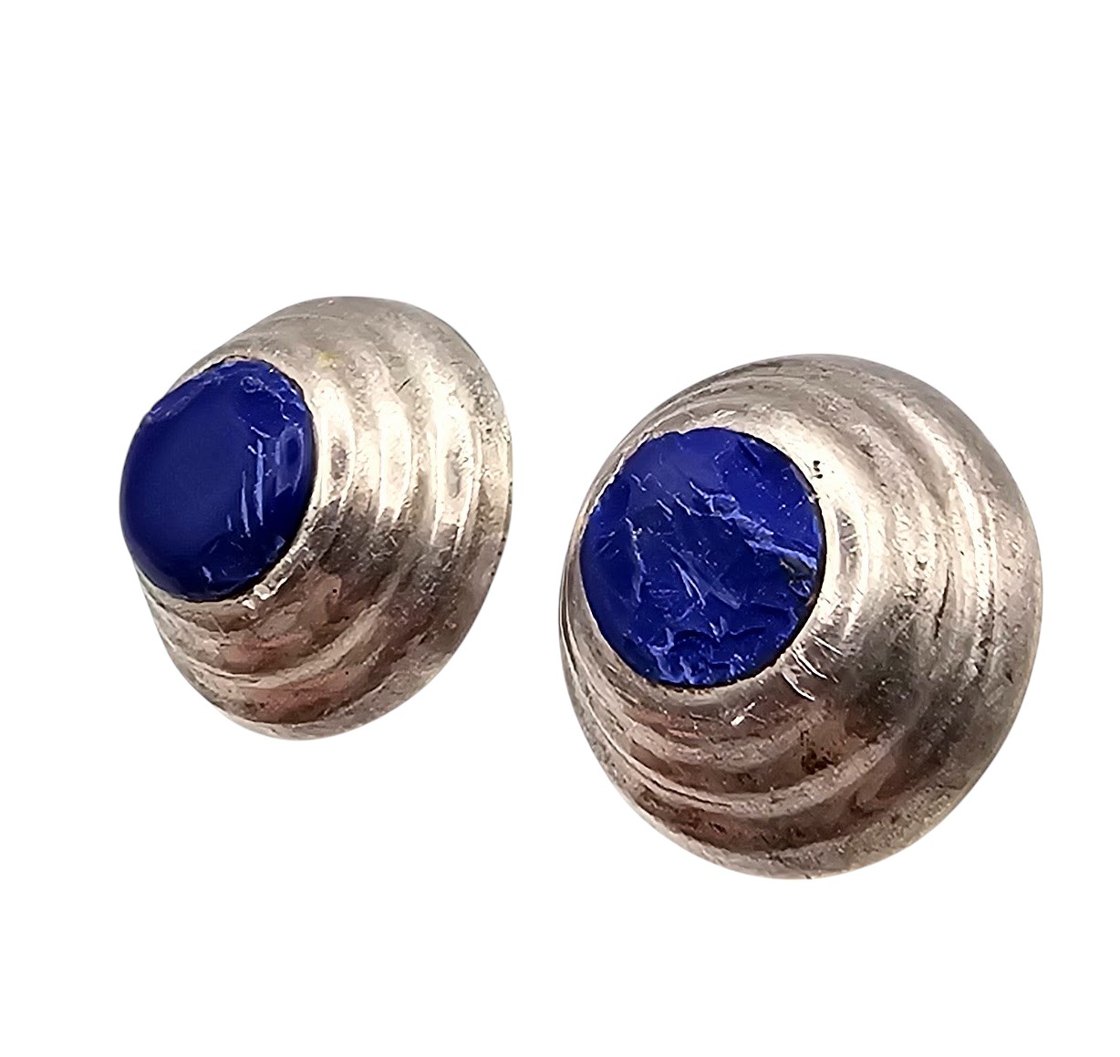 CCC Mexico Lapis Sterling Silver Earrings 10 G chipped stone as is