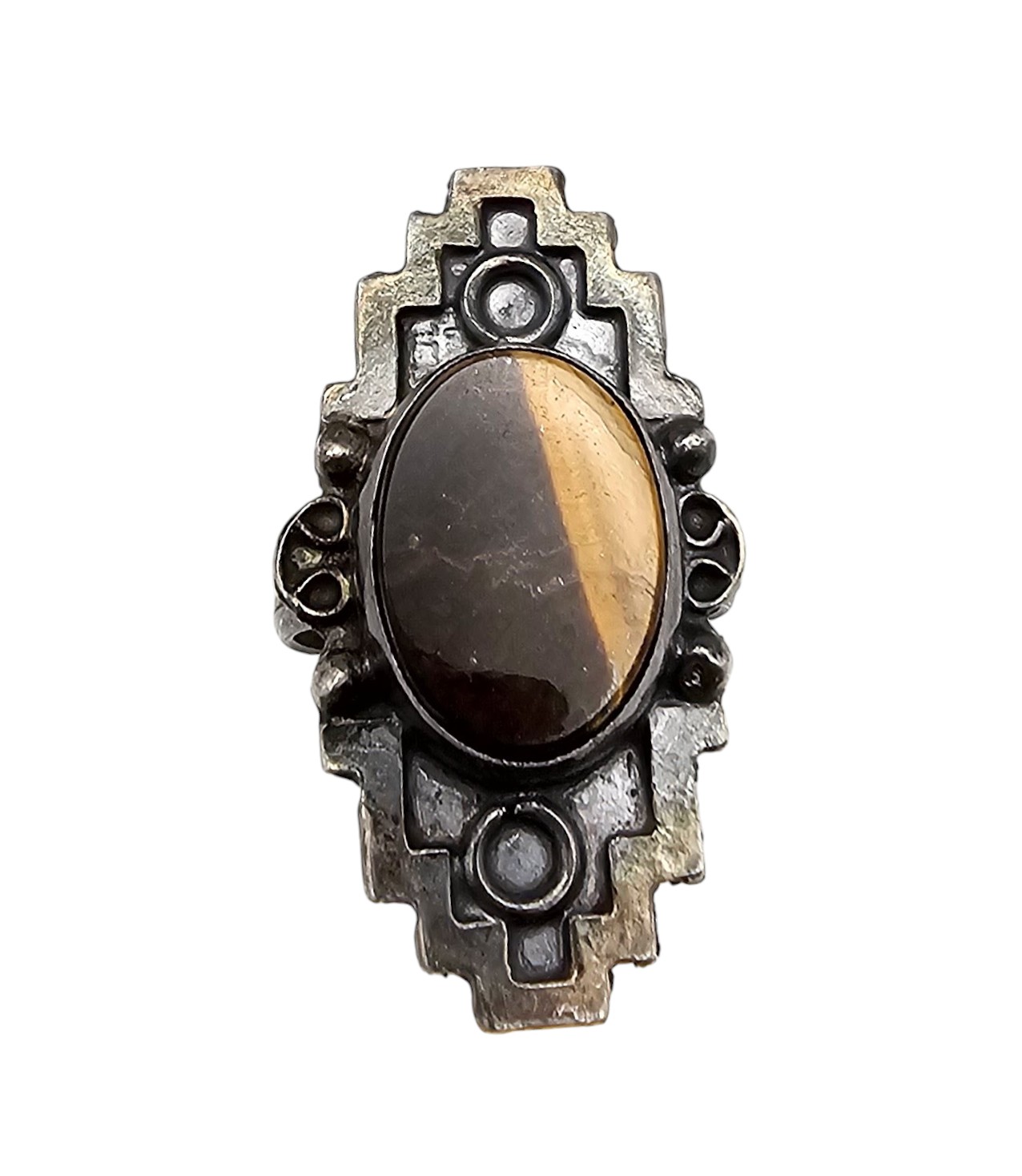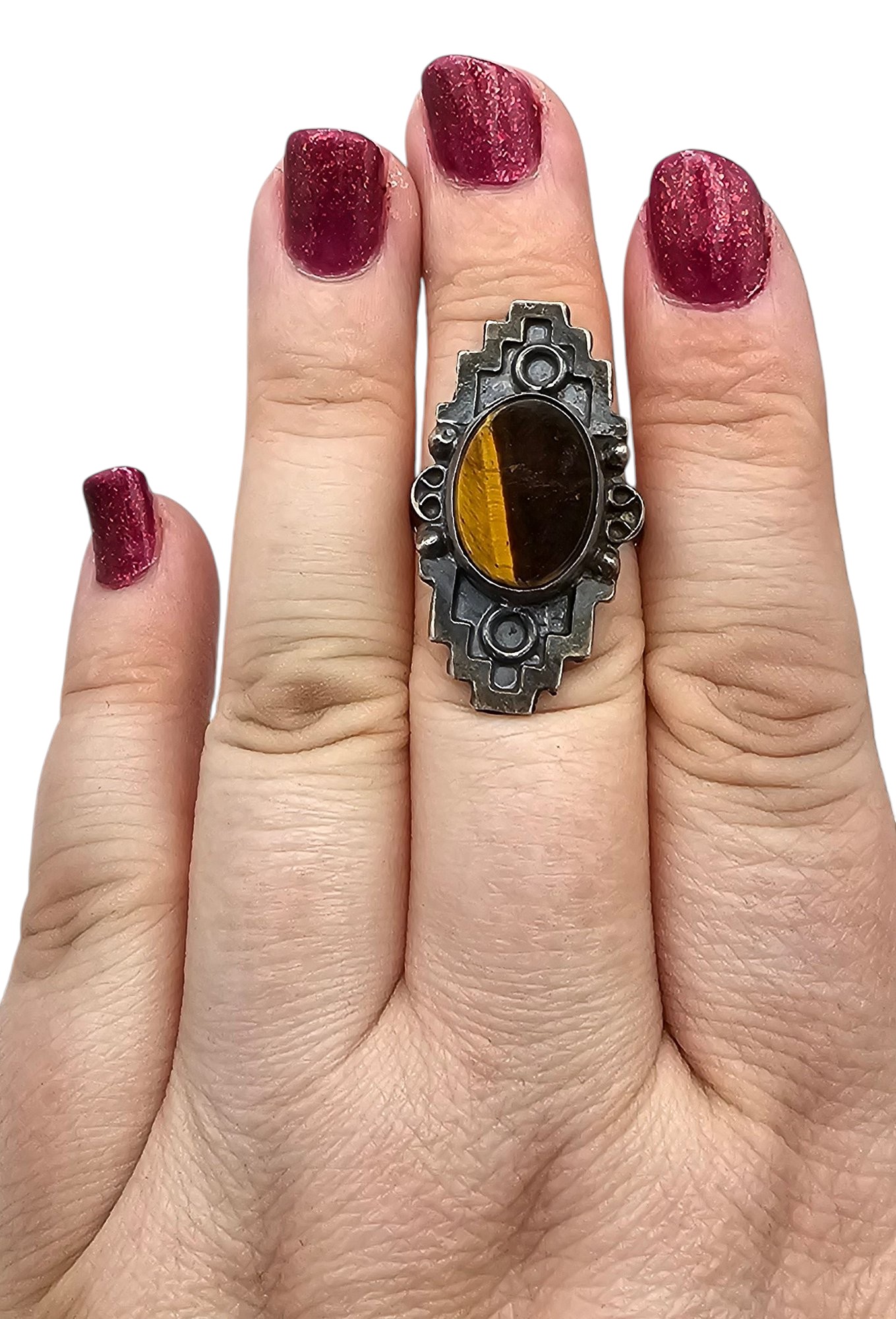 Mexico Tiger’s Eye Sterling Silver Ring Size 8.25 5.4 G