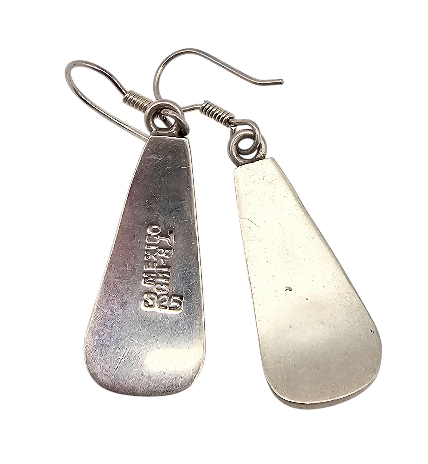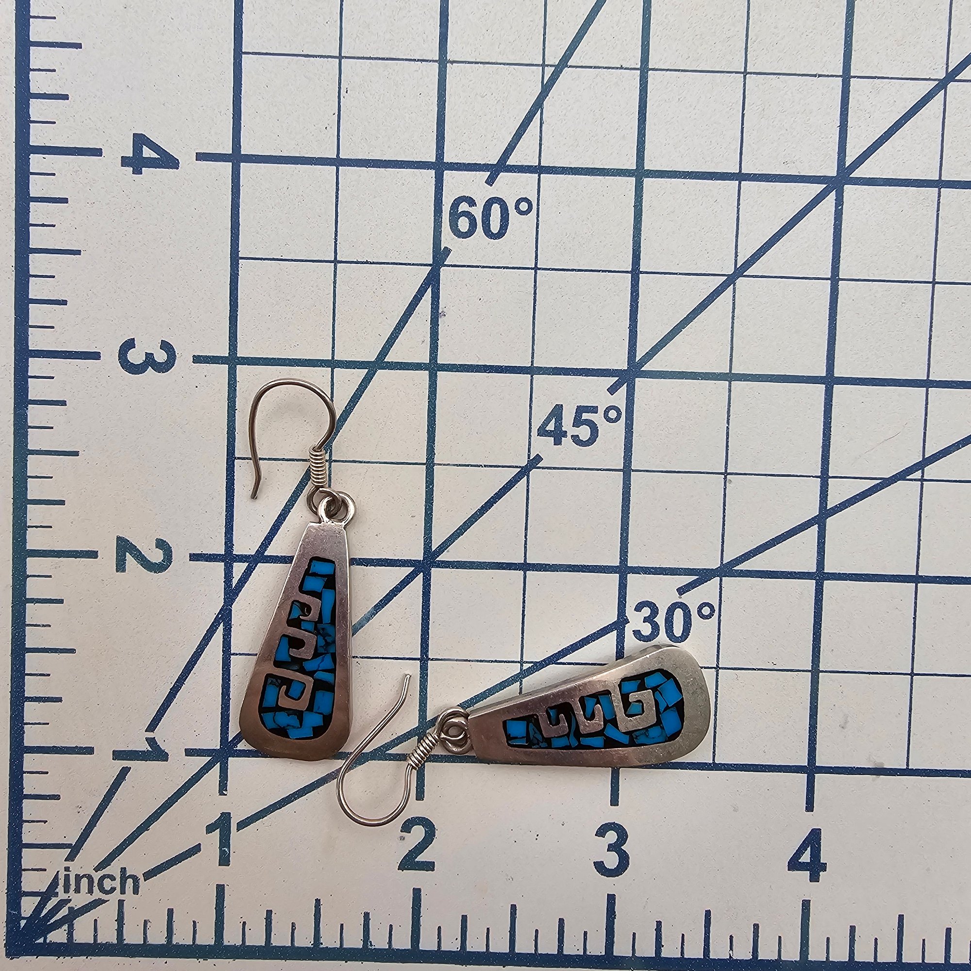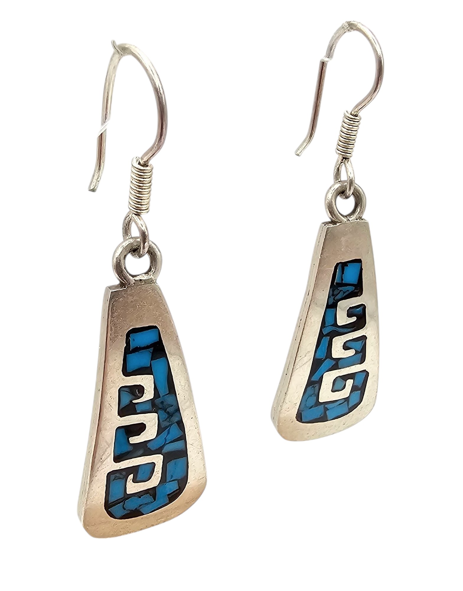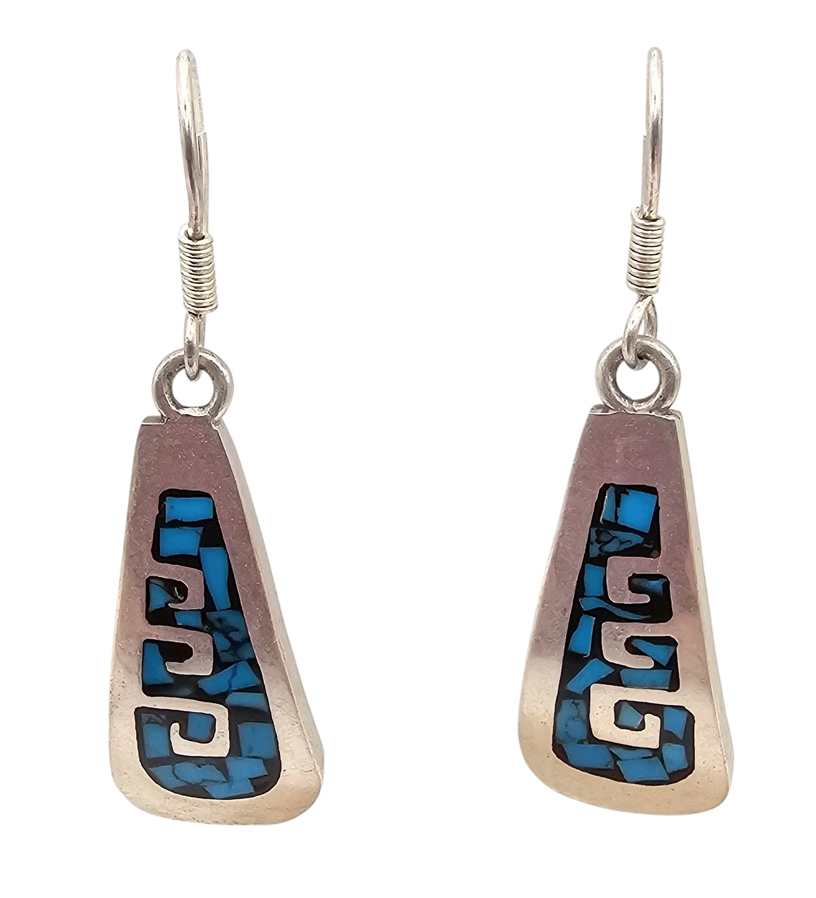 Mexico Taxco TB-148 Crushed Turquoise Sterling Silver Drop Dangle Earrings 12.1 G