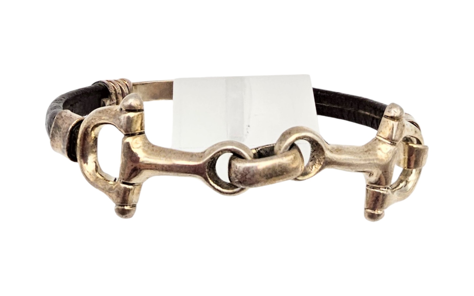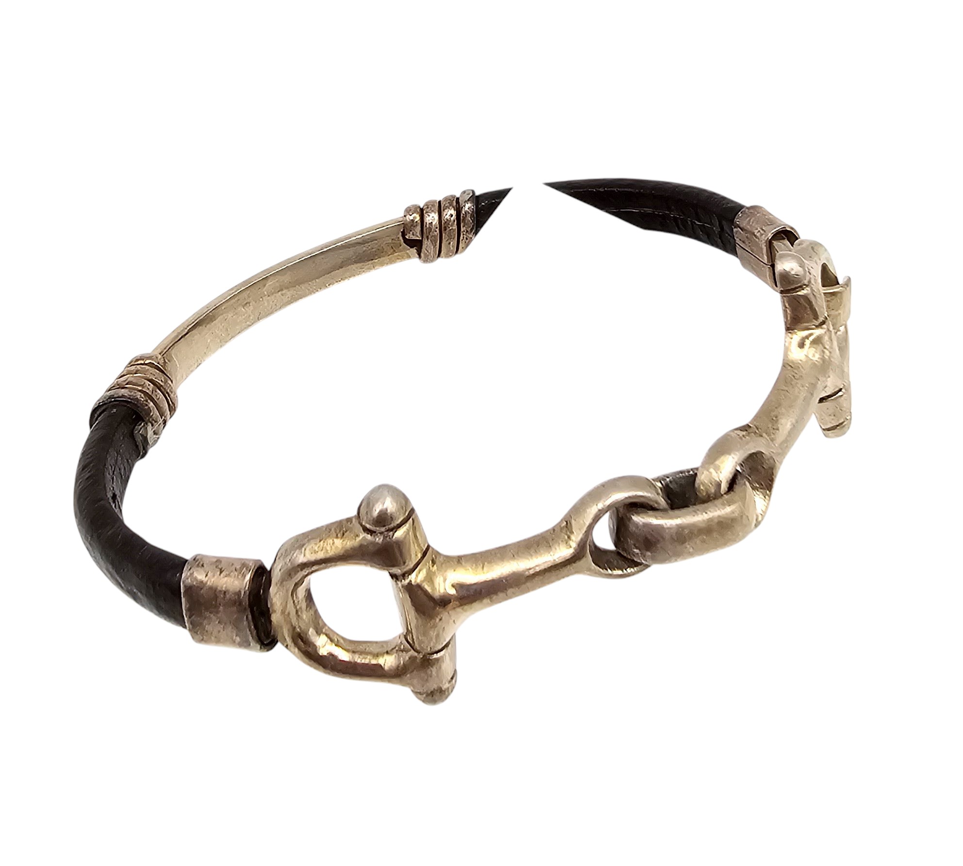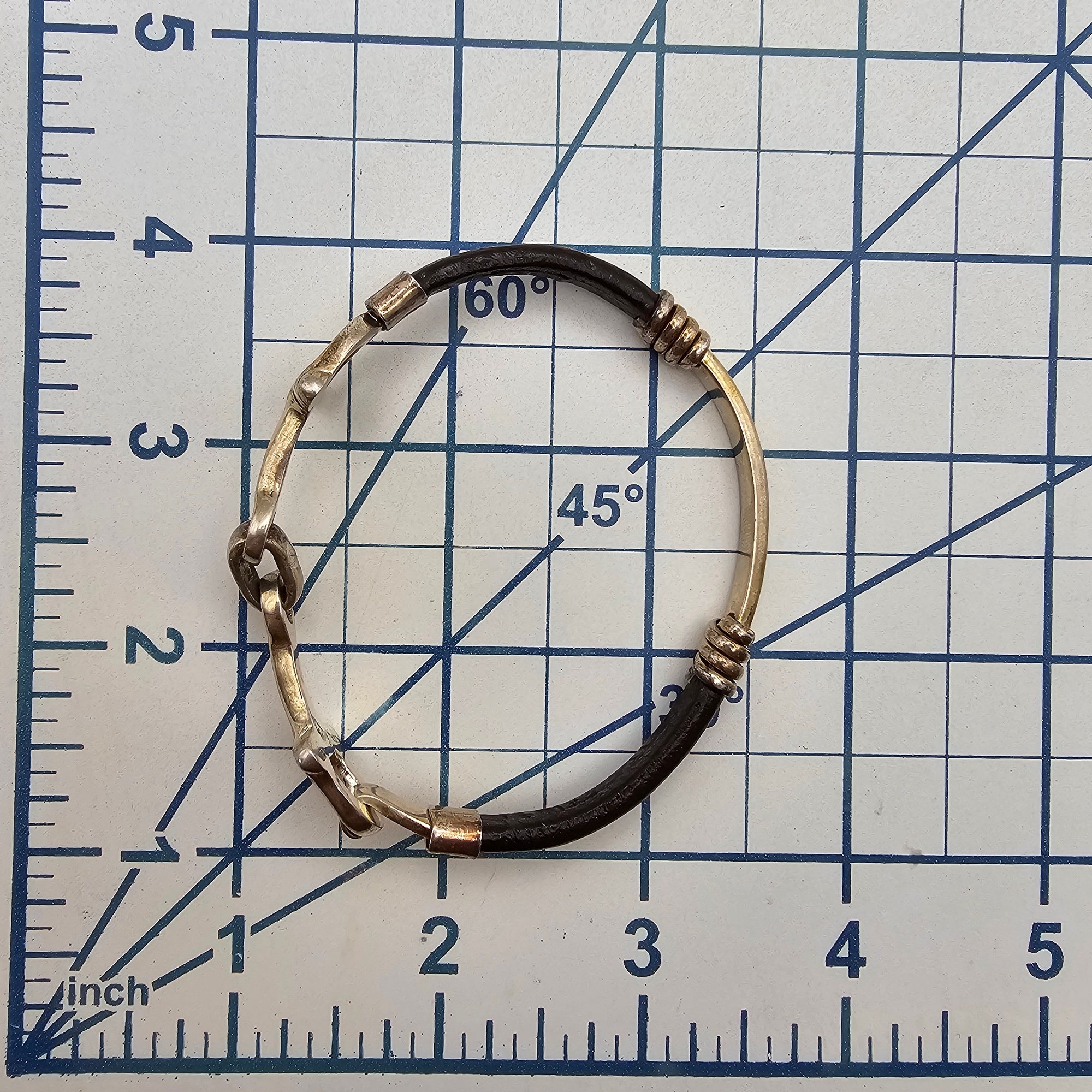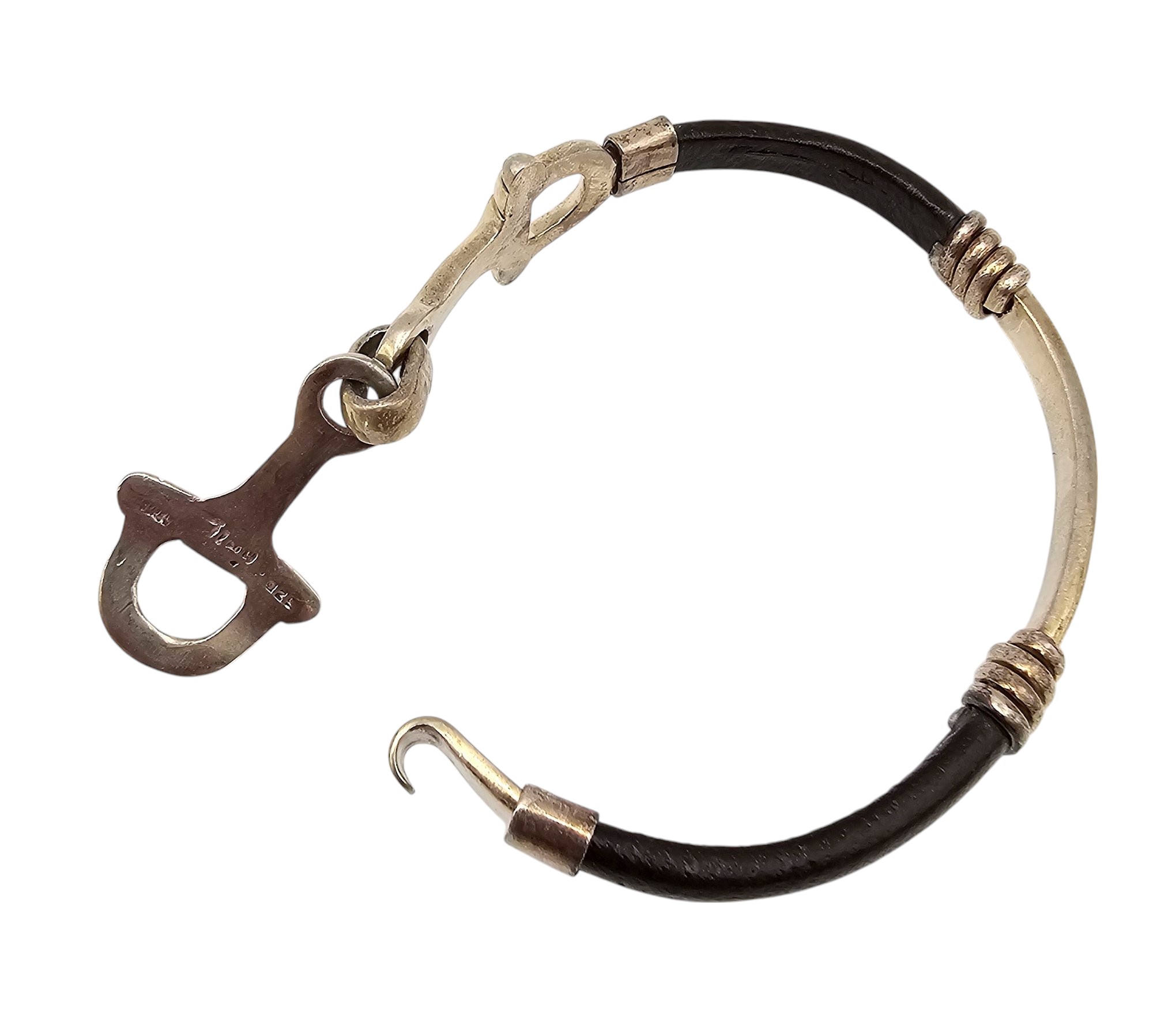 Mexico Taxco TL-4? Leather Sterling Silver Eye Hook Bangle Bracelet 33.2 G