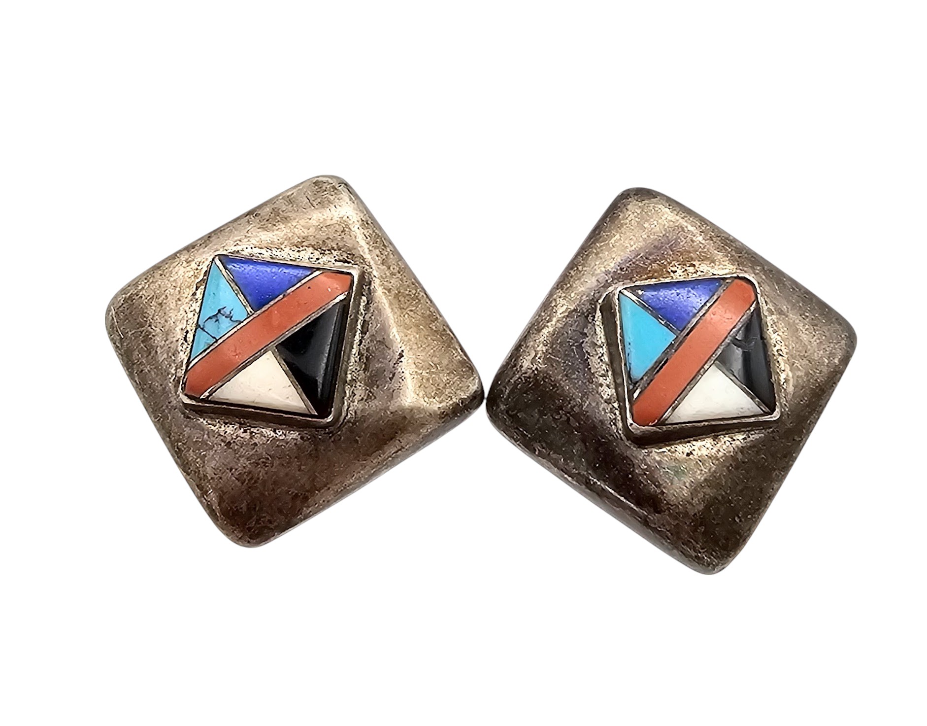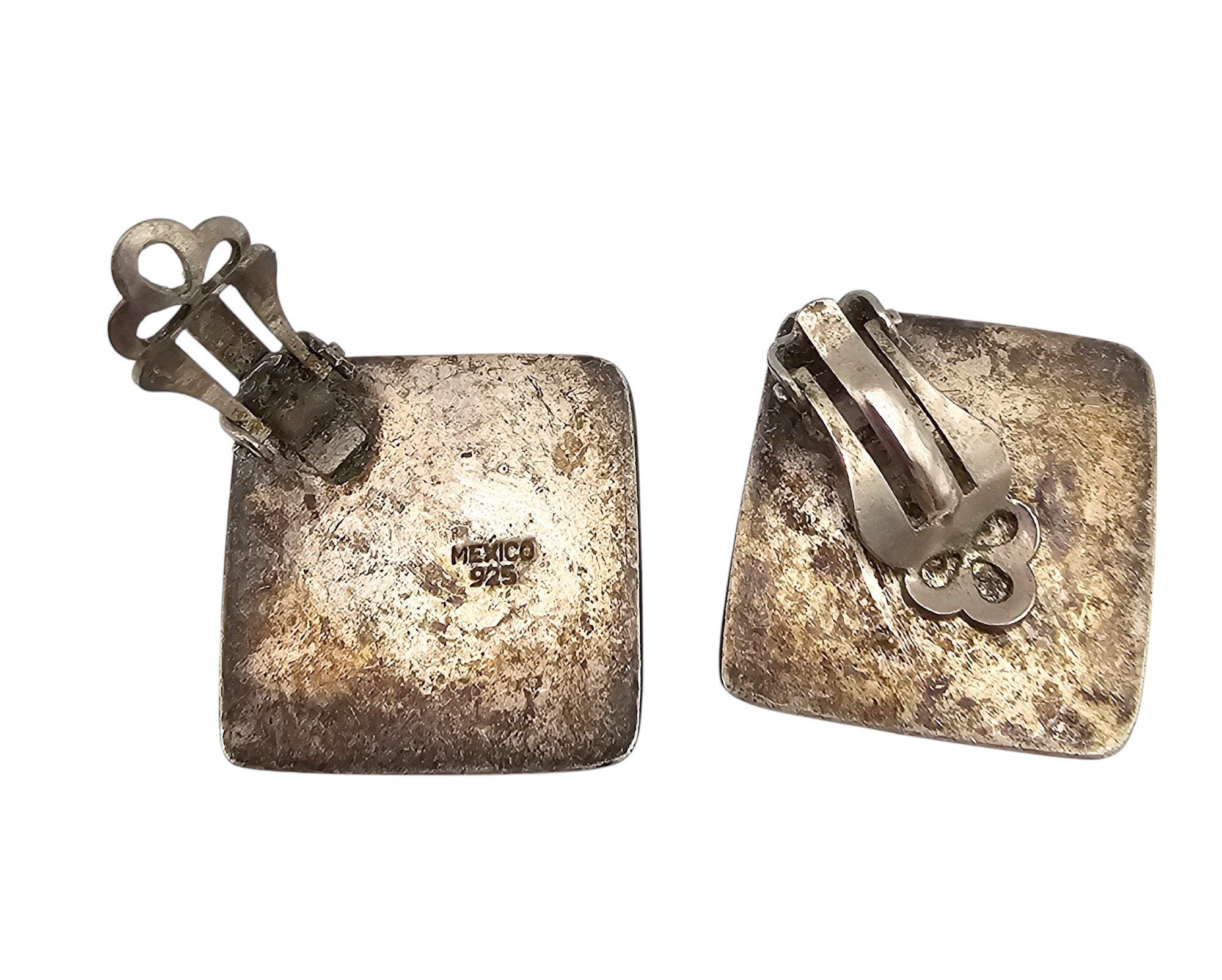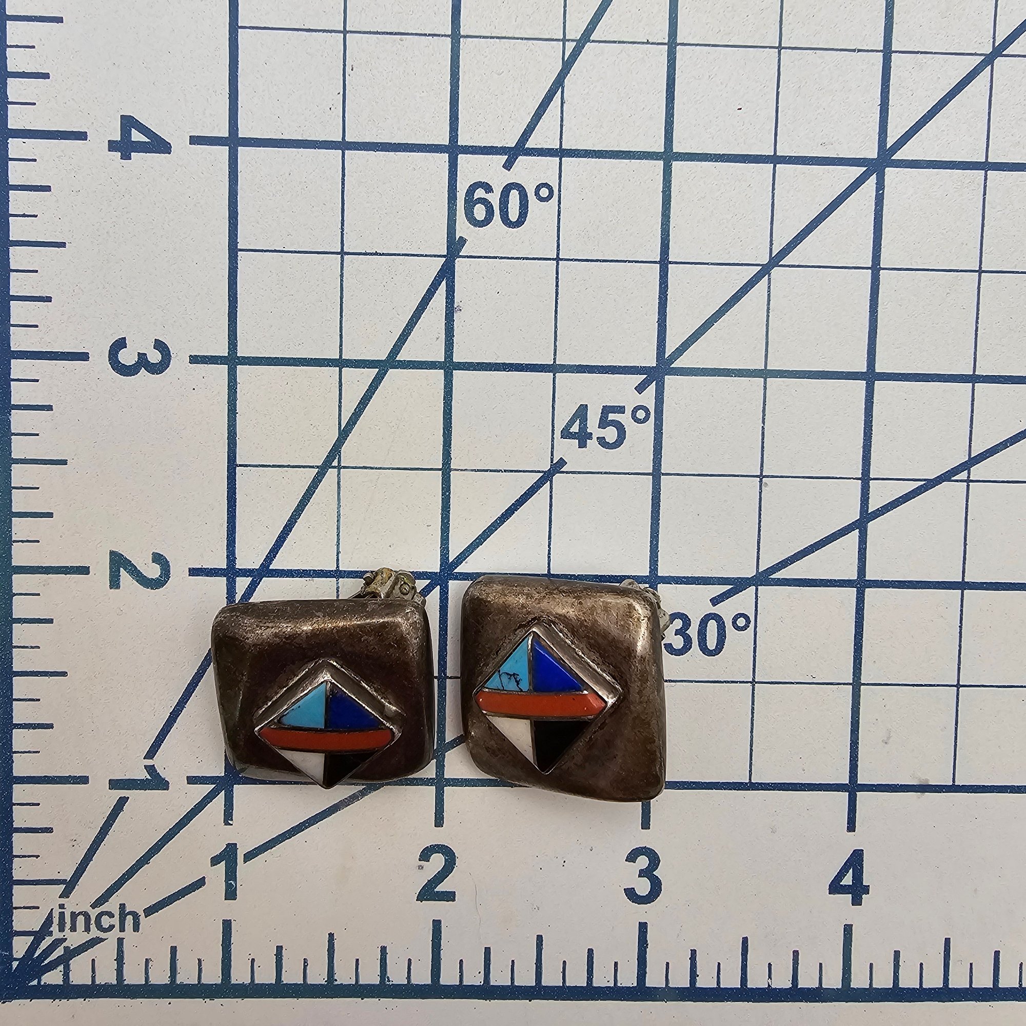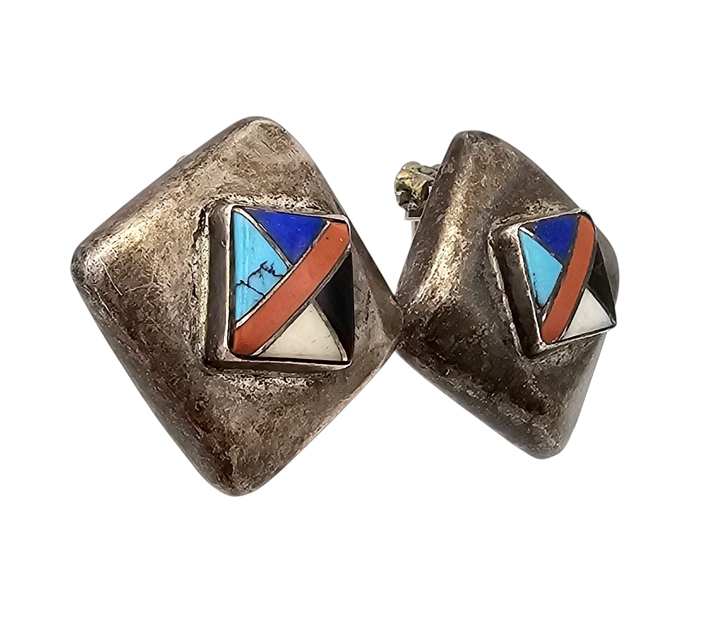 Mexico Coral Onyx Turquoise Sterling Silver Earrings 25.7 G