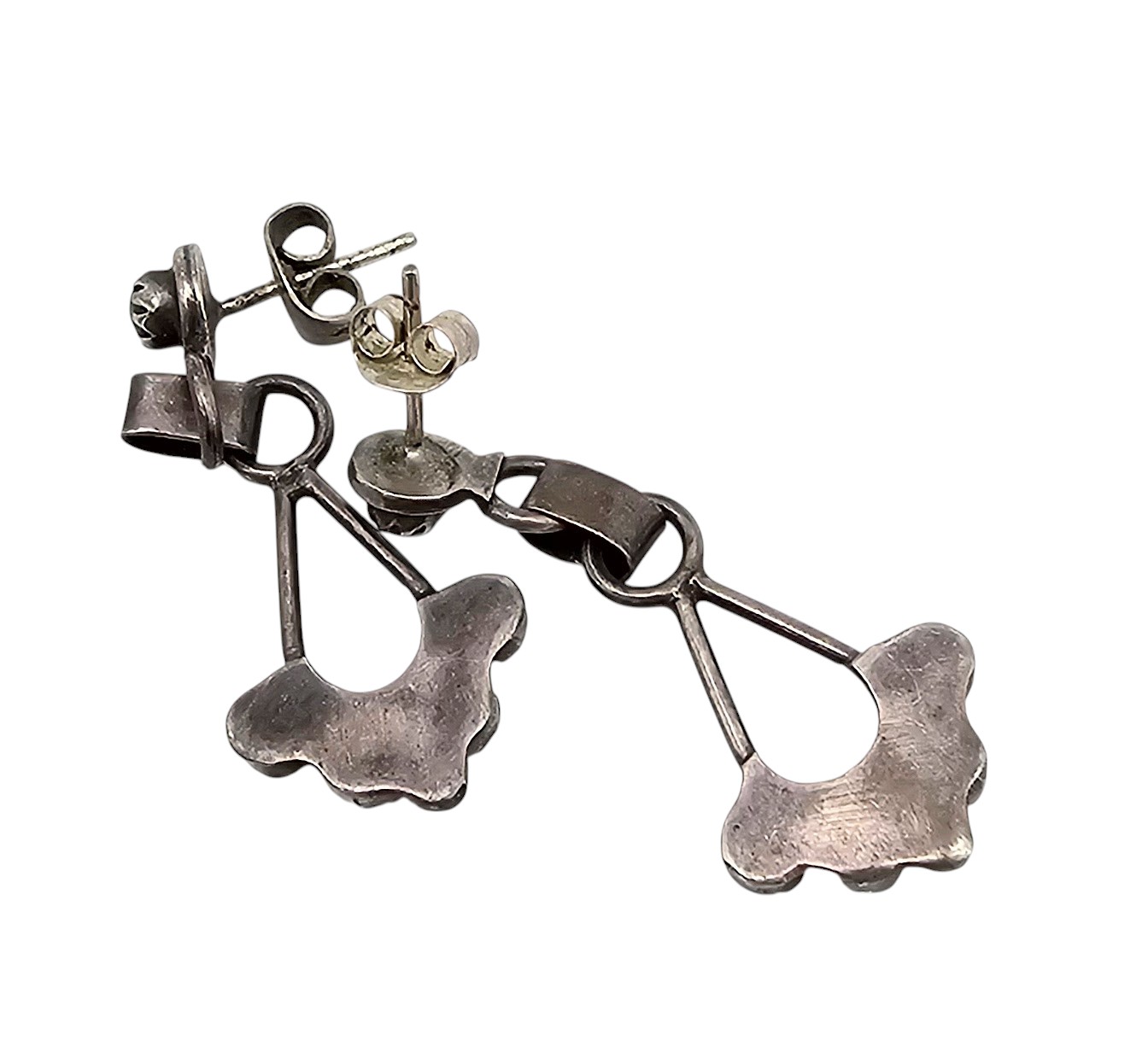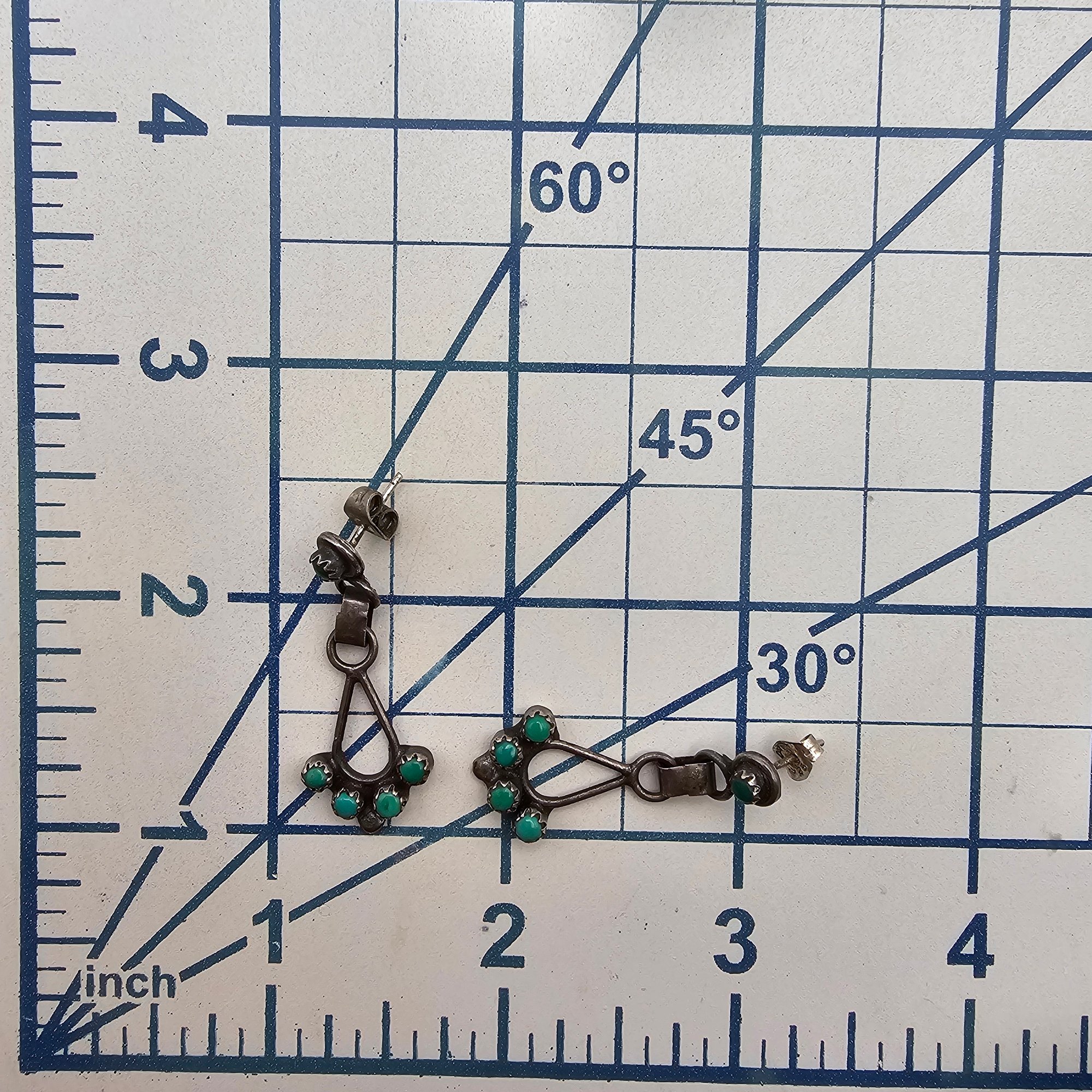 Zuni Turquoise Sterling Silver Snake Eye Drop Dangle Earrings 3.9 G