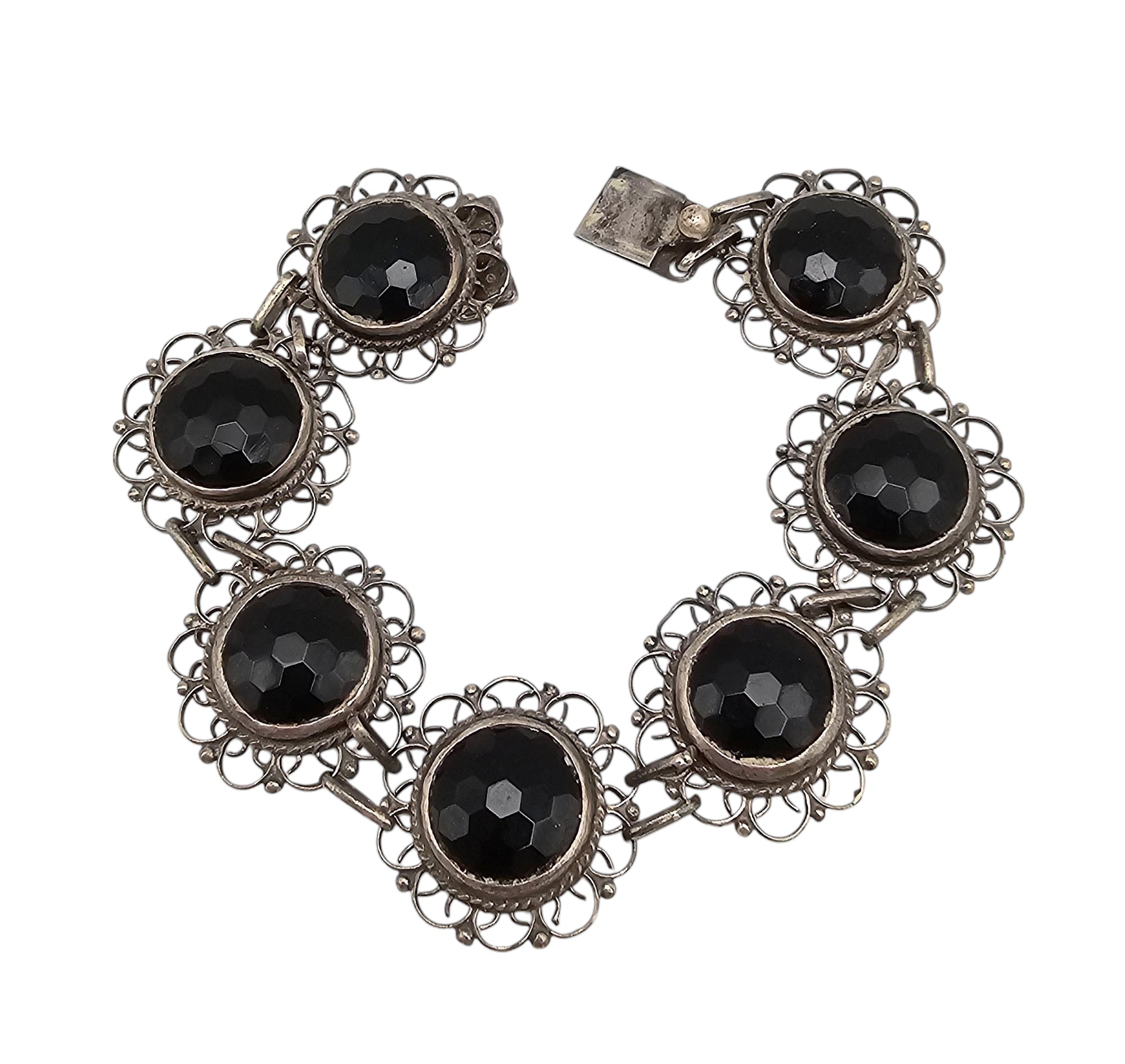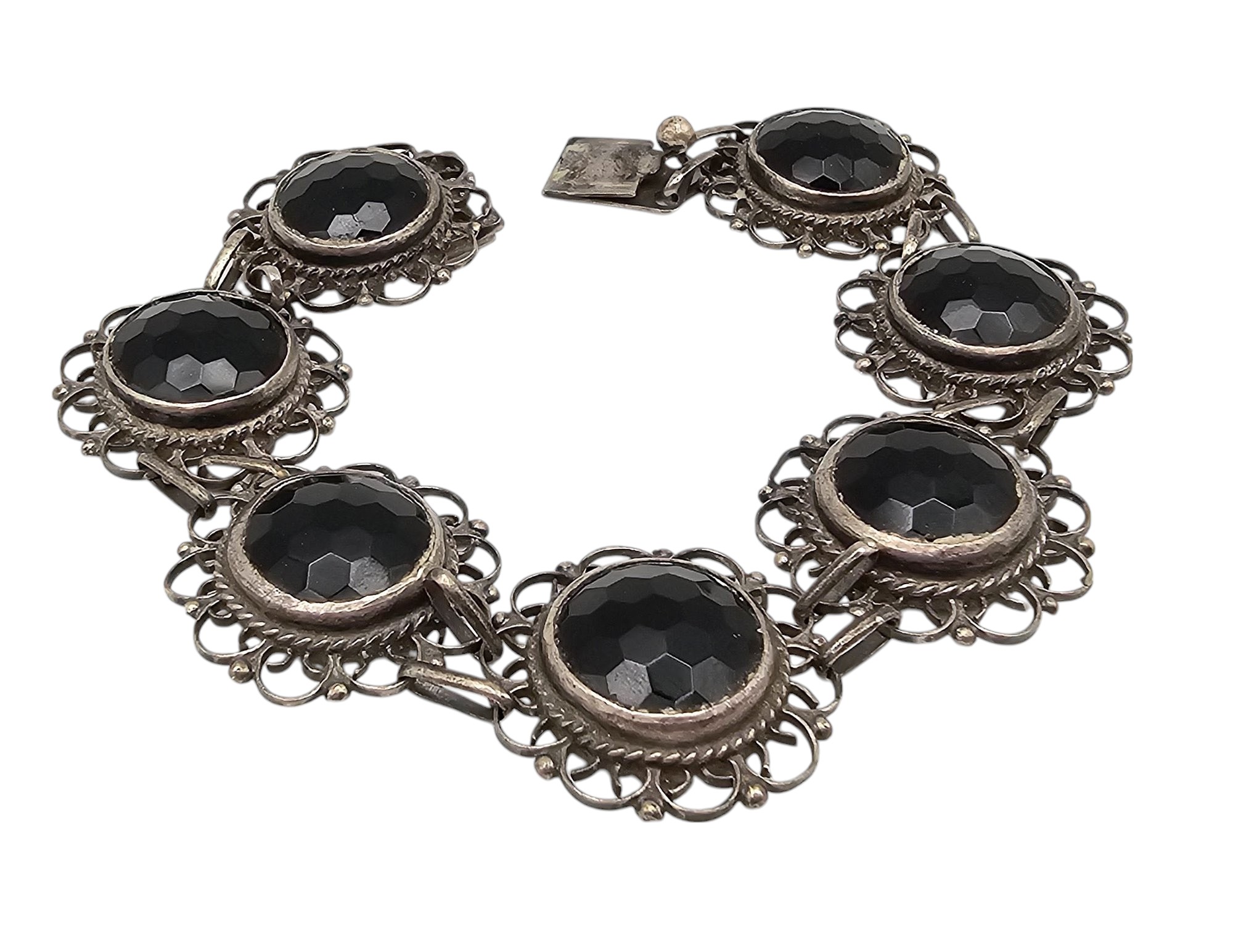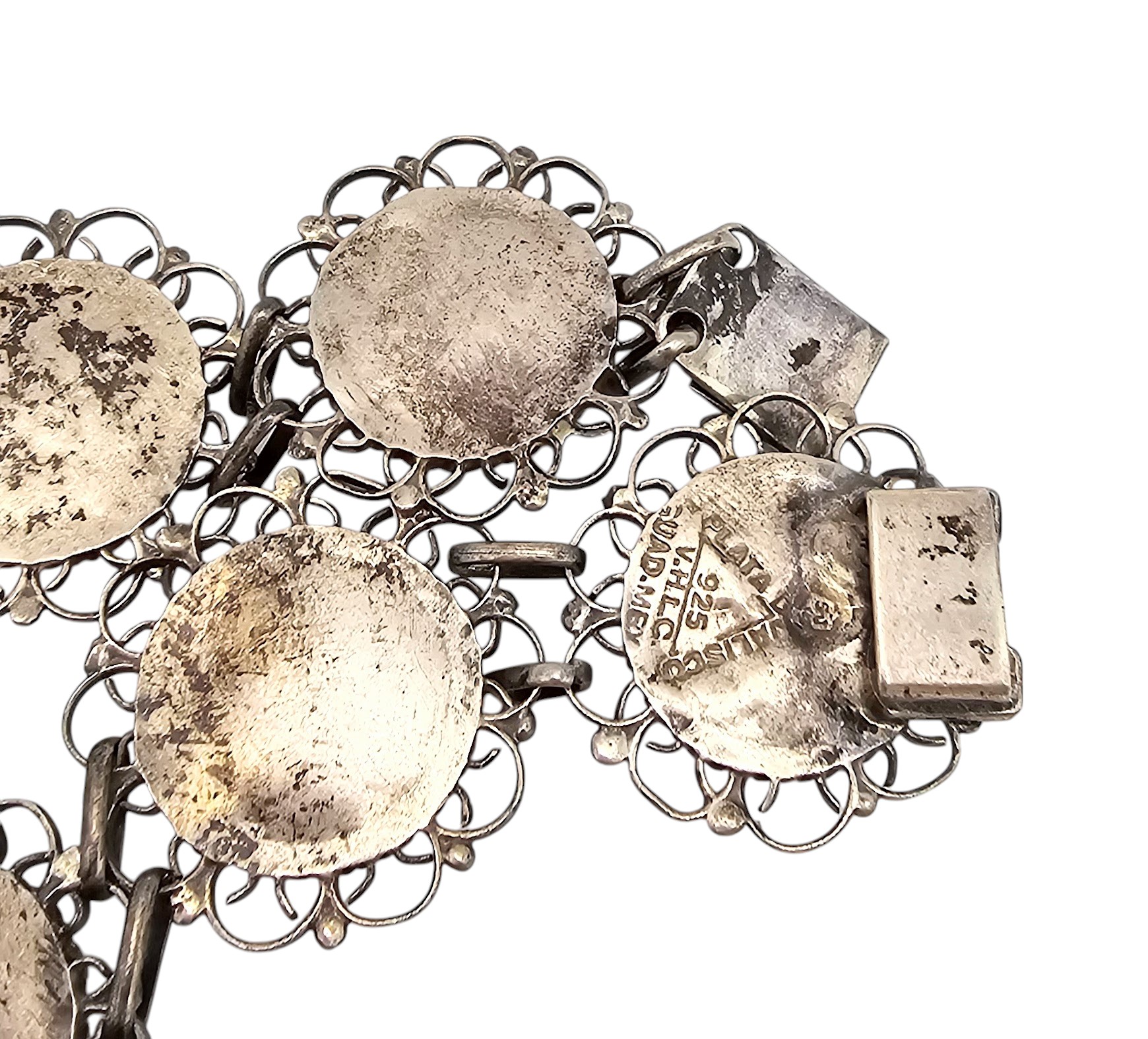 Mexico Rhinestone Sterling Silver Bracelet 25.7 G