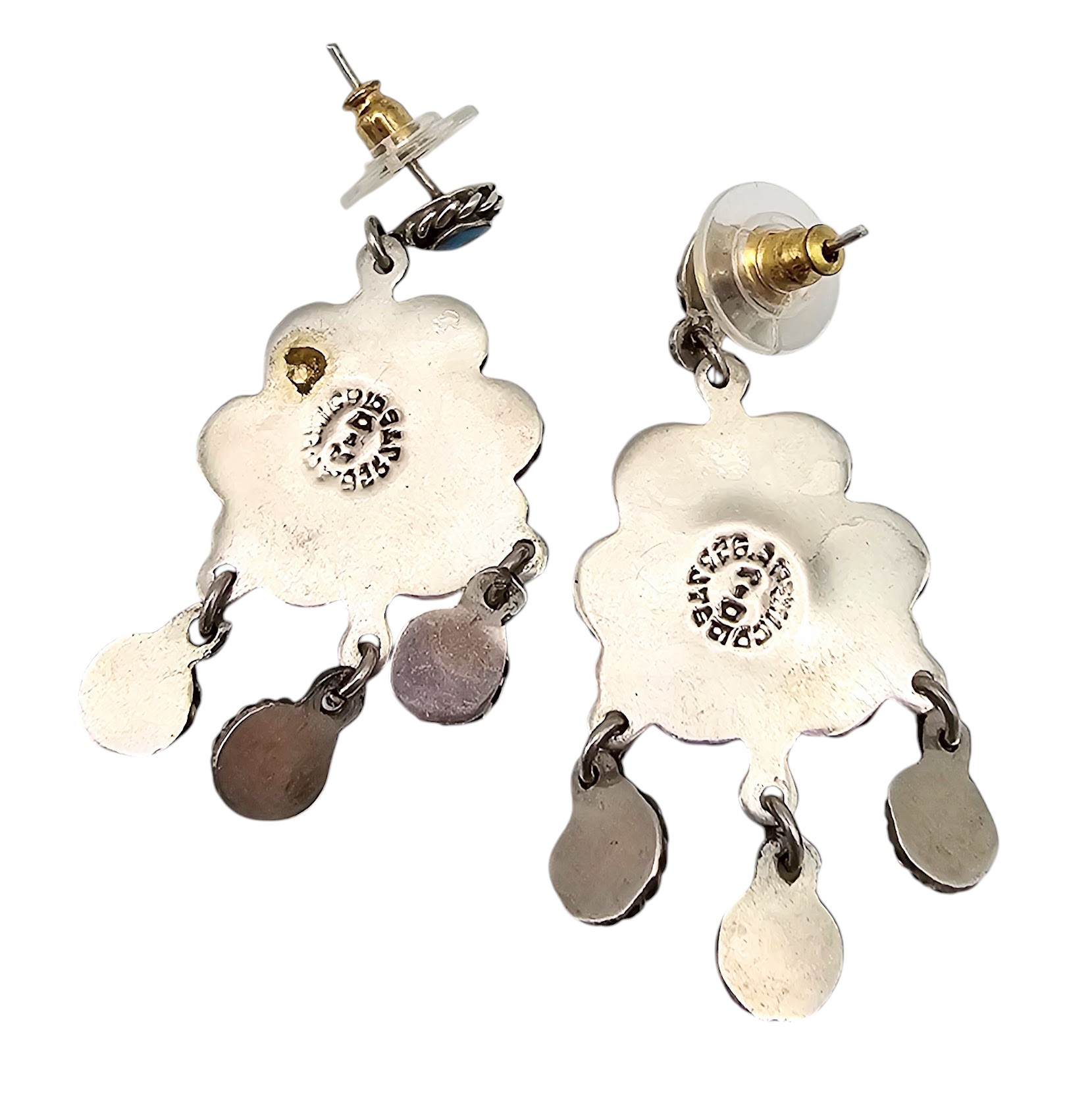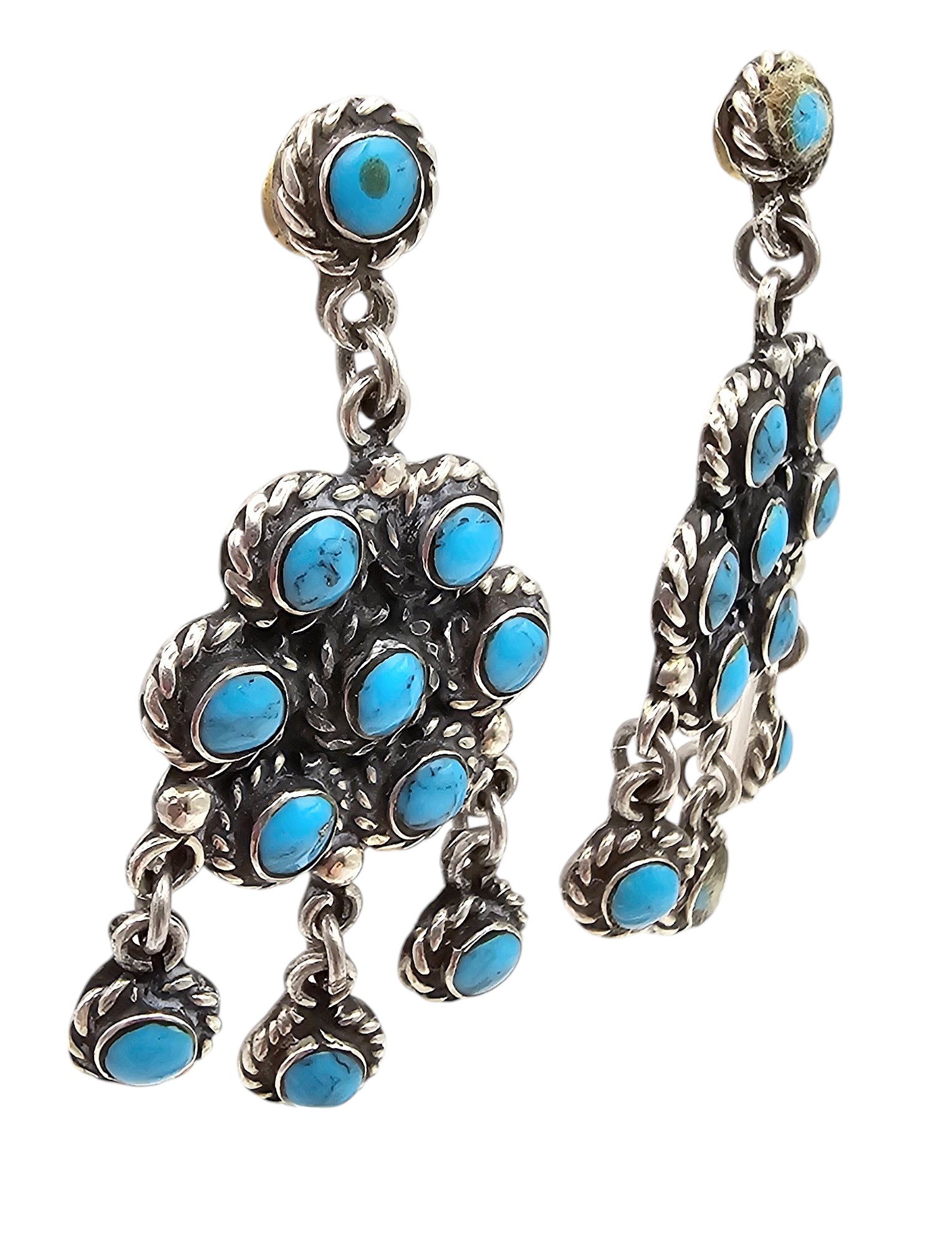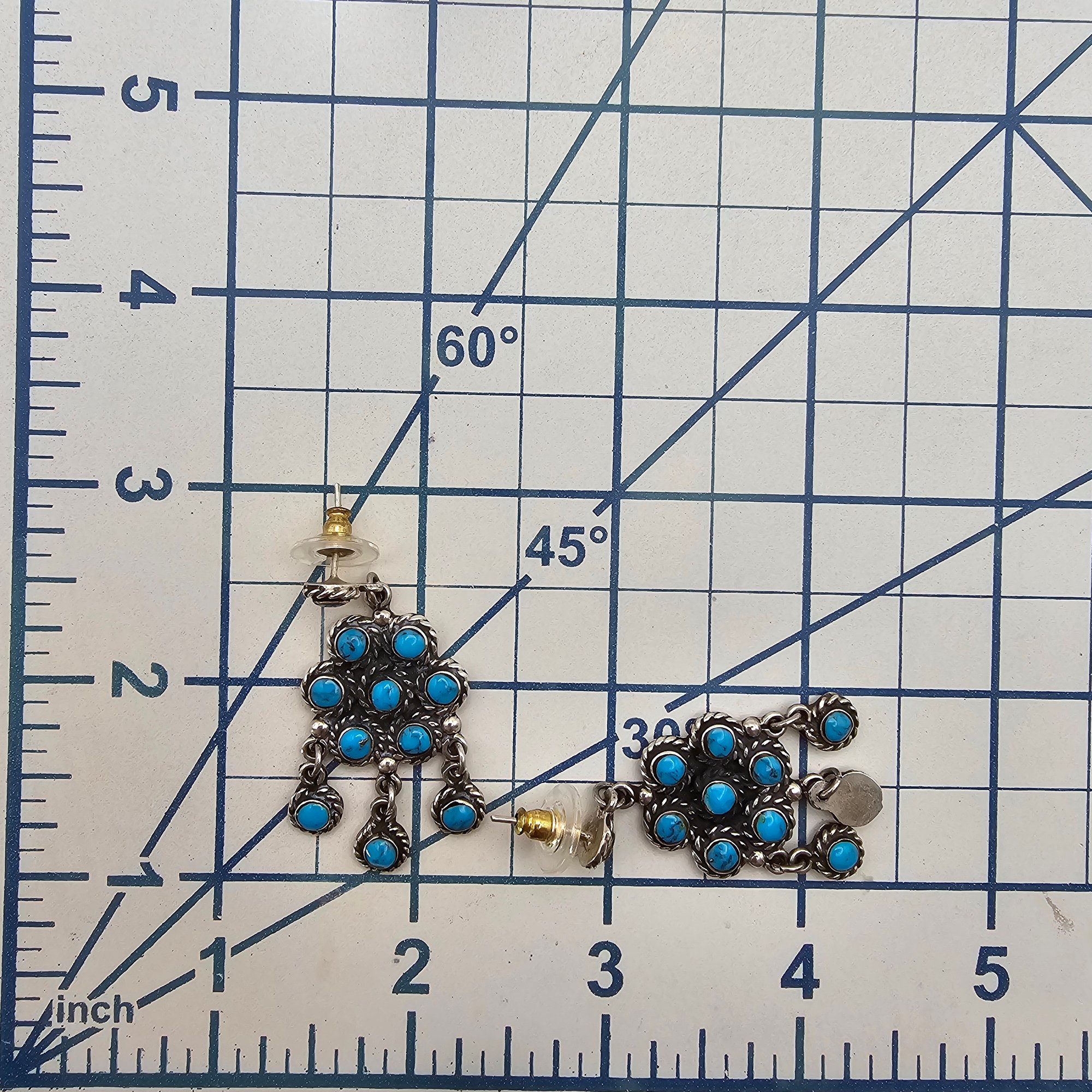 Mexico Turquoise Sterling Silver Drop Dangle Earrings 13.7 G