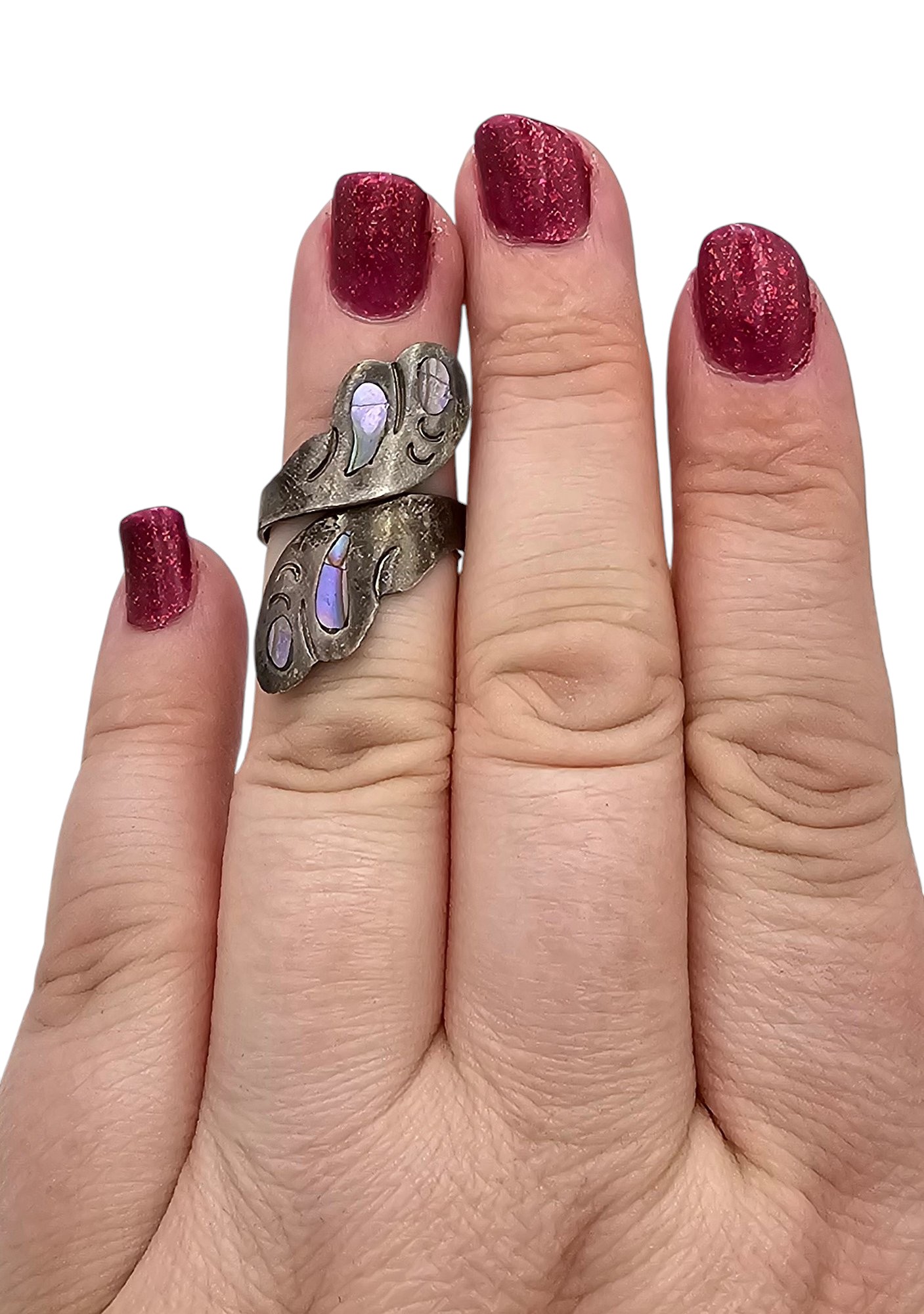 Mexico Abalone Sterling Silver wrap ring size 4.5 3.7 G