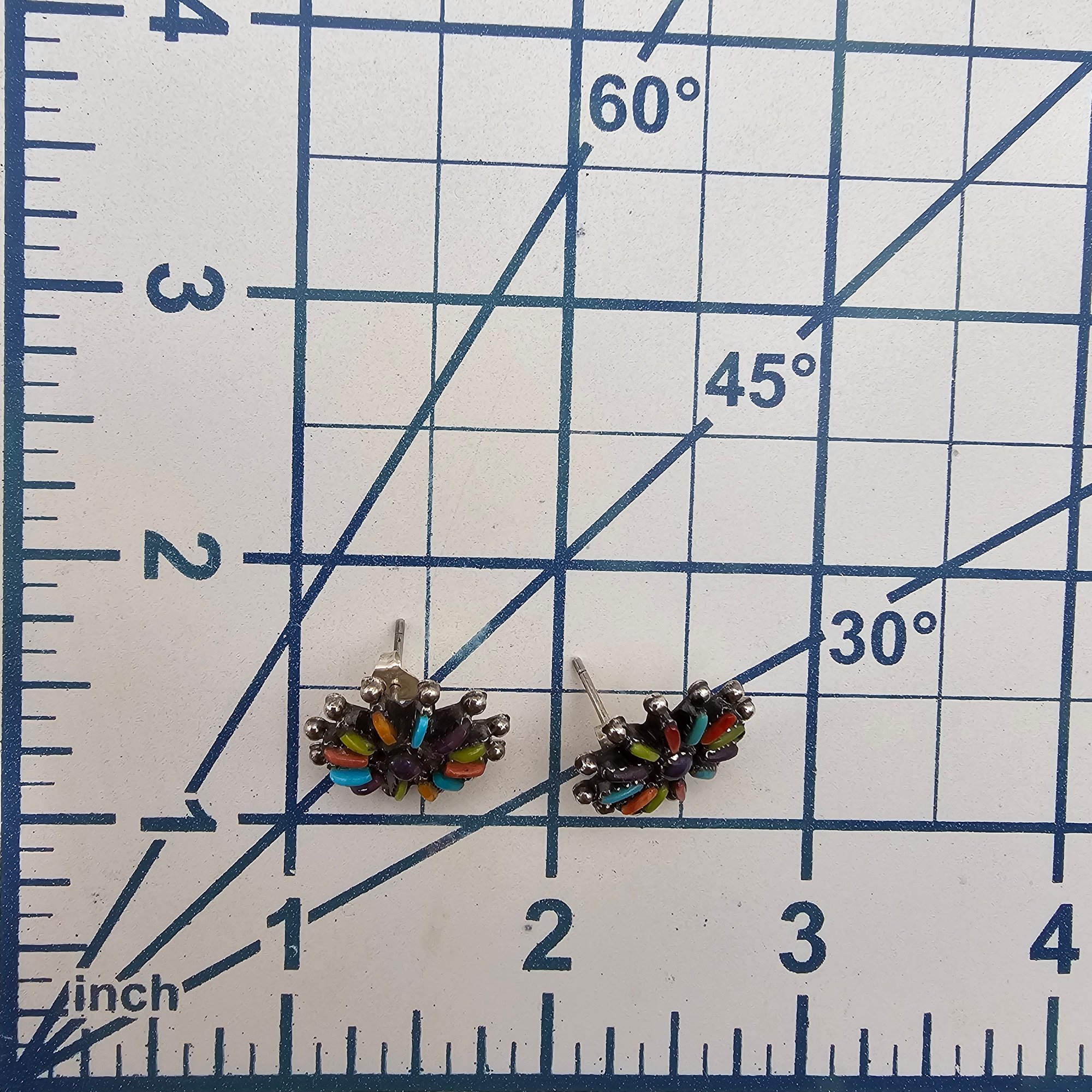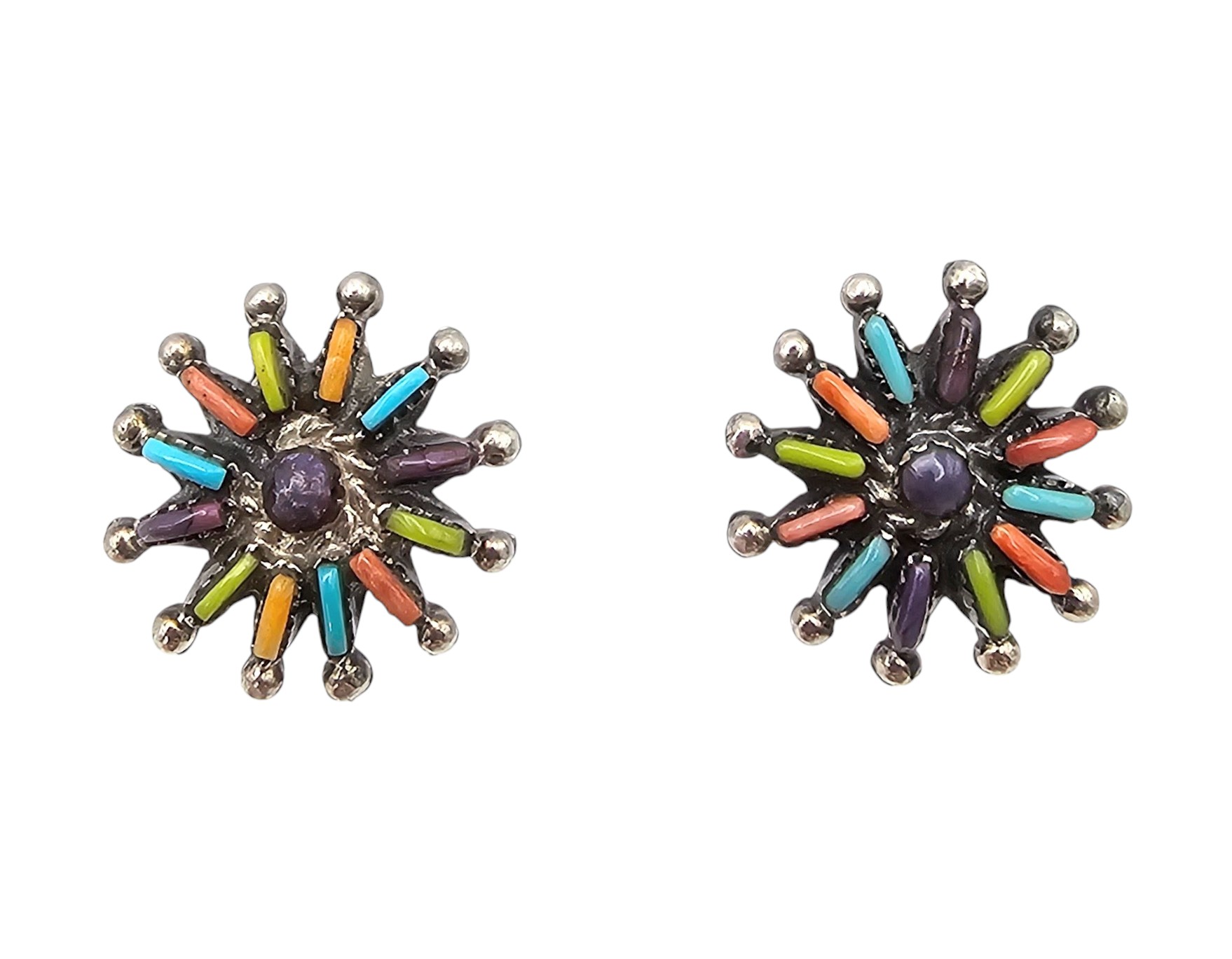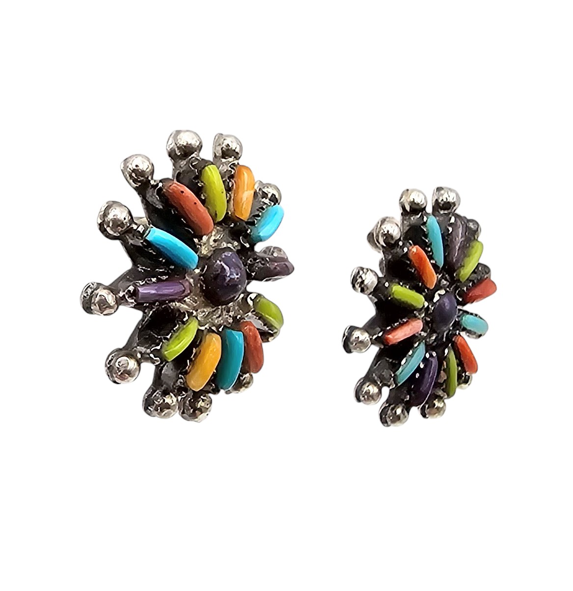 Southwestern Multi Stone Sterling Silver Needlepoint Flower Earrings 5 G