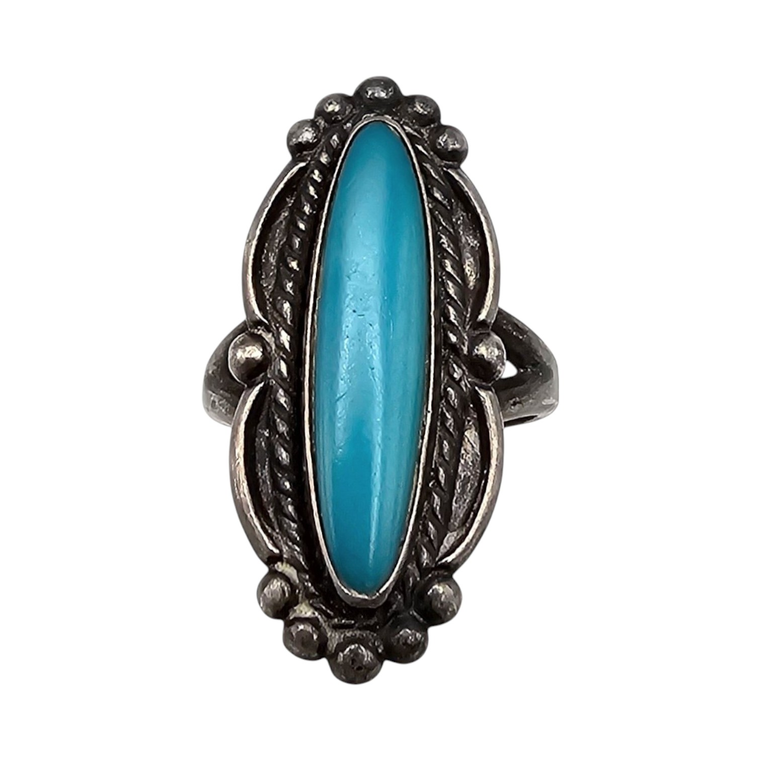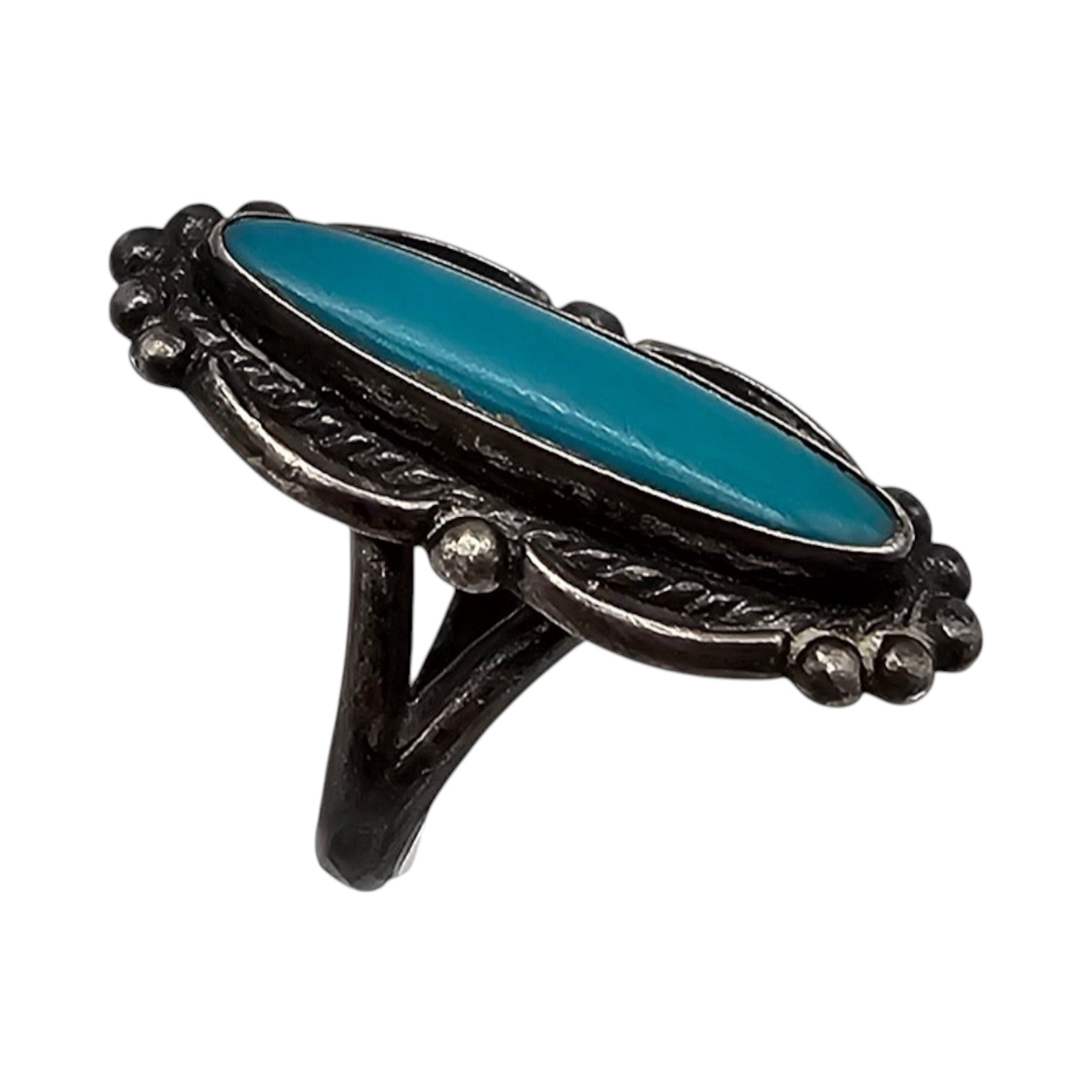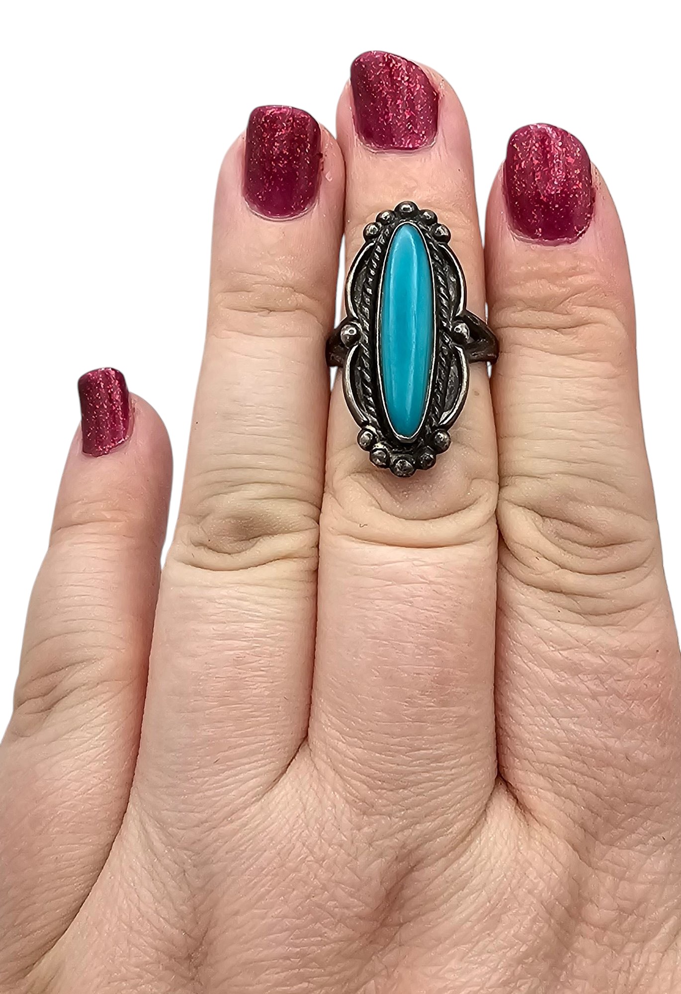 Southwestern Turquoise Sterling Silver Ring Size 6.75 6.3 G