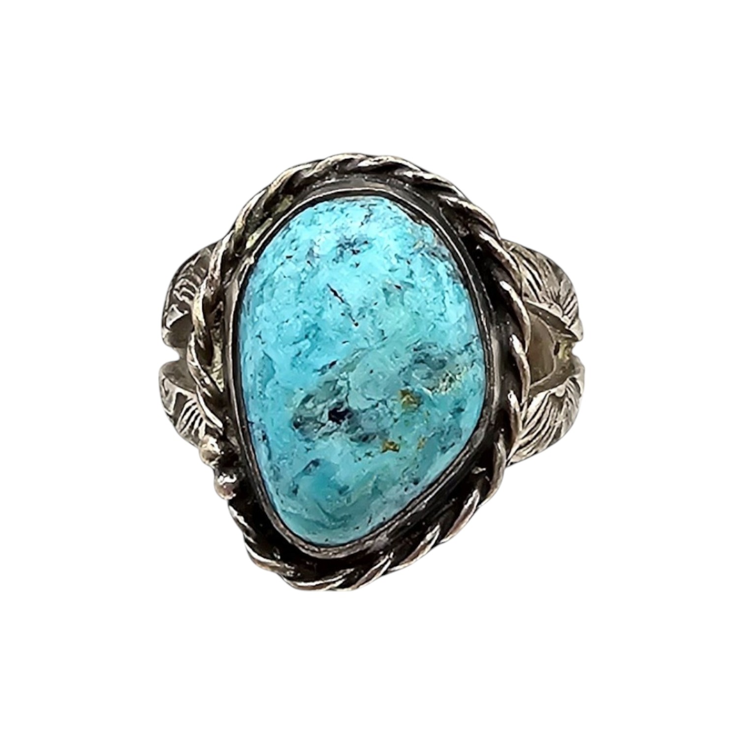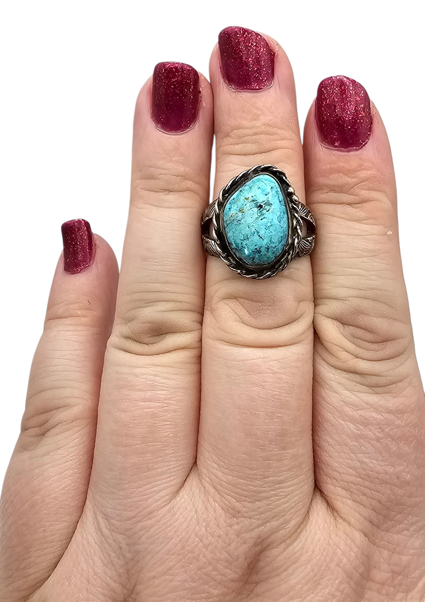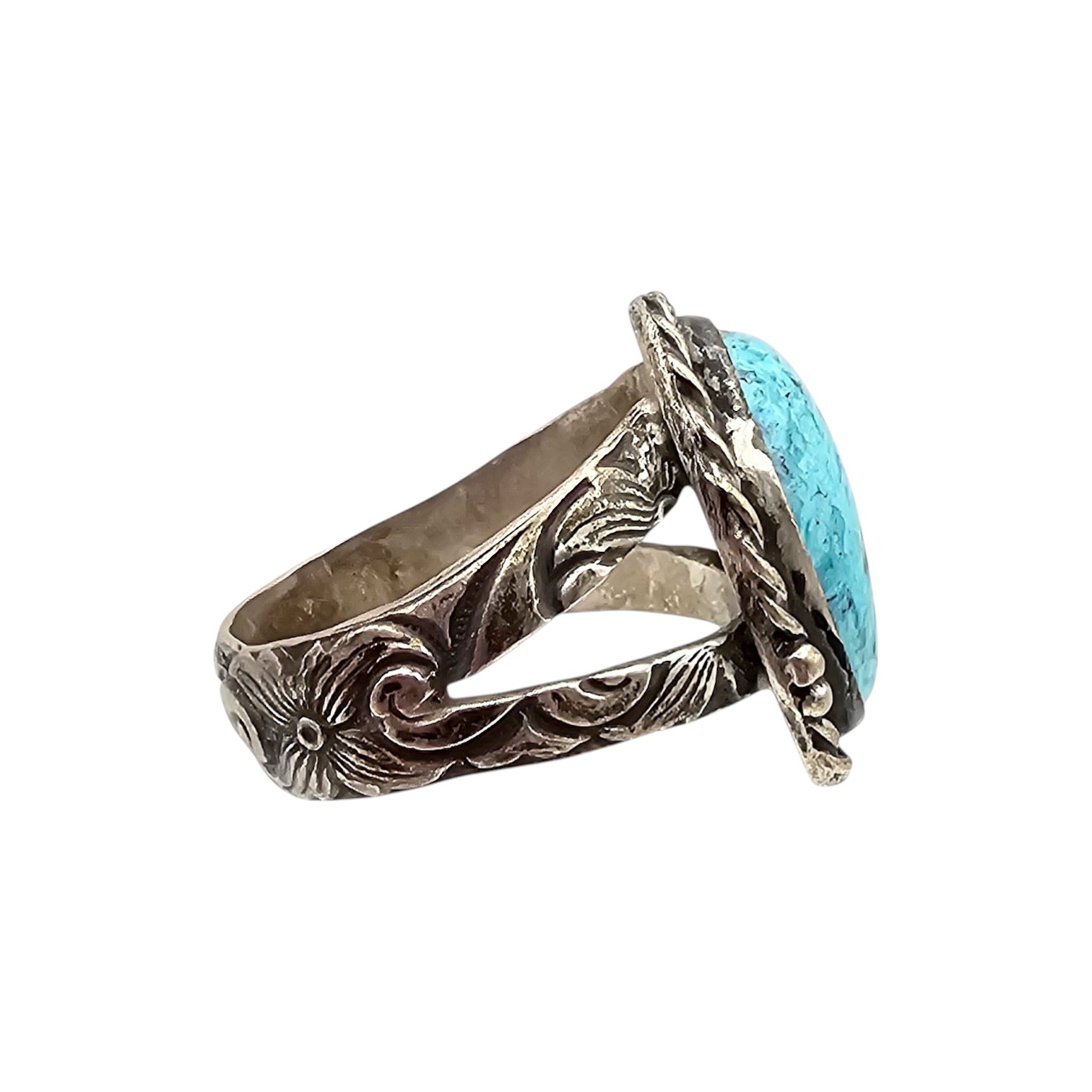 Southwestern Turquoise Sterling Silver Ring Size 7.25 7.2 G