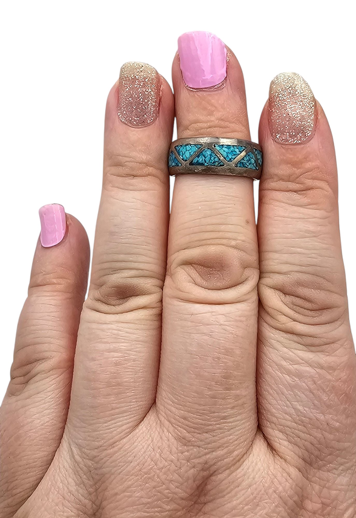 Native Crushed Turquoise Sterling Silver Ring Size 5.5 5.4 G