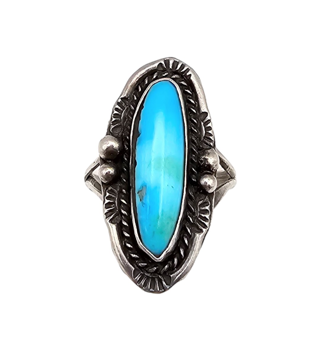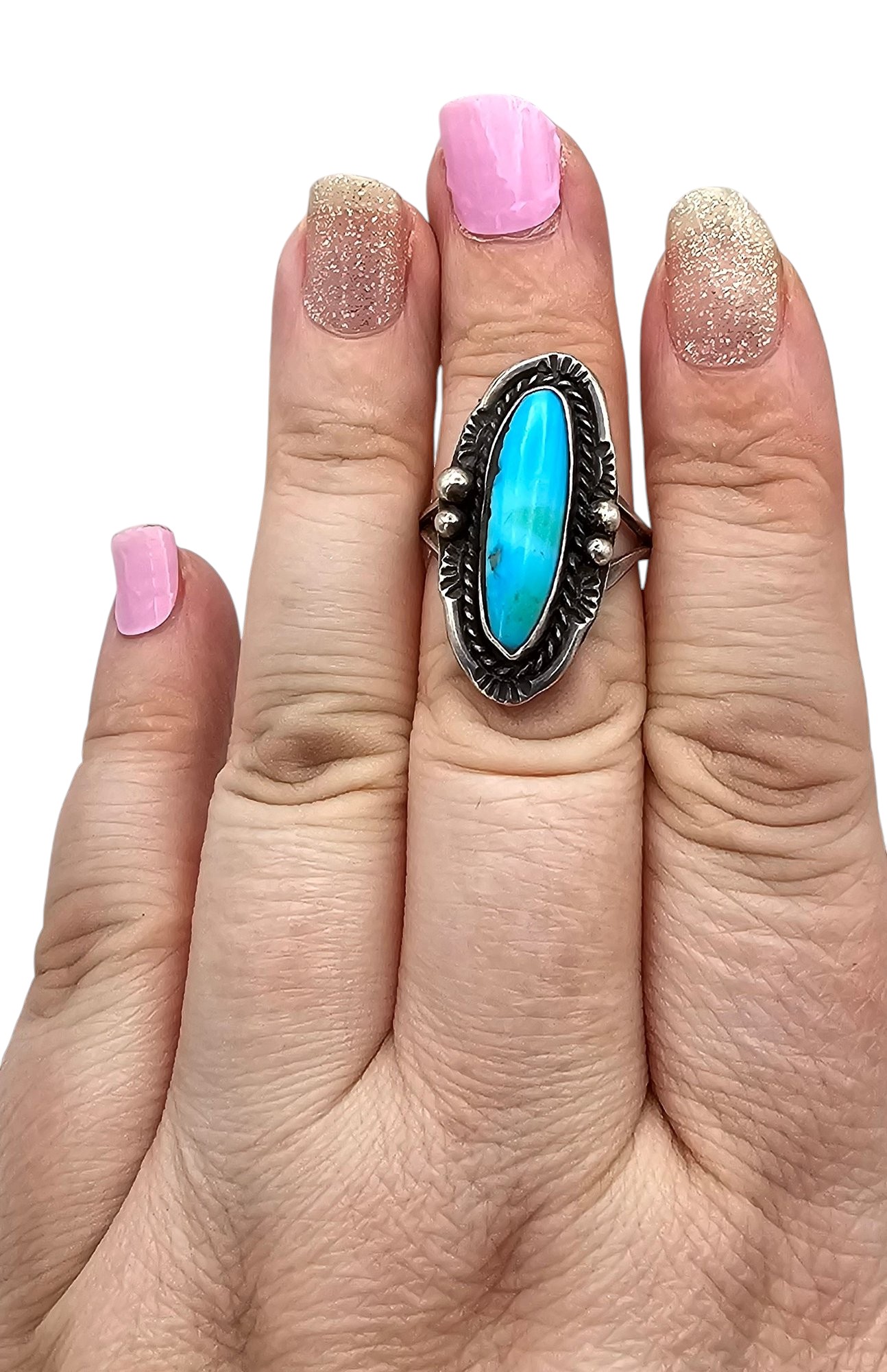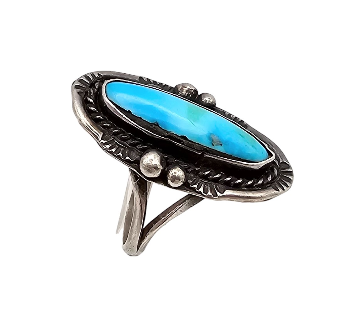 Navajo Turquoise Sterling Silver Ring Size 7 4.8 G