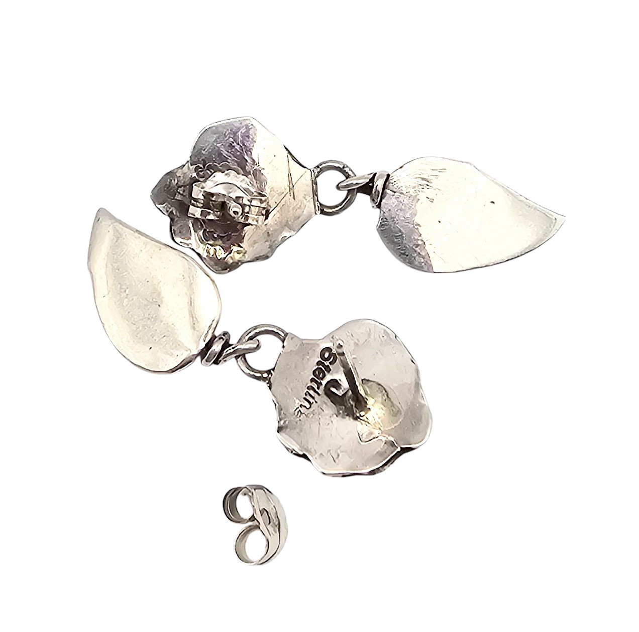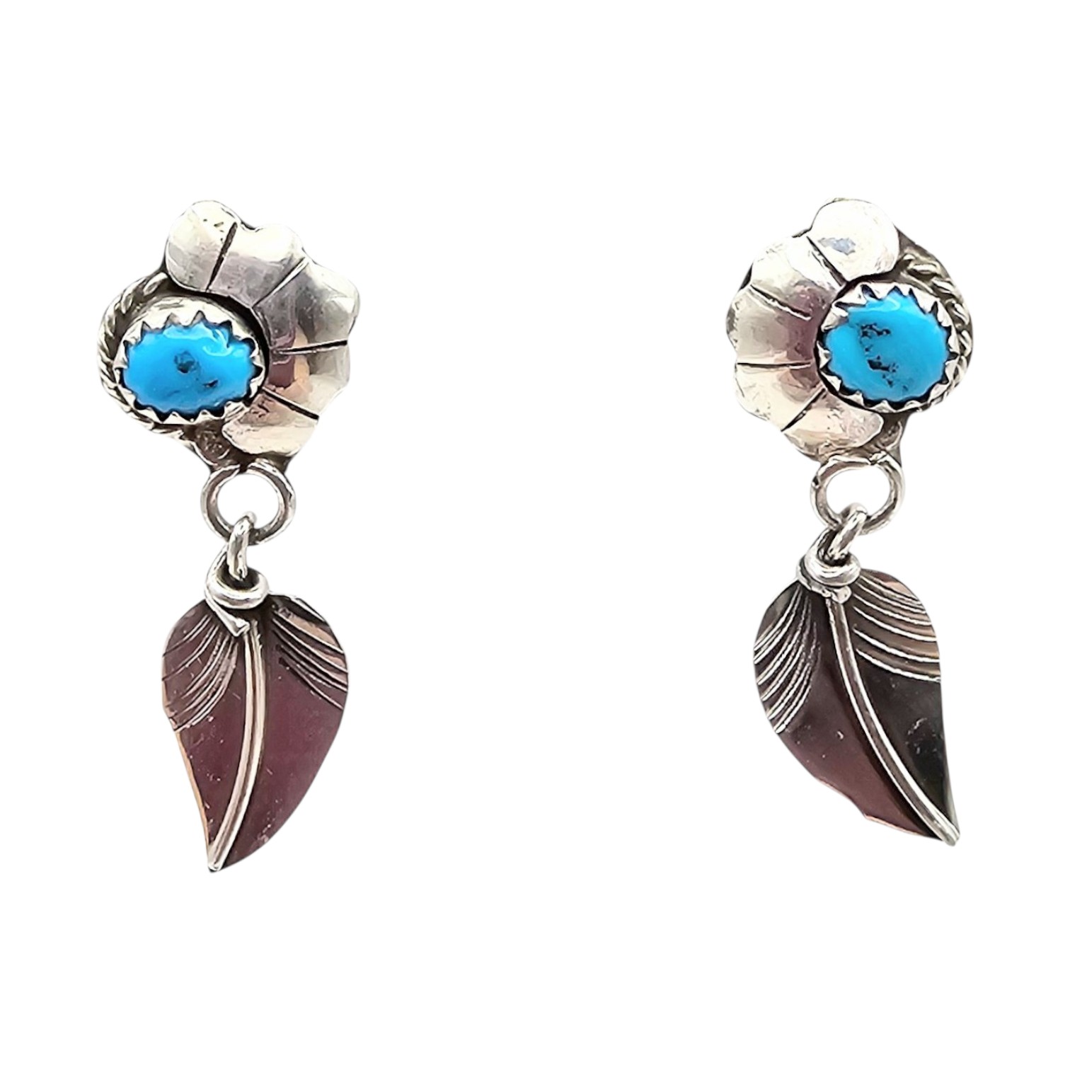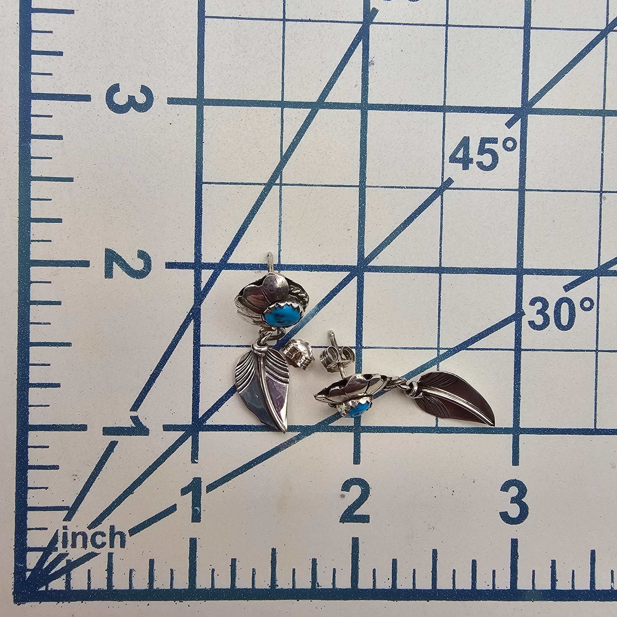 Jason Livingston Navajo Turquoise Sterling Silver Feather Drop Dangle Earrings 2.8 G