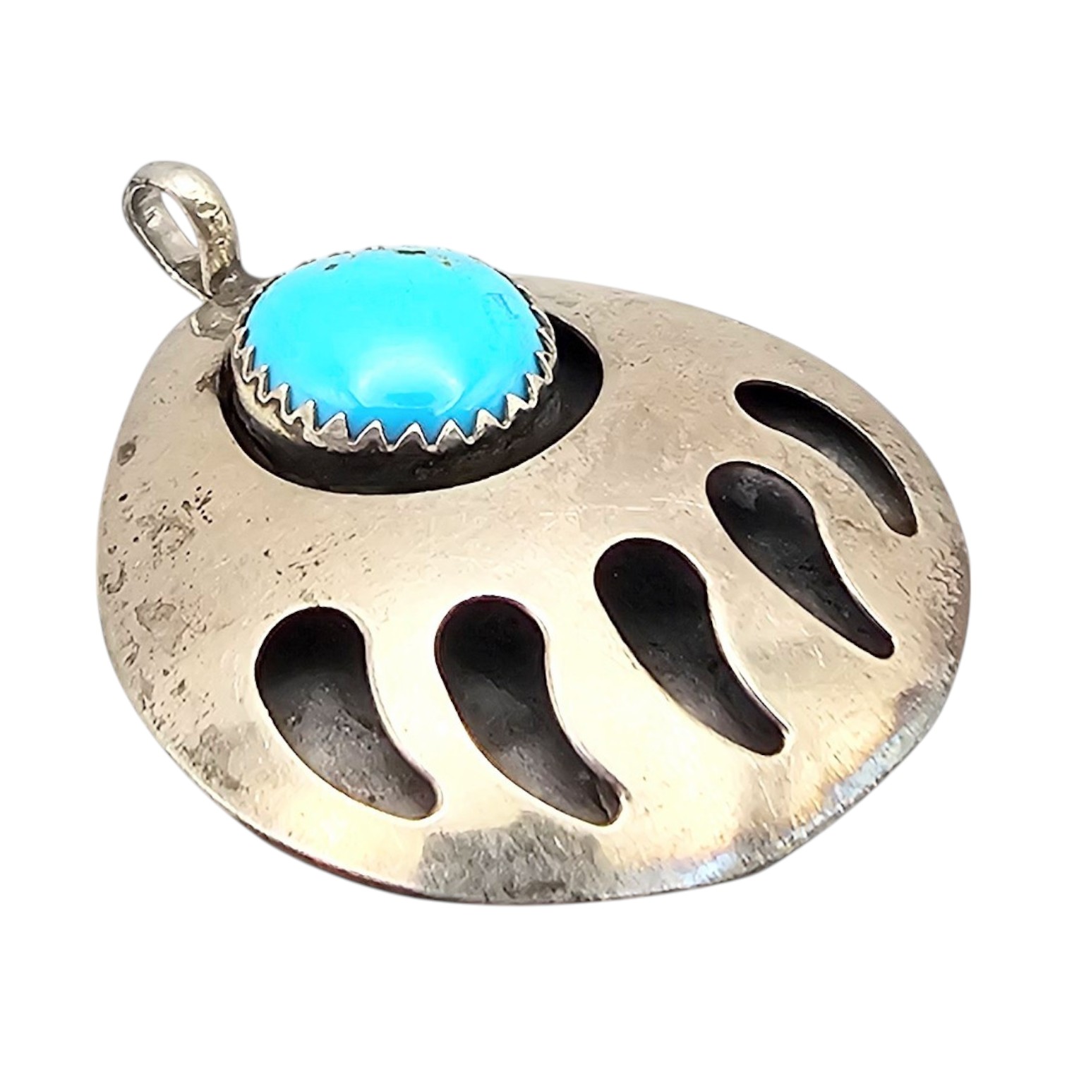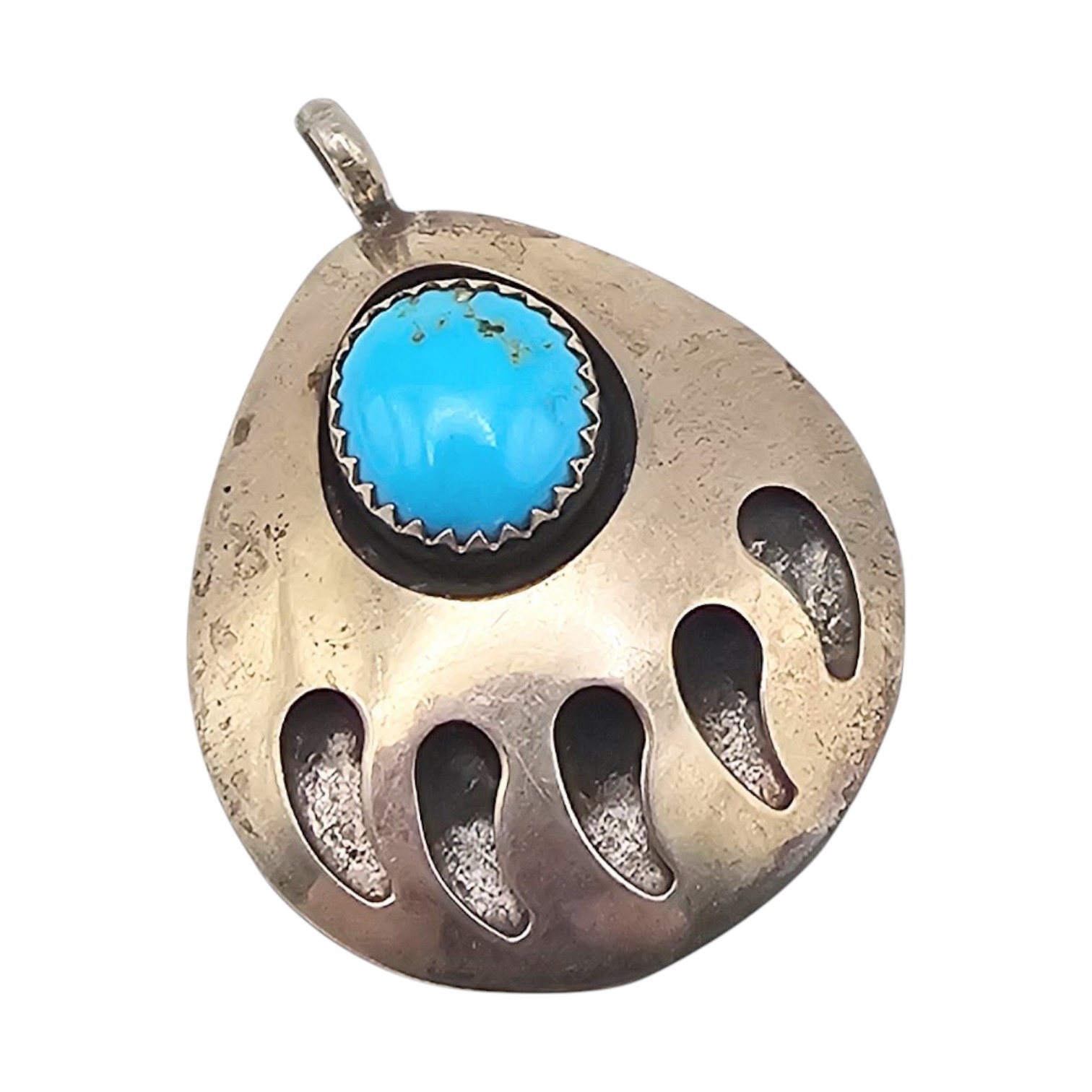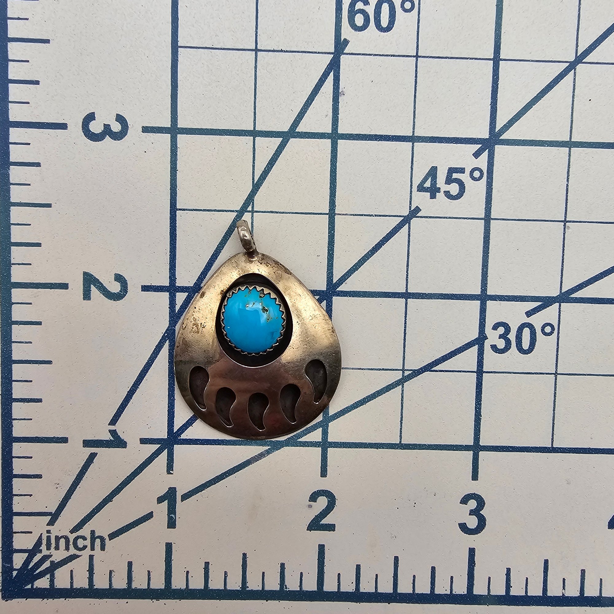 Navajo Turquoise Sterling Silver Bear Paw Pendant 3.9 G