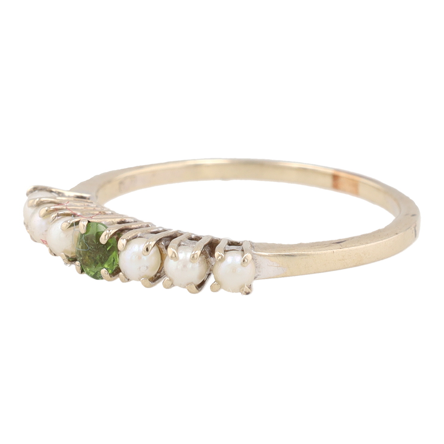 Peridot Pearl 18K Gold Cocktail Ring Size 8 2.7 G Approximately 0.15 TCW 3.0 MM