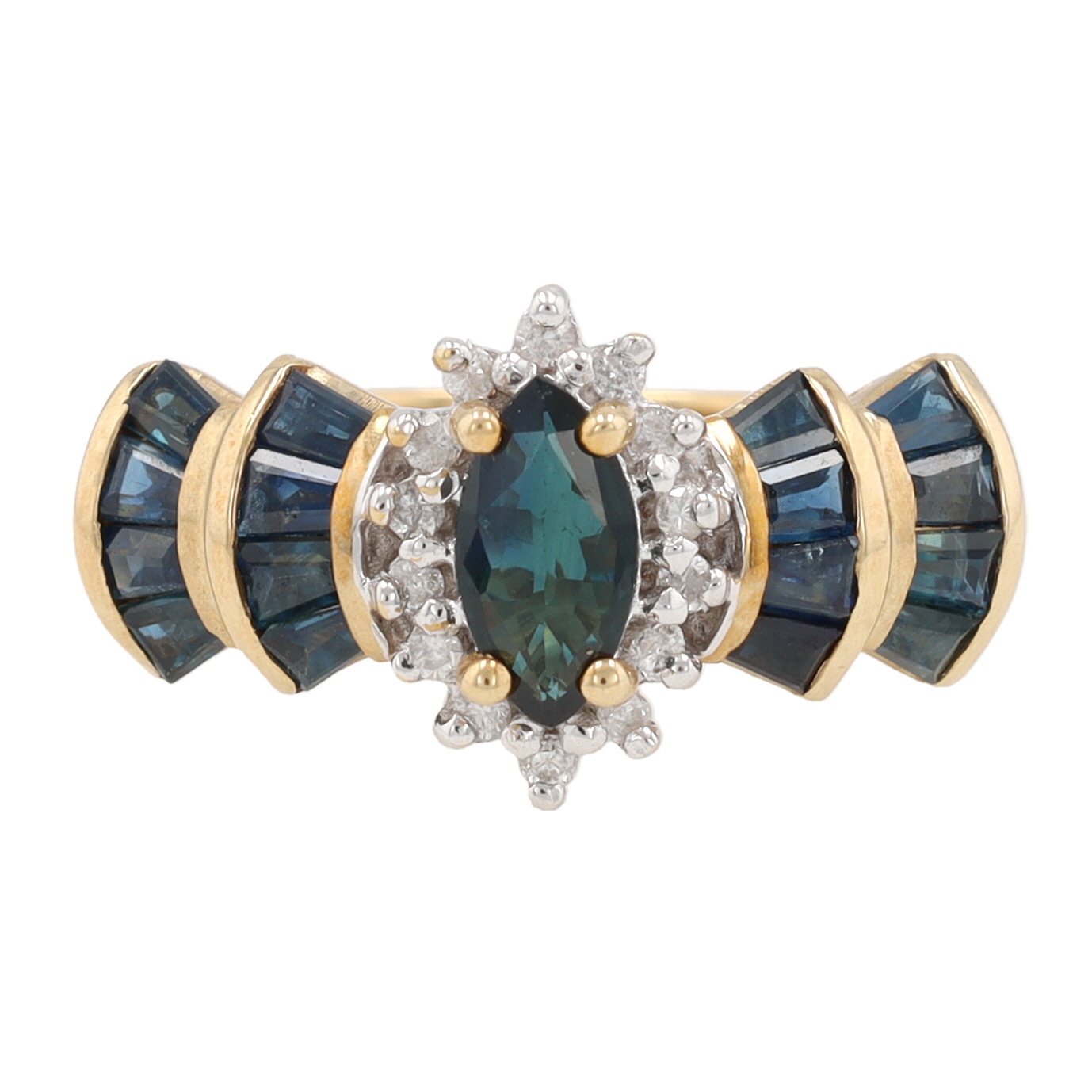 10K Gold Diamond Sapphire 10K Gold Cocktail Ring Size 7 5