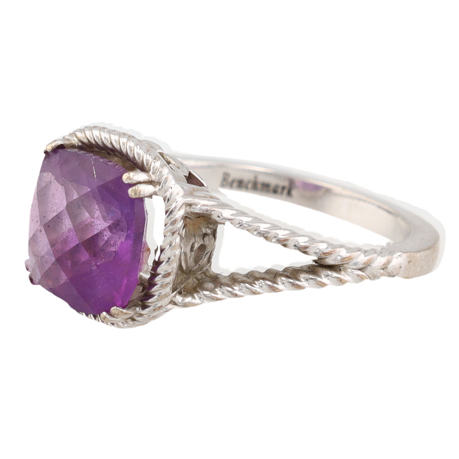 Benchmark K Cushion Cut Amethyst 10K White Gold Cocktail Ring Size 6.25 3.2 G Approximately 4 TCW