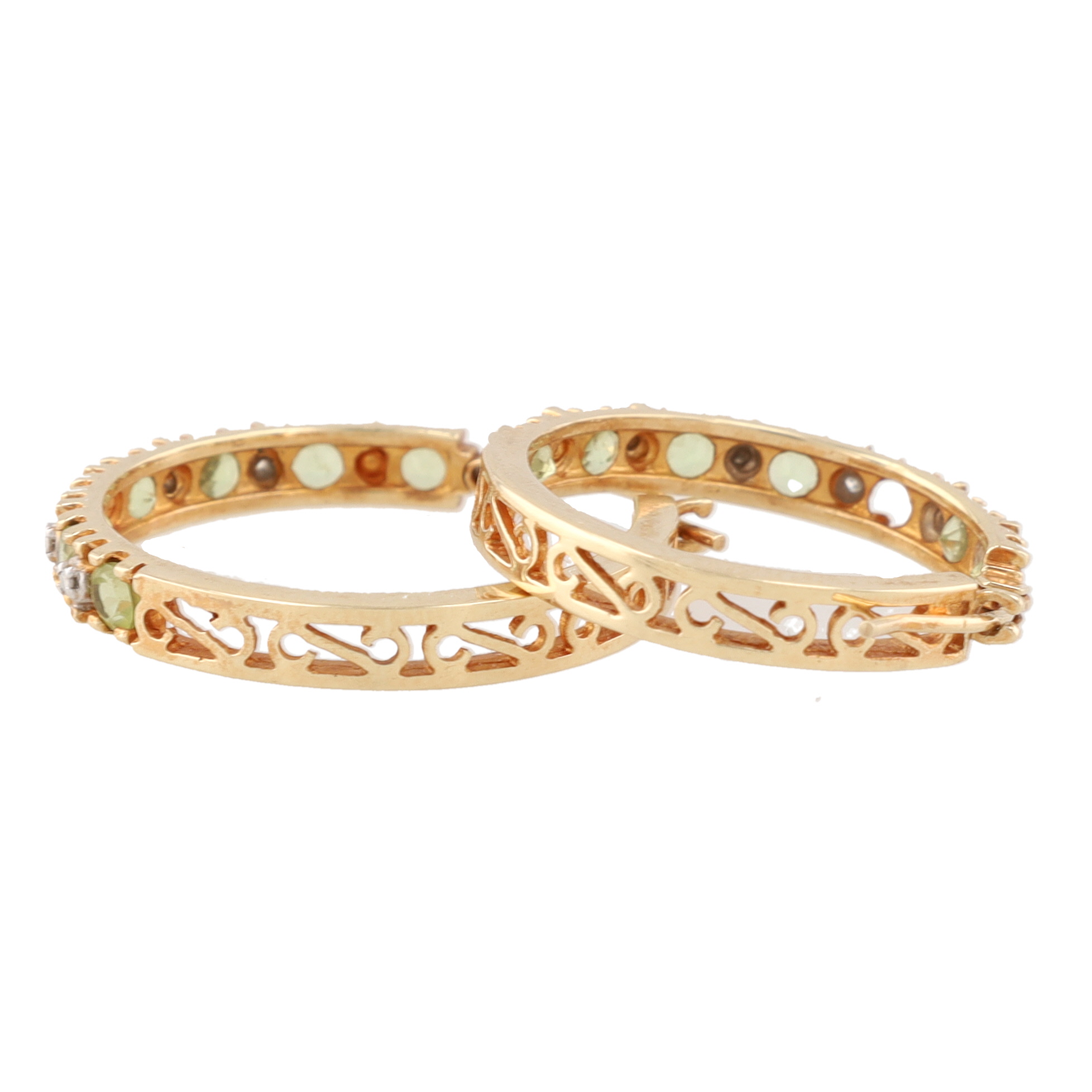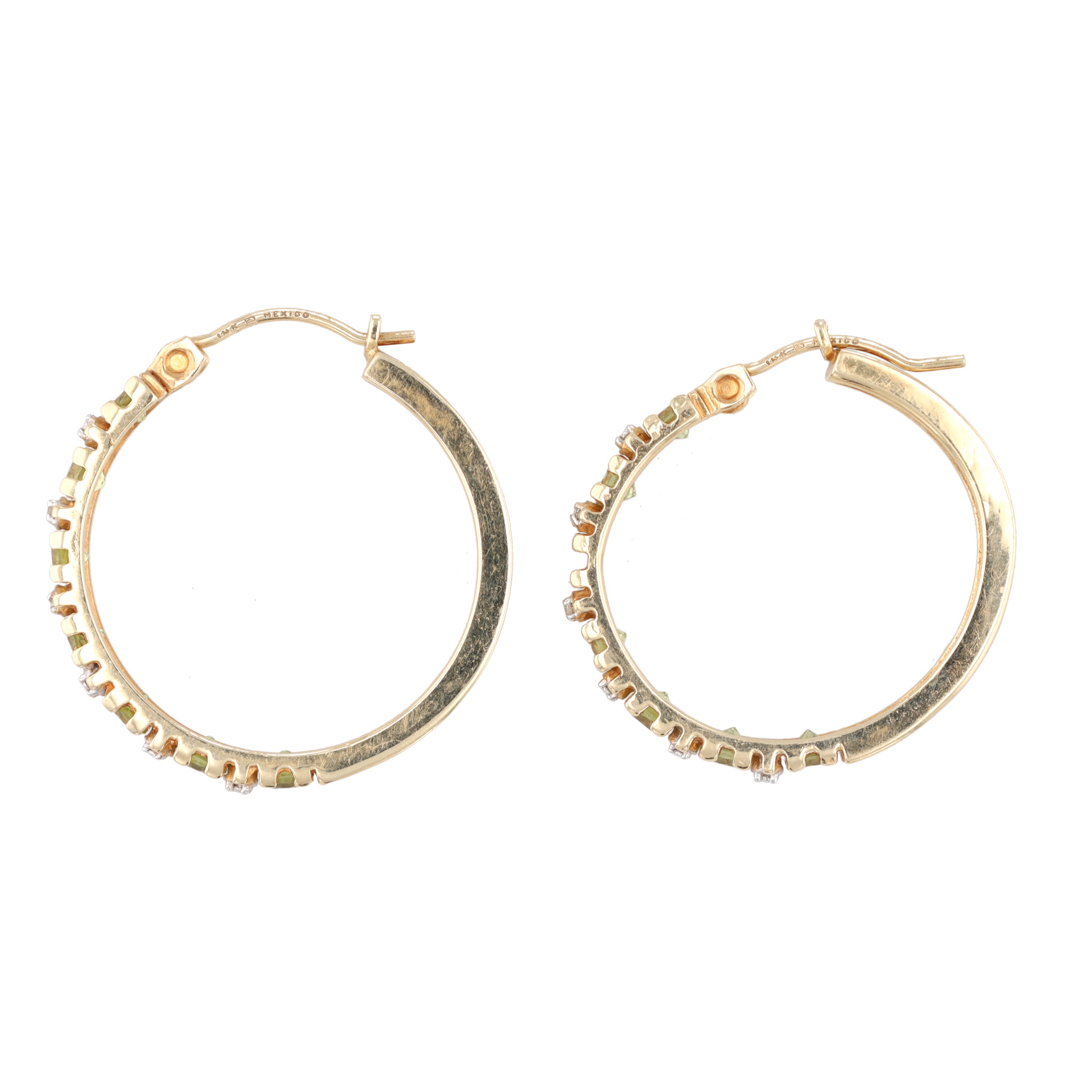 Mexico Diamond Peridot 14K Gold Hoop Earrings 3.9 G approximately 0.70 TCW As Is, missing stone shown in photo