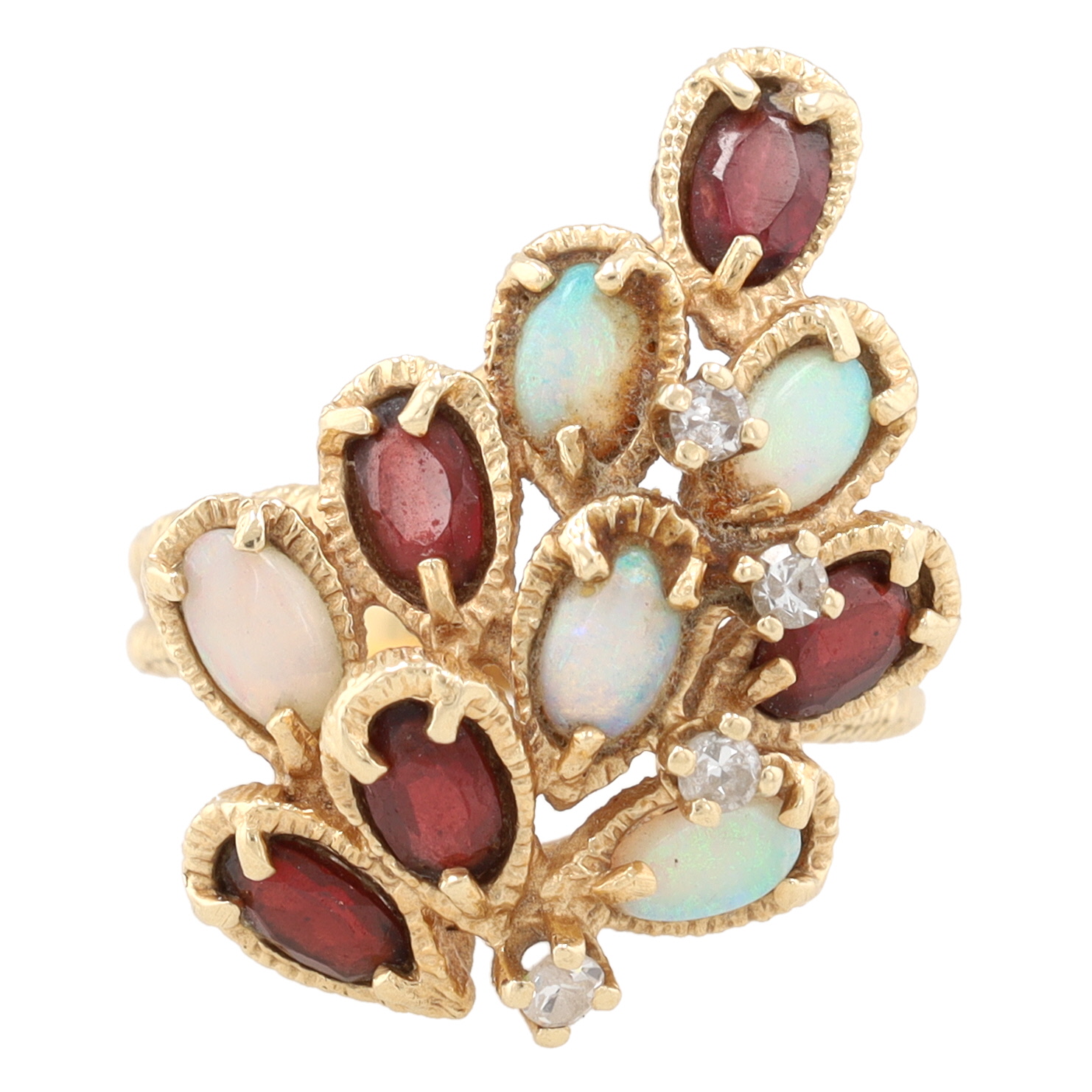 EM Opal Garnet Diamond 14K Gold Cocktail Ring Size 6.25 5.7 G Approximately 1 TCW 1 TCW 0.12 TCW
