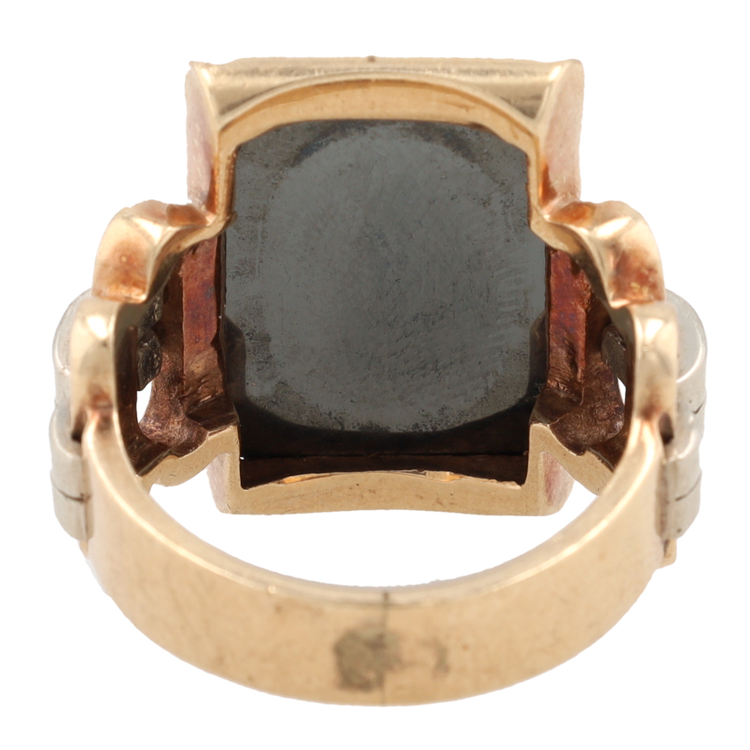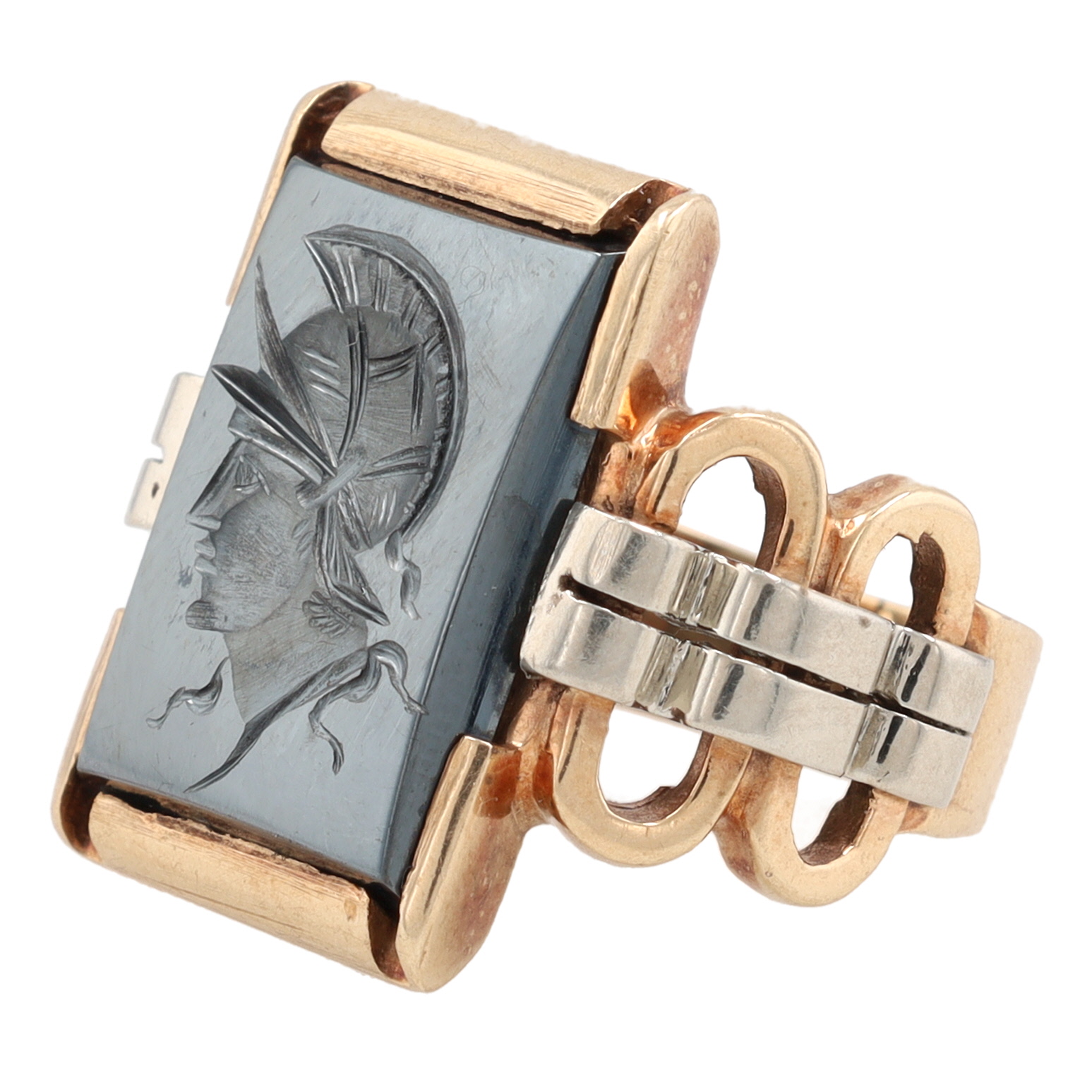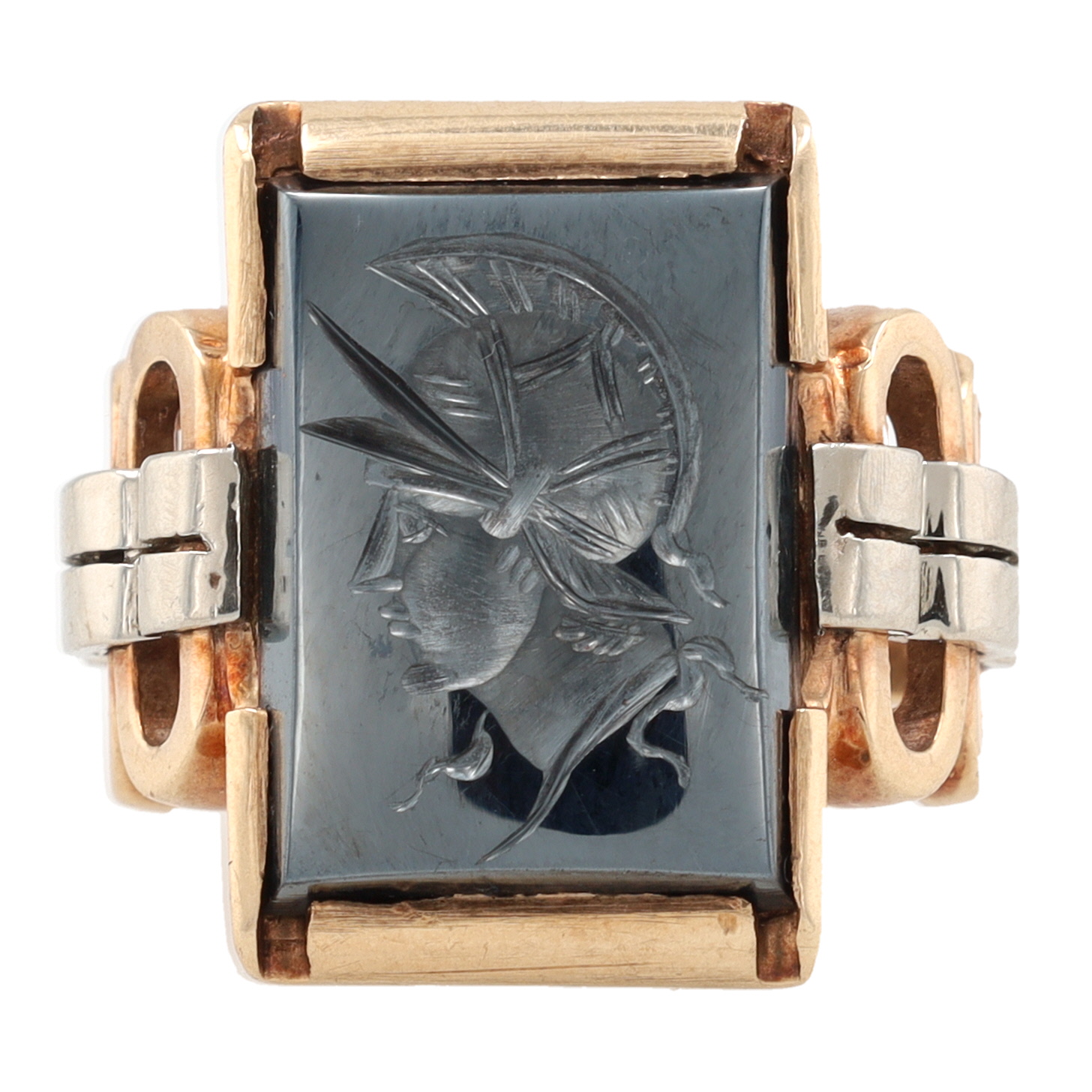 Intaglio 18K Gold Hematite Ring Size 7.5 10.8 G