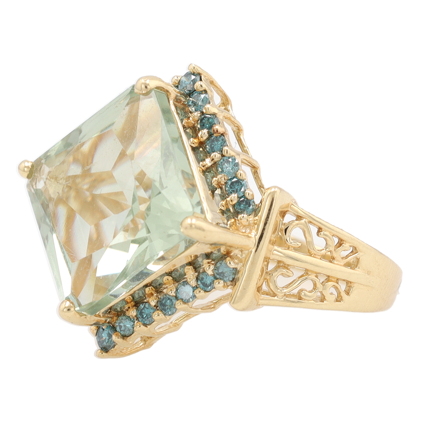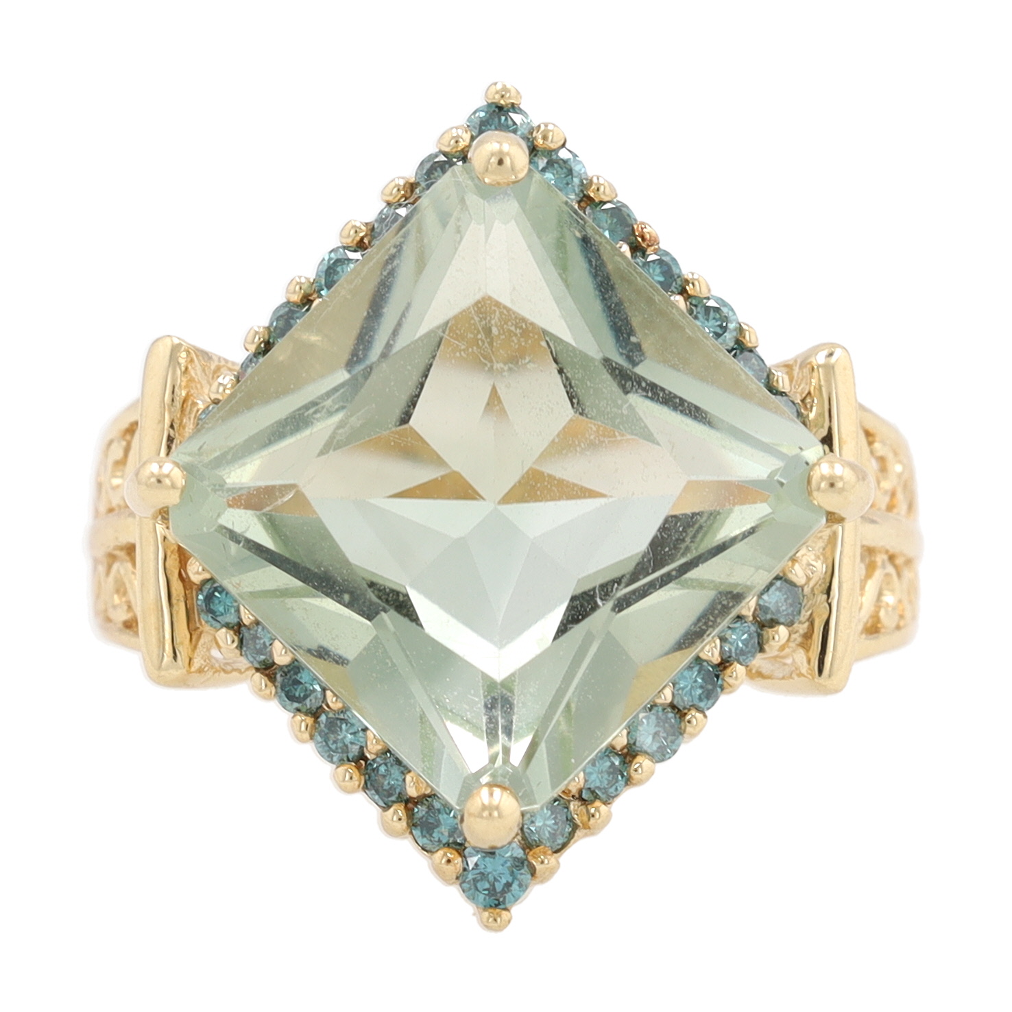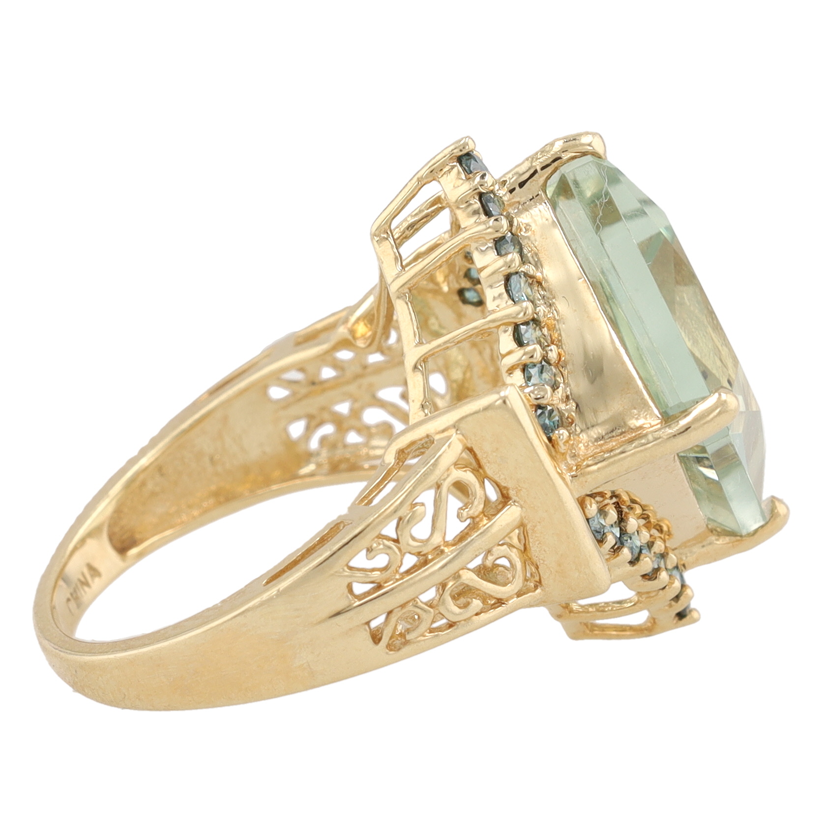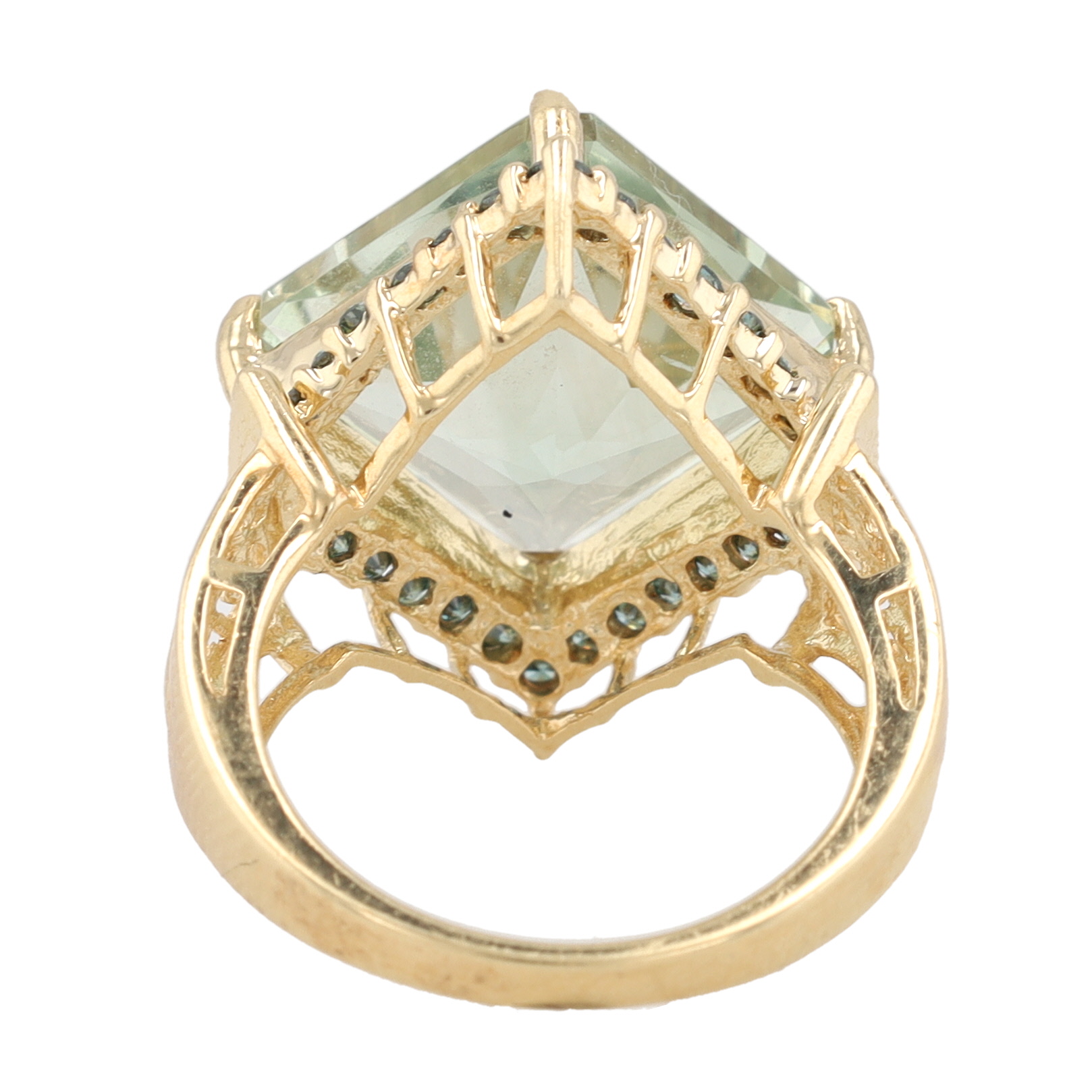 HN Diamond Green Amethyst 14K Gold Cocktail Ring Size 5.75 7.3 G Approximately 9.1 TCW 0.78 TCW