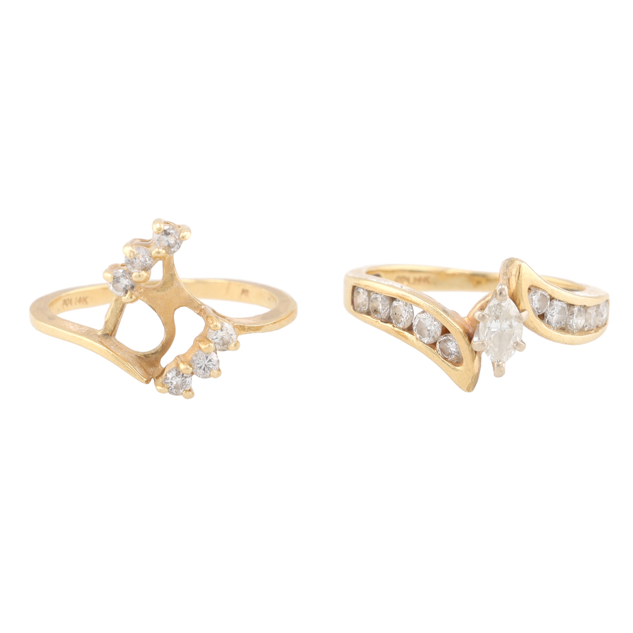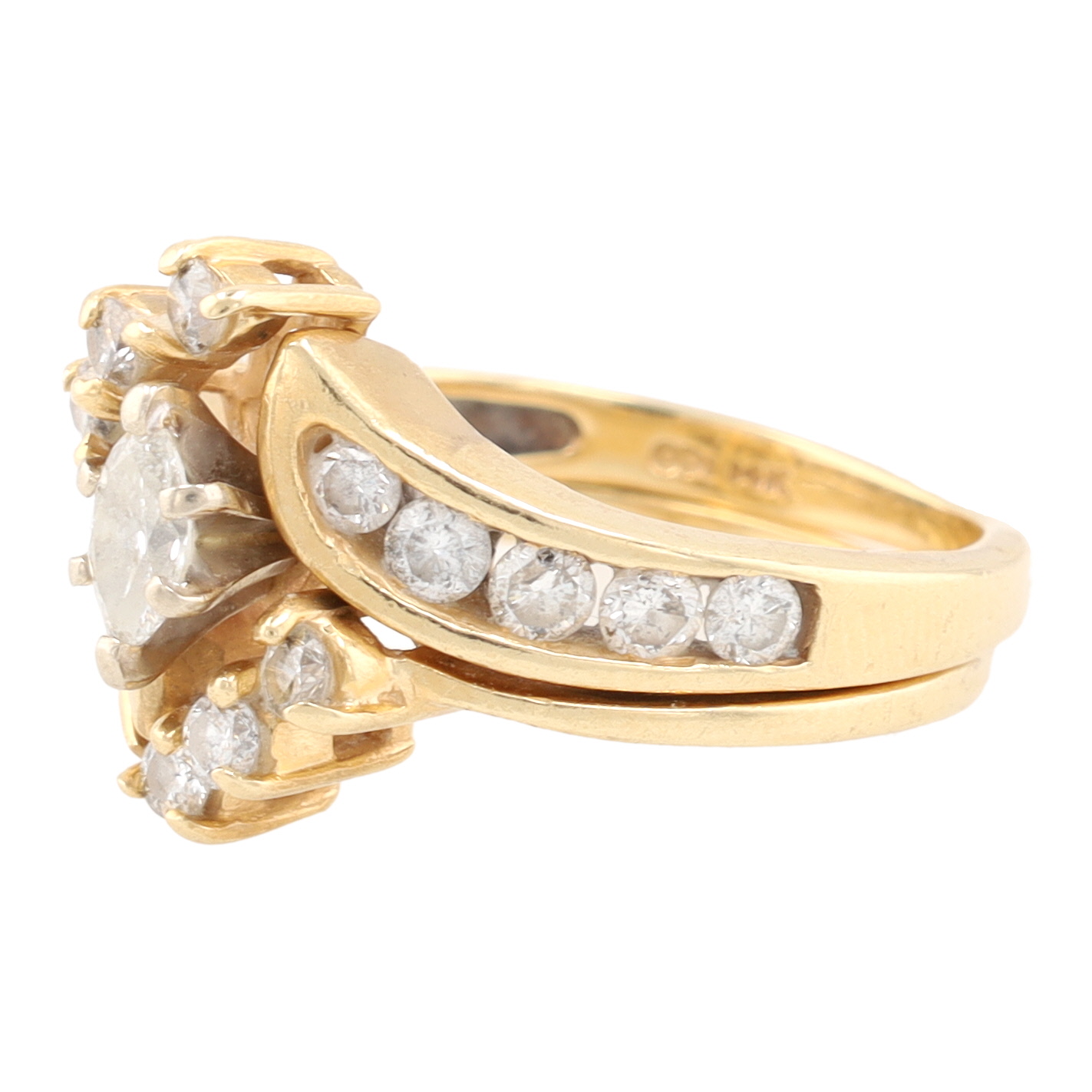 ODI Diamond 14K Gold Wedding Ring Set Size 5.75 6.5 G Approximately 2.18 TCW