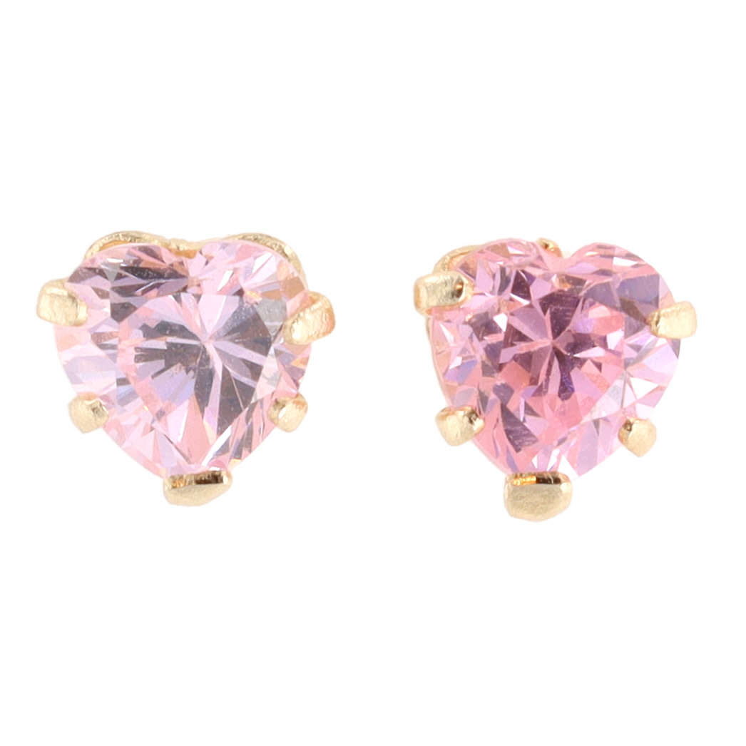 JCM Pink Gemstone 14K Gold Heart Earrings 0.8 G Approximately 1.3 TCW