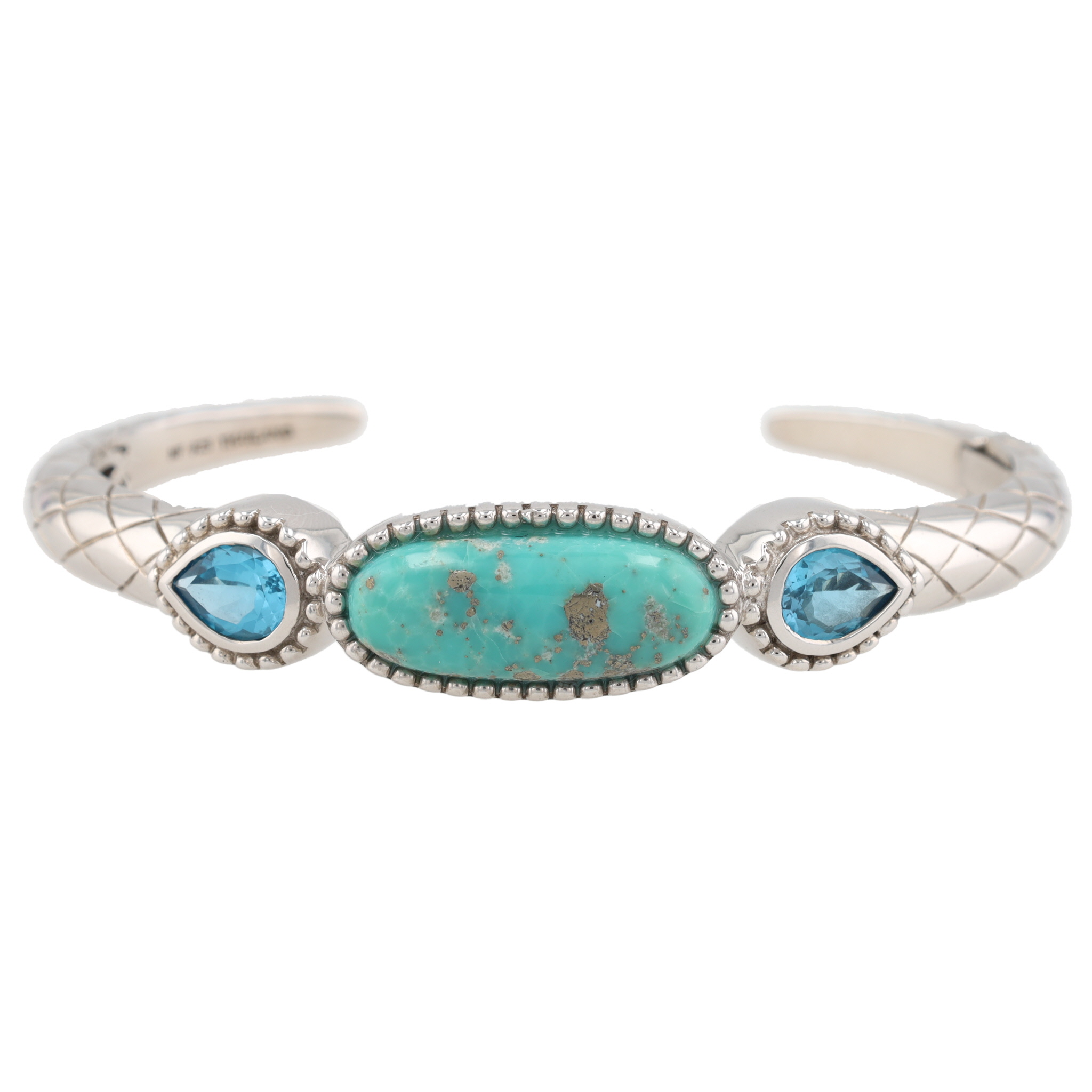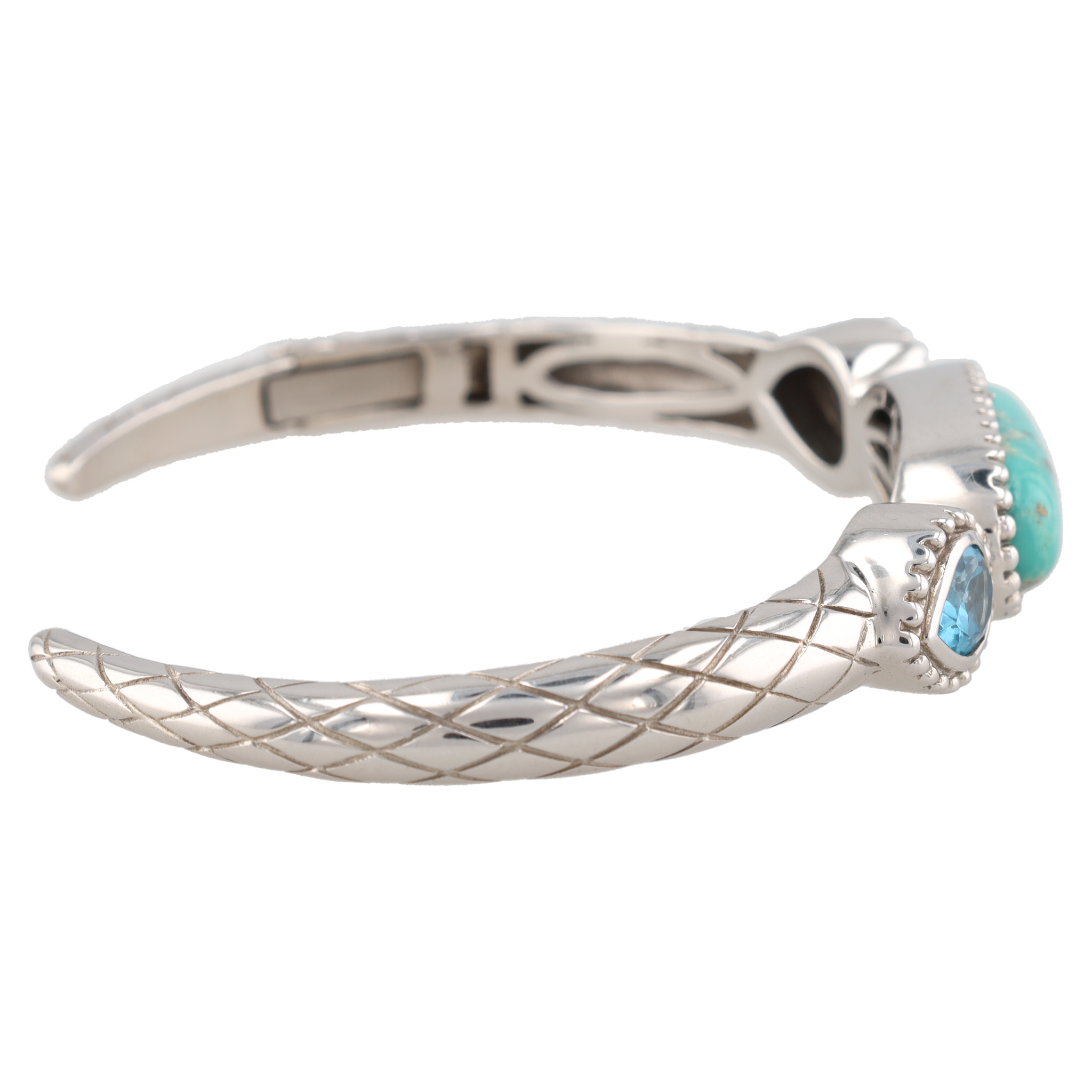 HF Topaz Turquoise Sterling Silver Hinge Cuff Bracelet 26.5 G