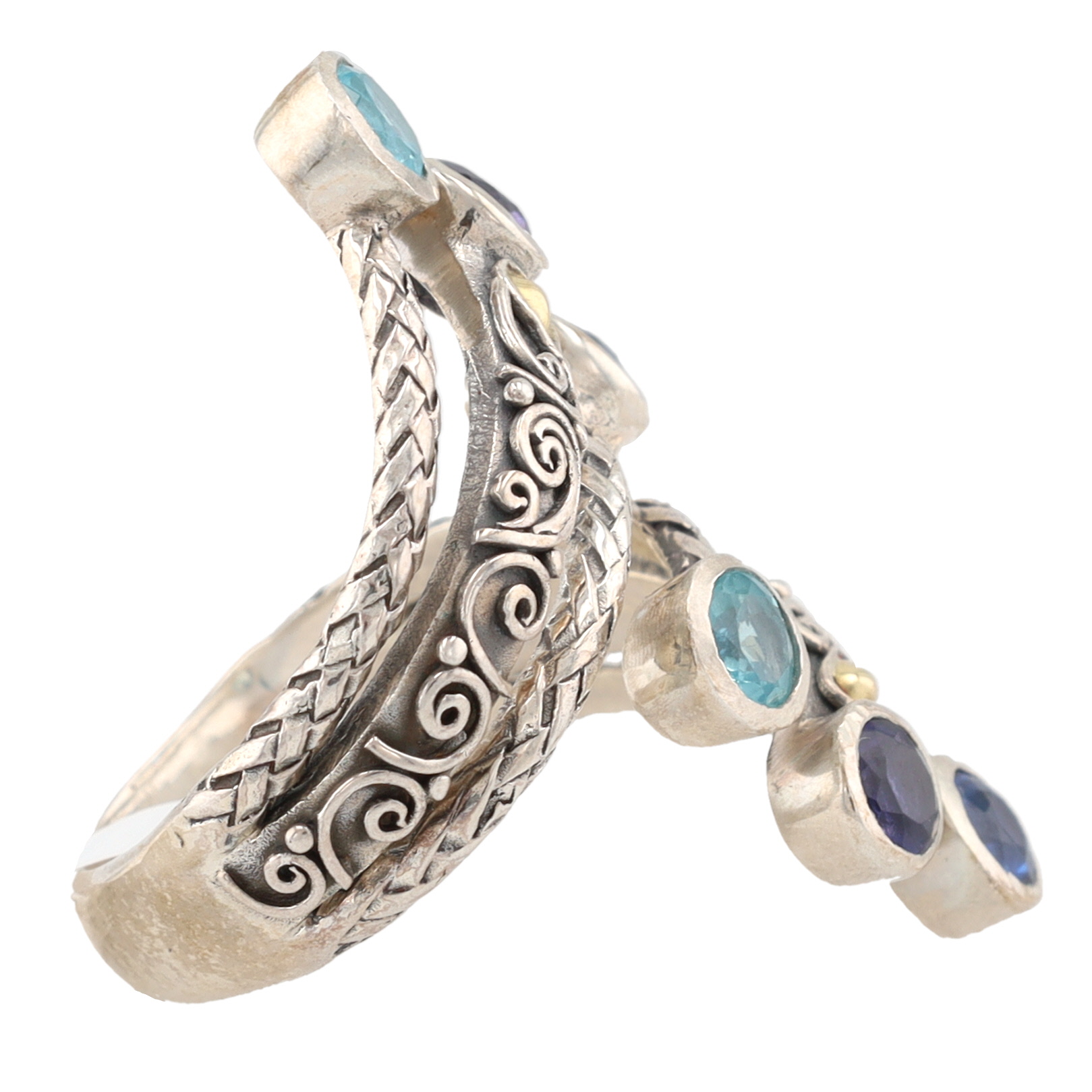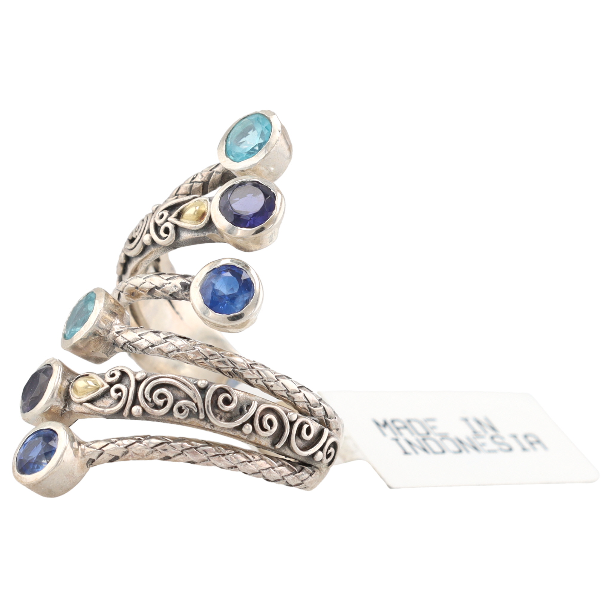 NWT Samuel B Topaz Tourmaline Sterling Silver Wrap Ring Size 6 9.8 G 1.50 TCW