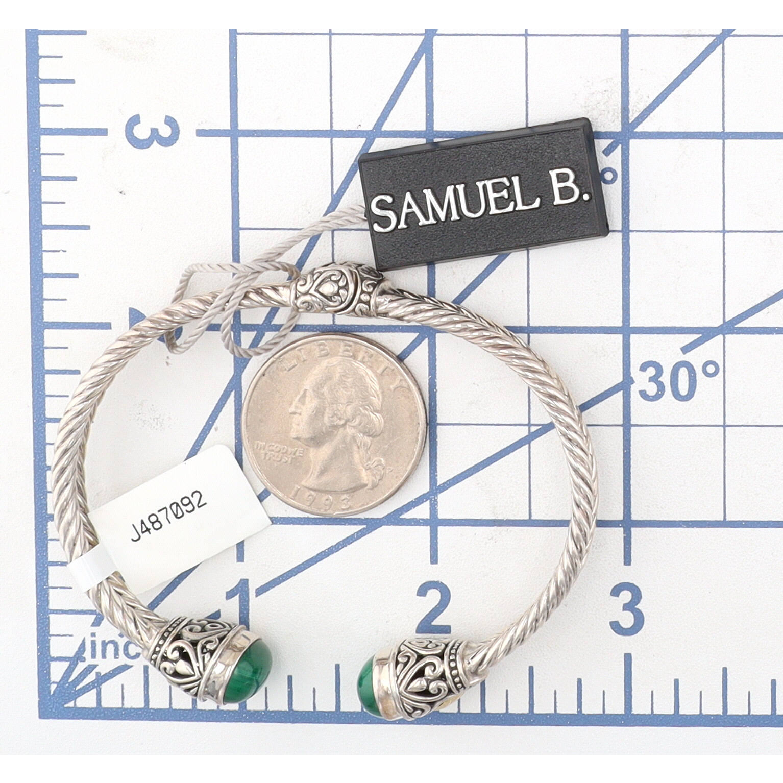 NWT Samuel B Malachite Sterling Silver Hinge Cuff Bracelet 24.9 G