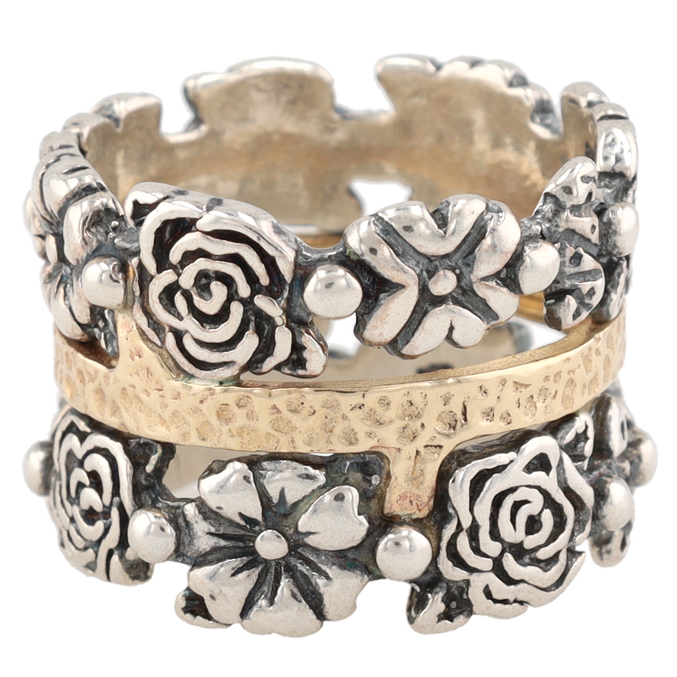Pord? Isreal 14K Gold Sterling Silver Floral Ring Size 8 11.5 G