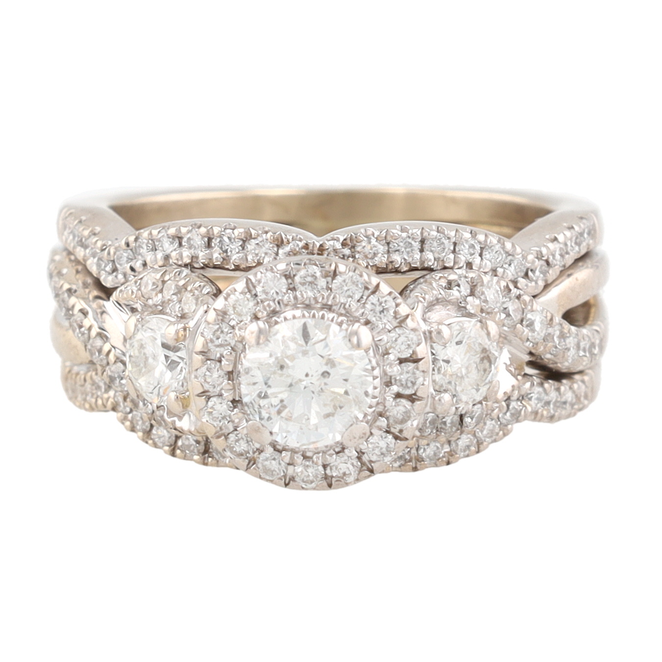 Diamond 14K White Gold Wedding Ring Set Size 6 10 G Approximately 3.44 TCW