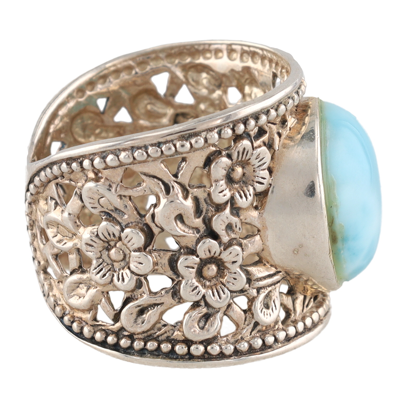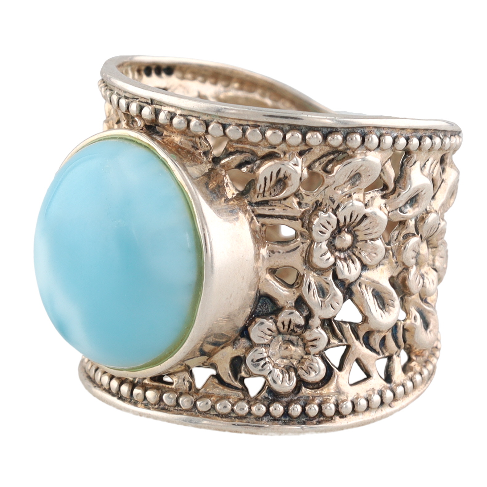 Larimar Gold Over Sterling Silver Flower Ring Size 7.25 7.9 G 9 TCW
