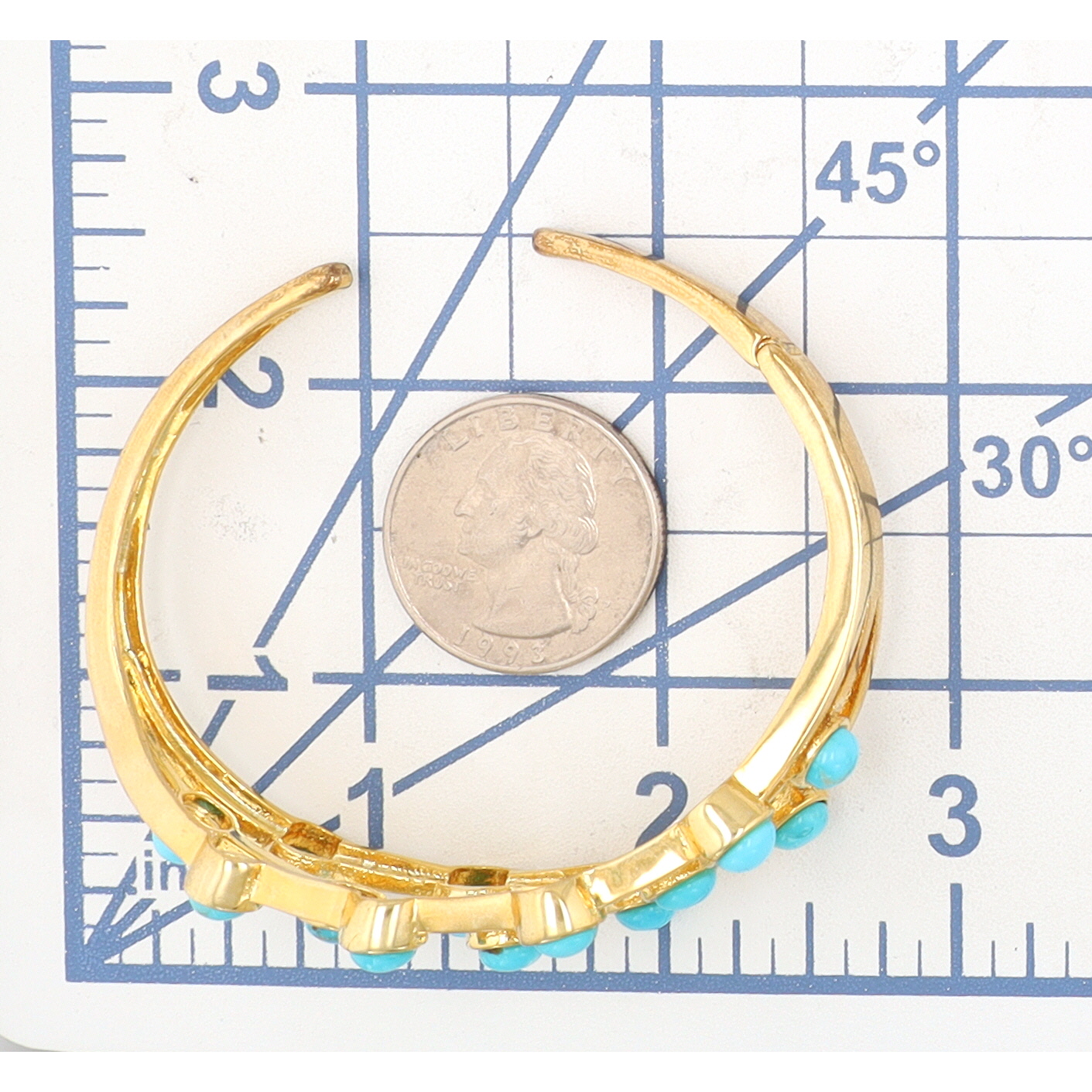 NWT 18K Gold Over Sterling Silver Sleeping Beauty Turquoise Cuff Bracelet 20 G