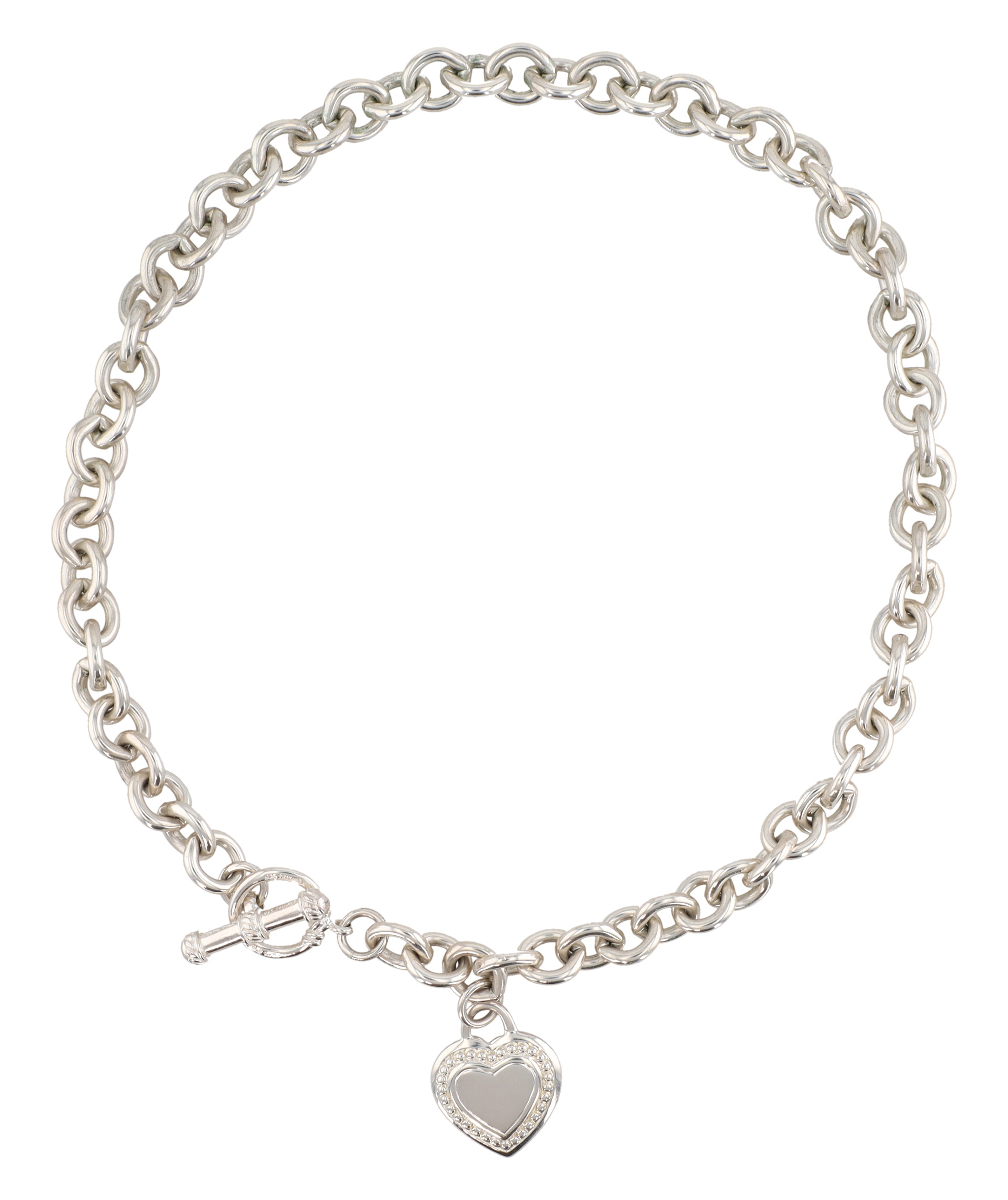 Judith Ripka Sterling Toggle Clasp Chain Heart Necklace 124.5g