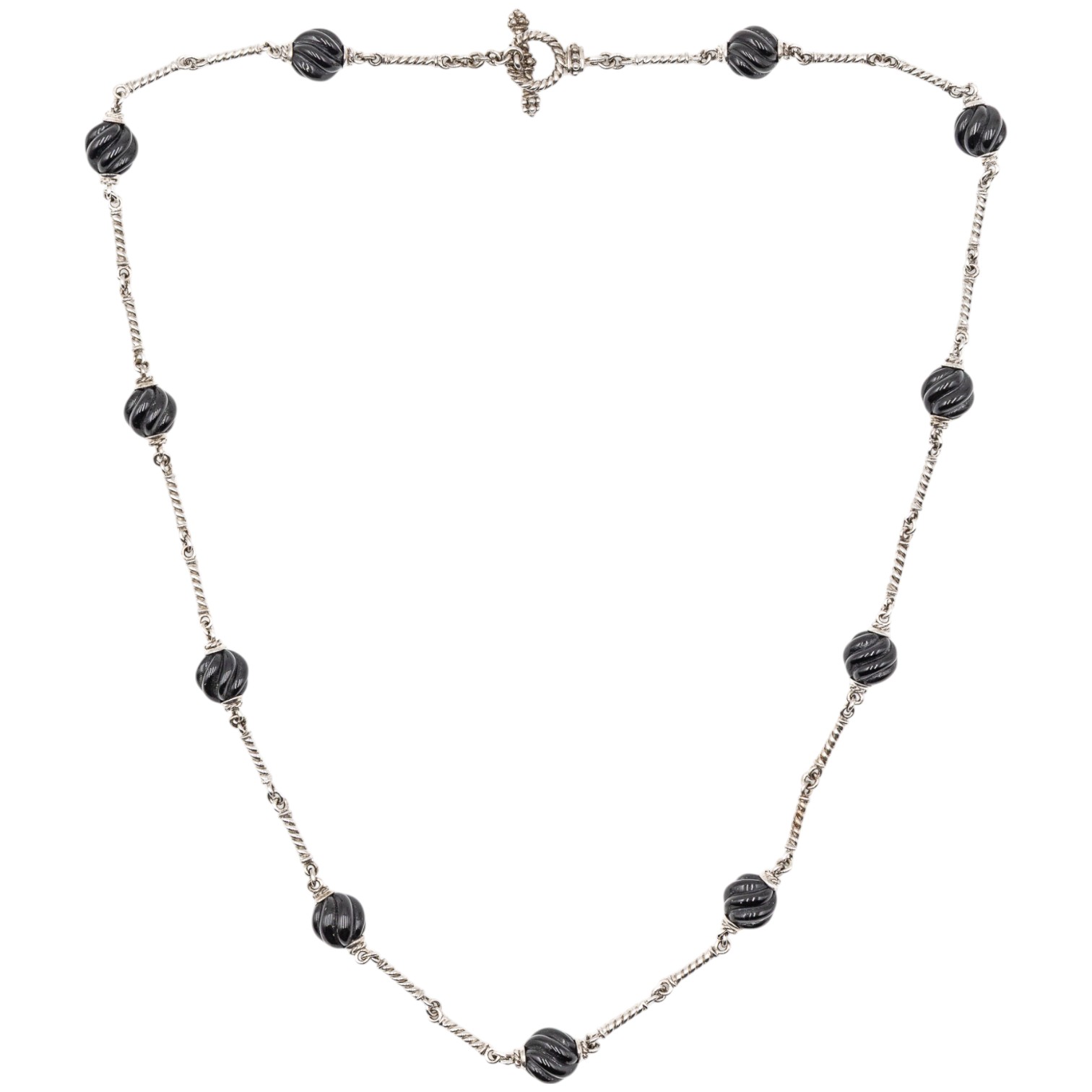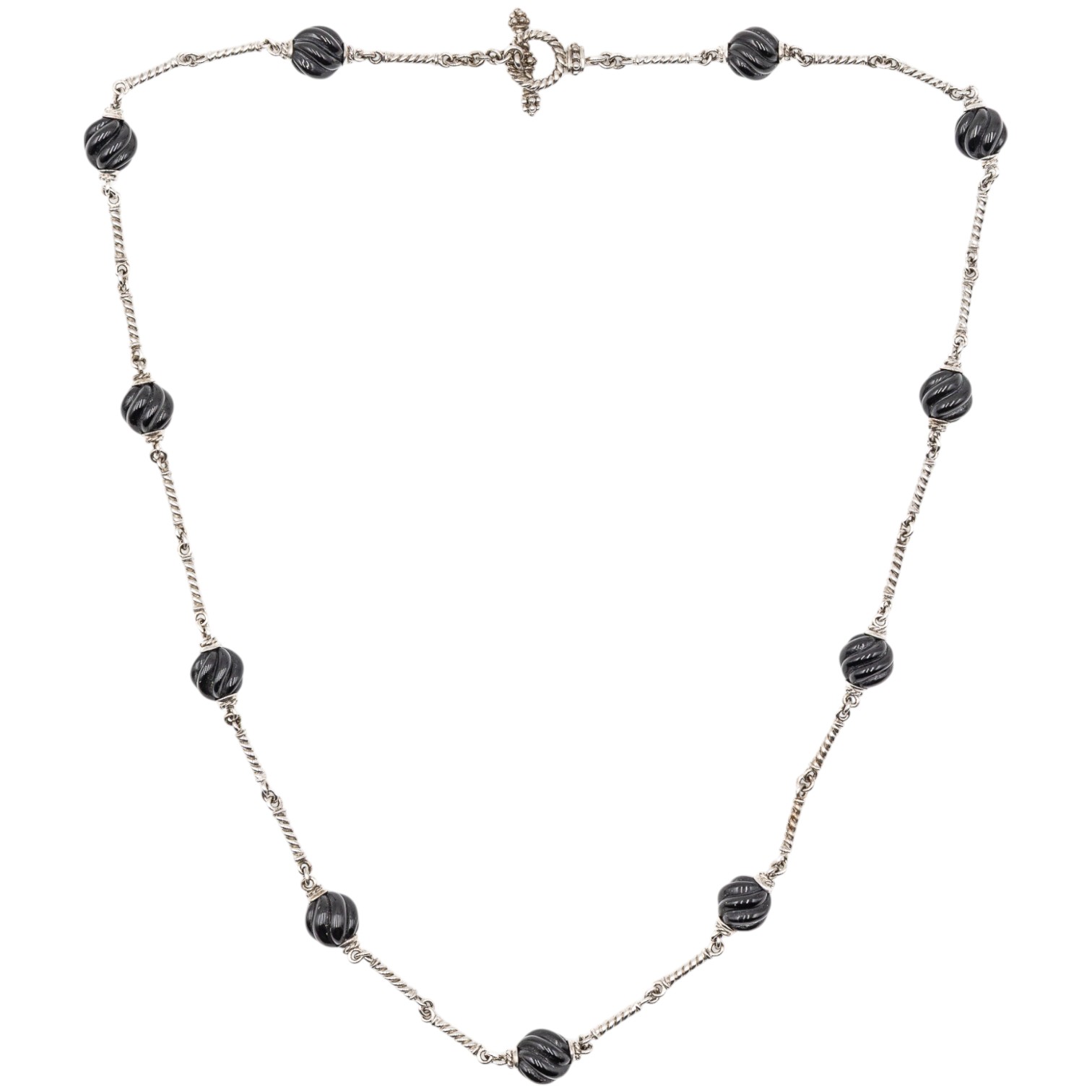 WK Sterling Onyx Toggle Clasp Necklace 106g