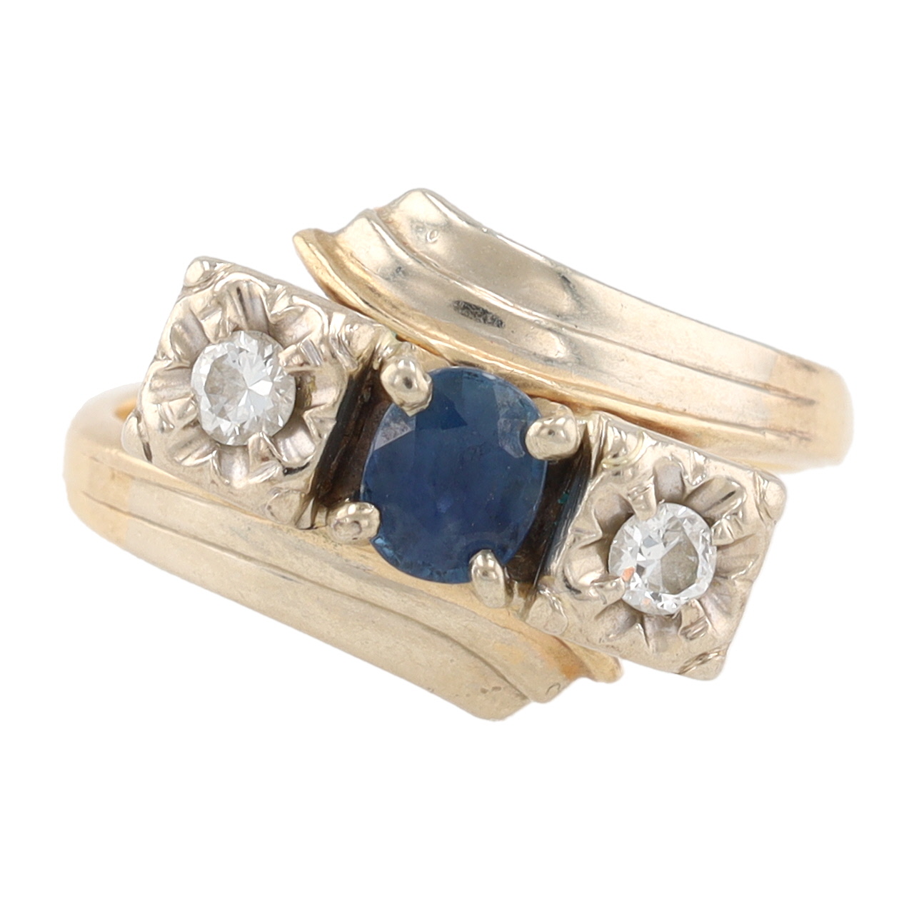 Diamond Sapphire 14K Gold Cocktail Ring Size 6.75 5.8 G Approximately 0.30 TCW 0.50 TCW