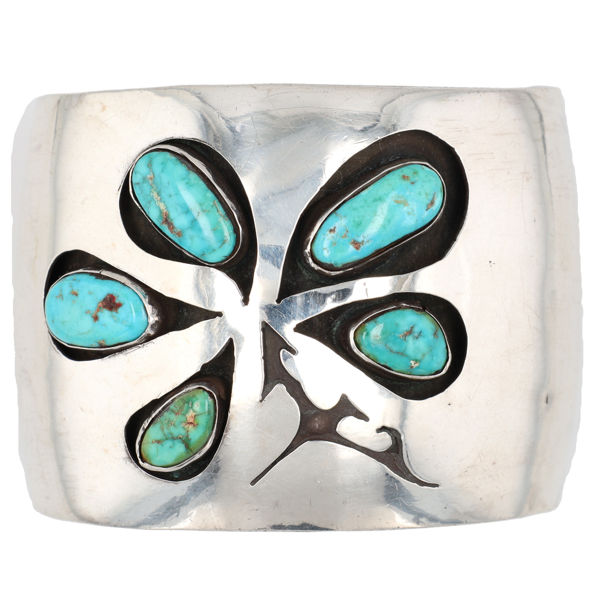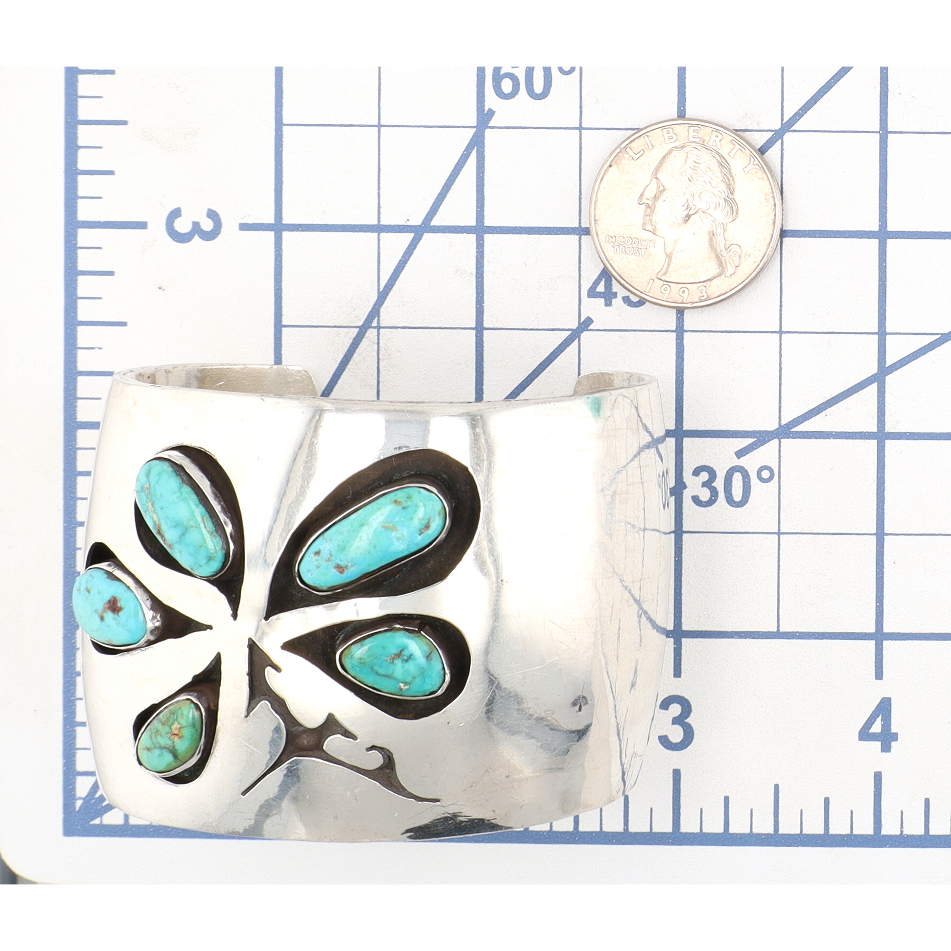 Navajo Sterling Turquoise Shadowbox Cuff Bracelet 86g