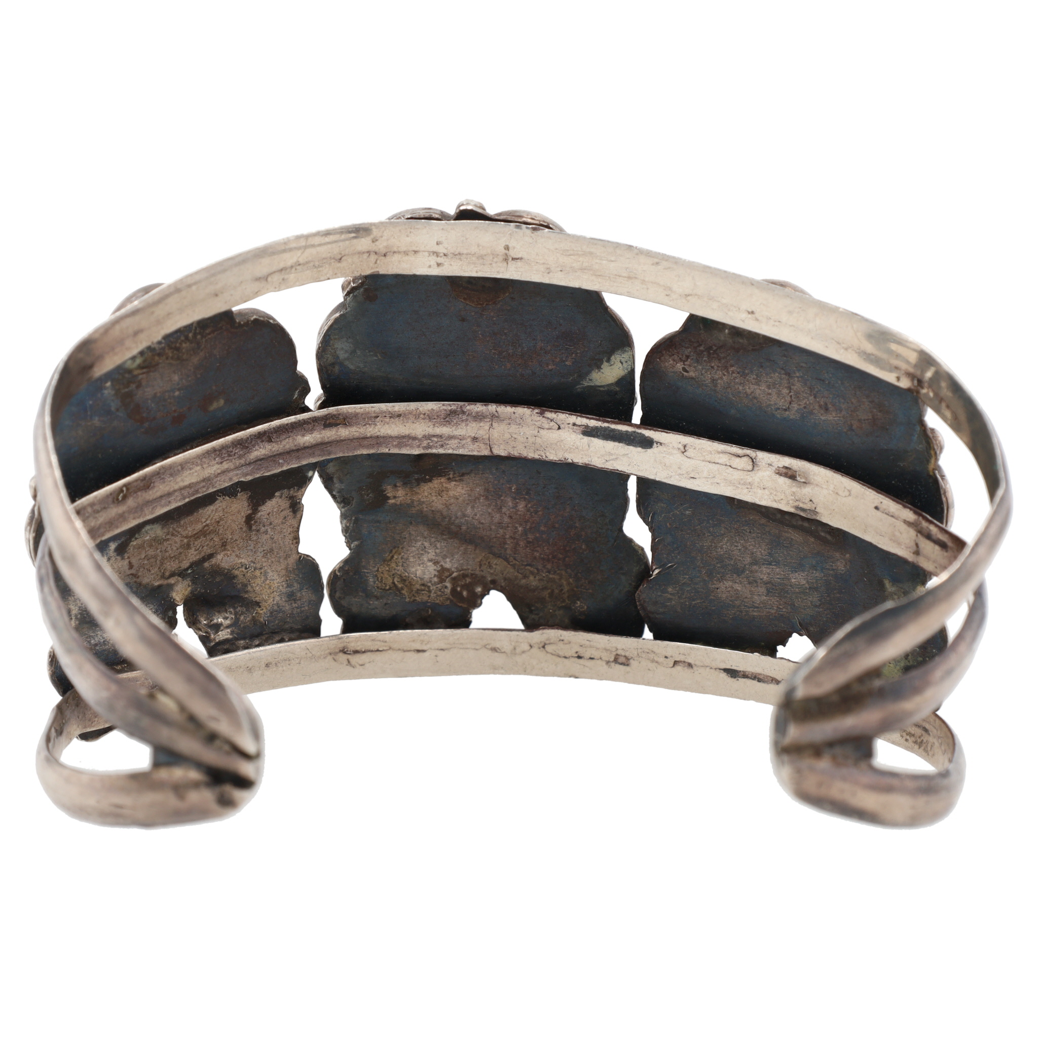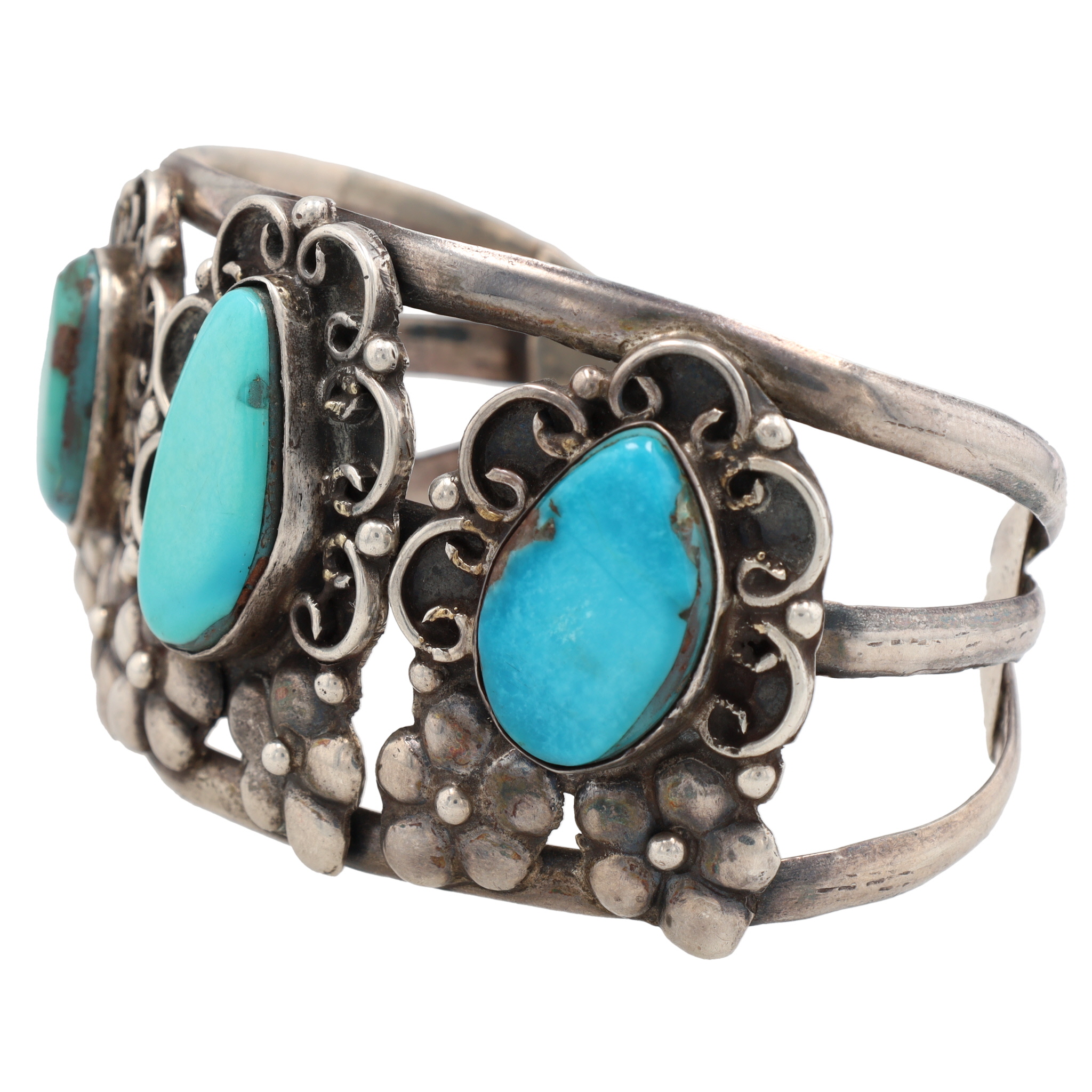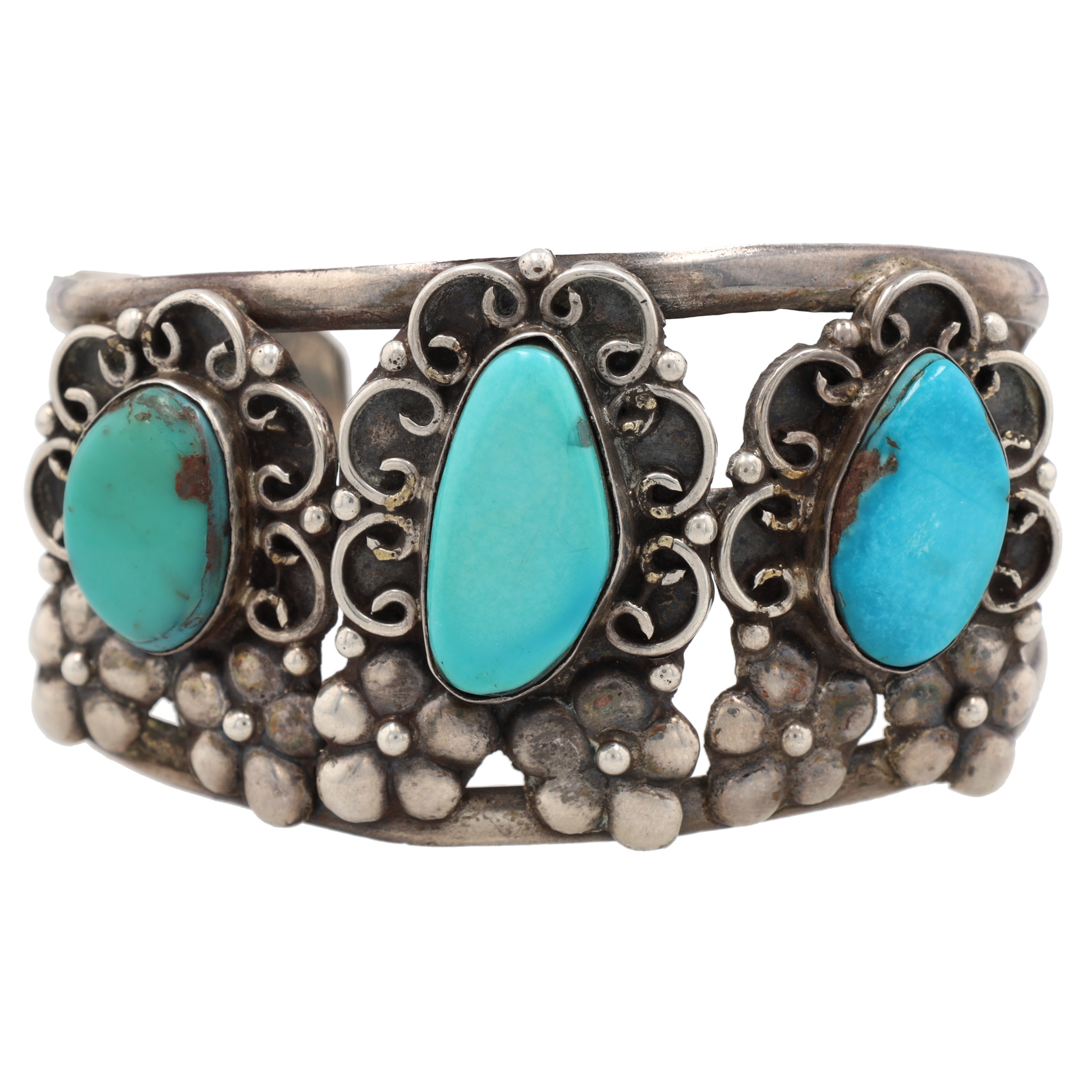 Vintage Sterling Turquoise Flower Cuff Bracelet 46g