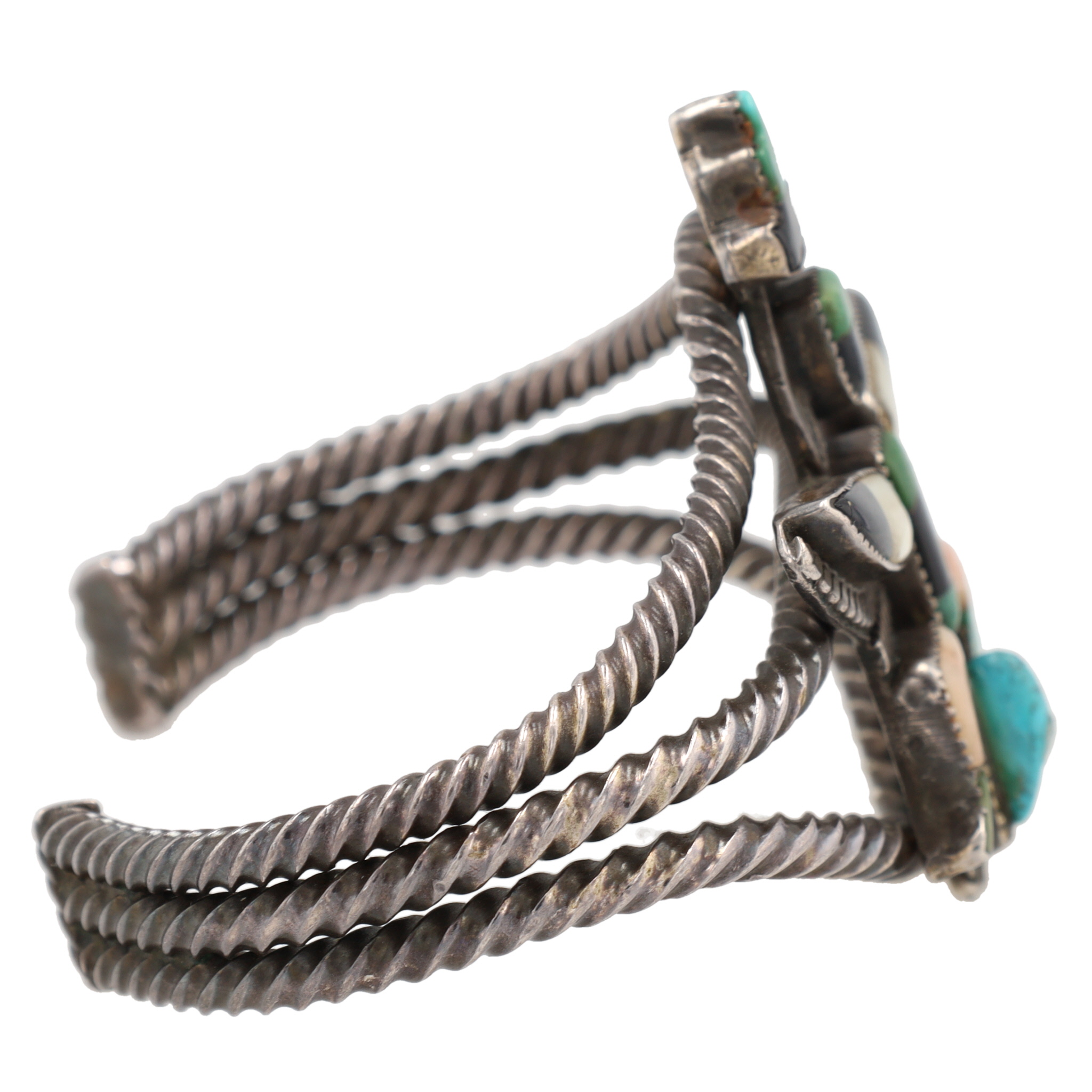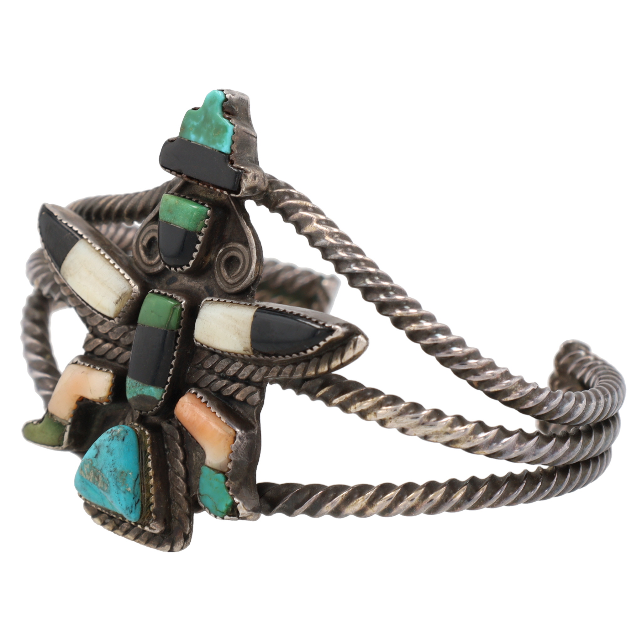 Vintage Zuni Sterling Kachina Inlay Cuff Bracelet 41g